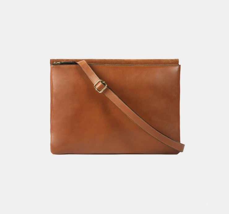 法國高級感小衆設計14寸電腦包上班通勤單肩大包秋冬女公文包麂皮