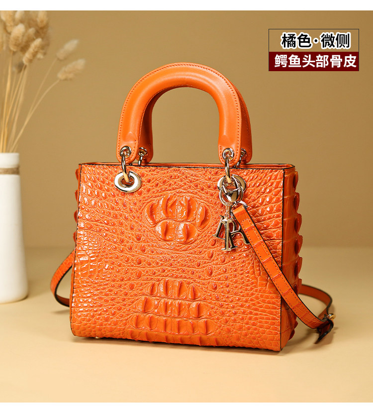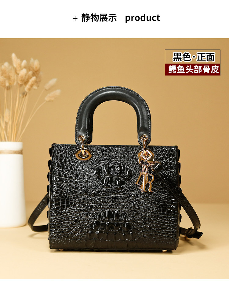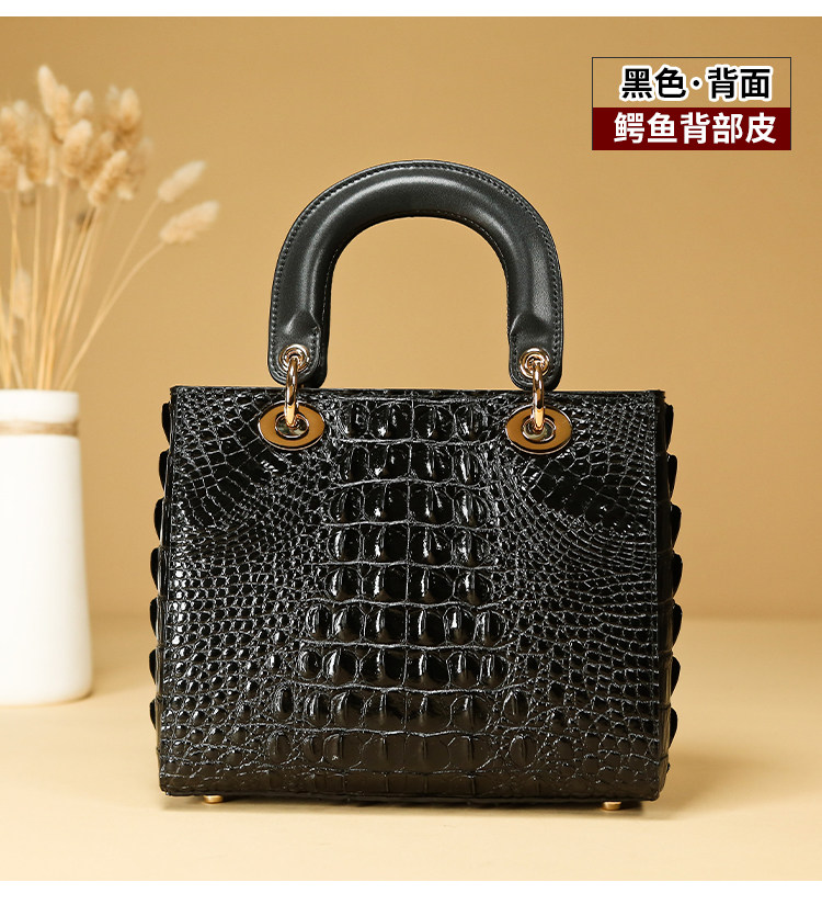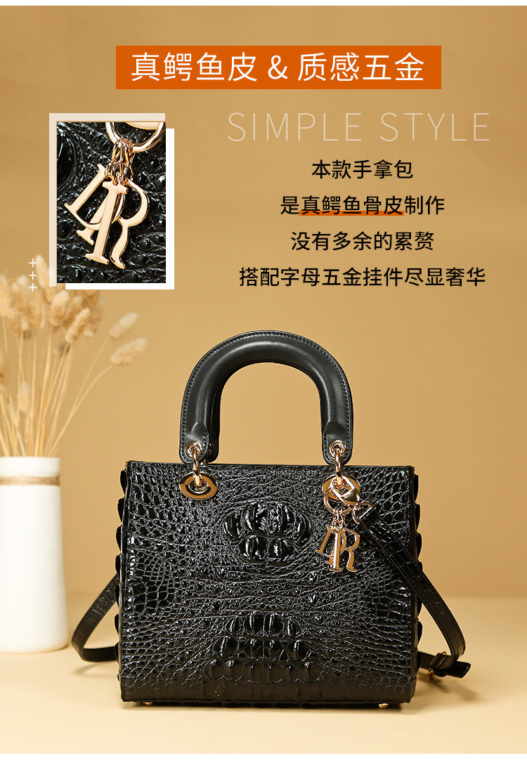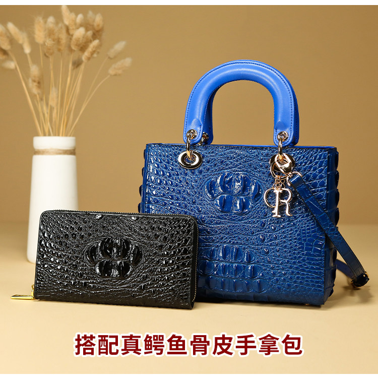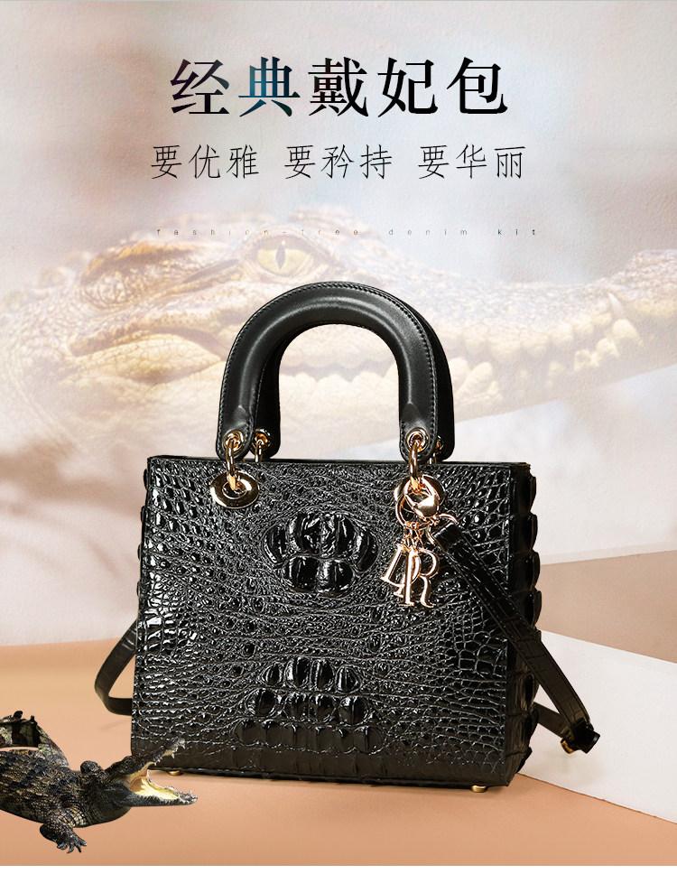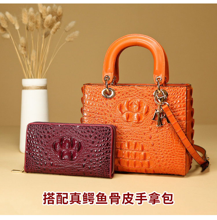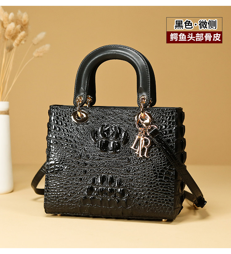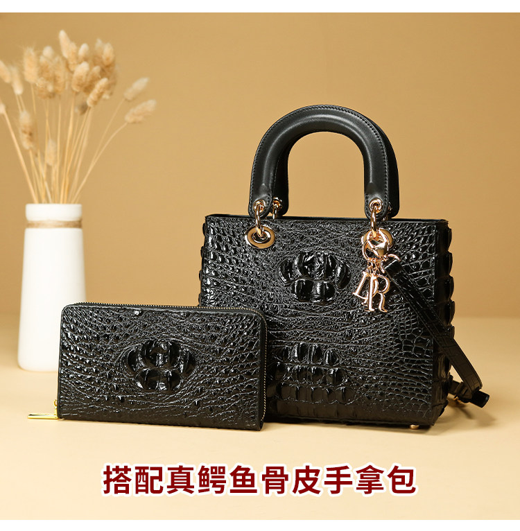 真鱷魚皮戴妃包骨皮手提包真皮高級氣質大氣單肩包女包上班手拎包