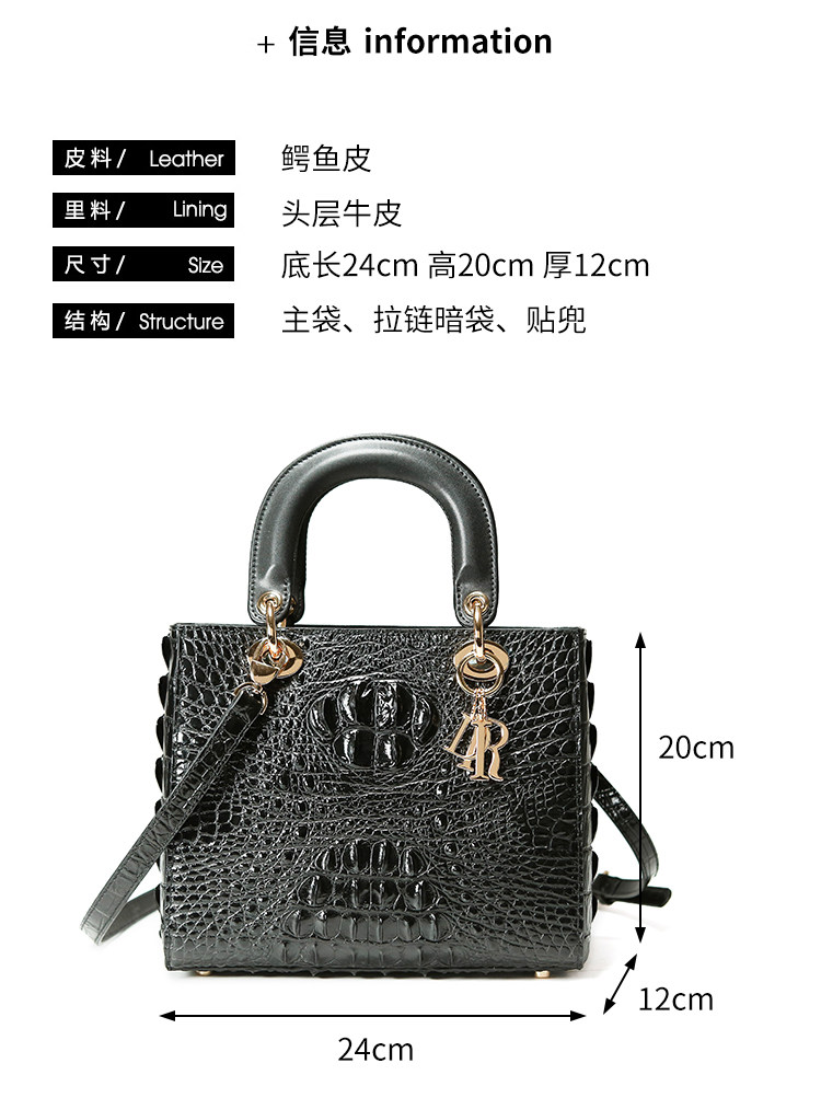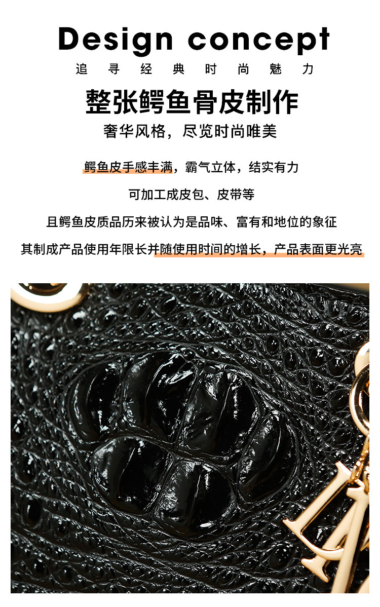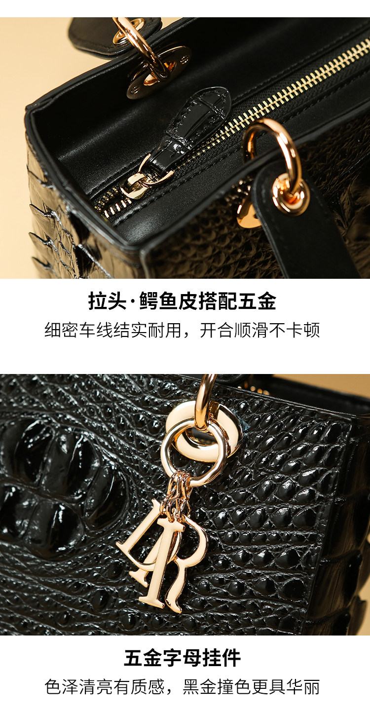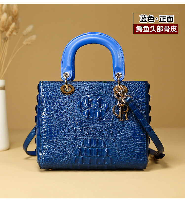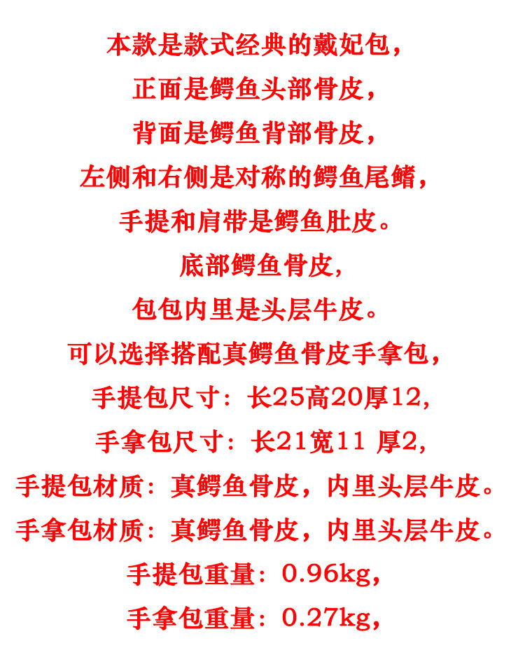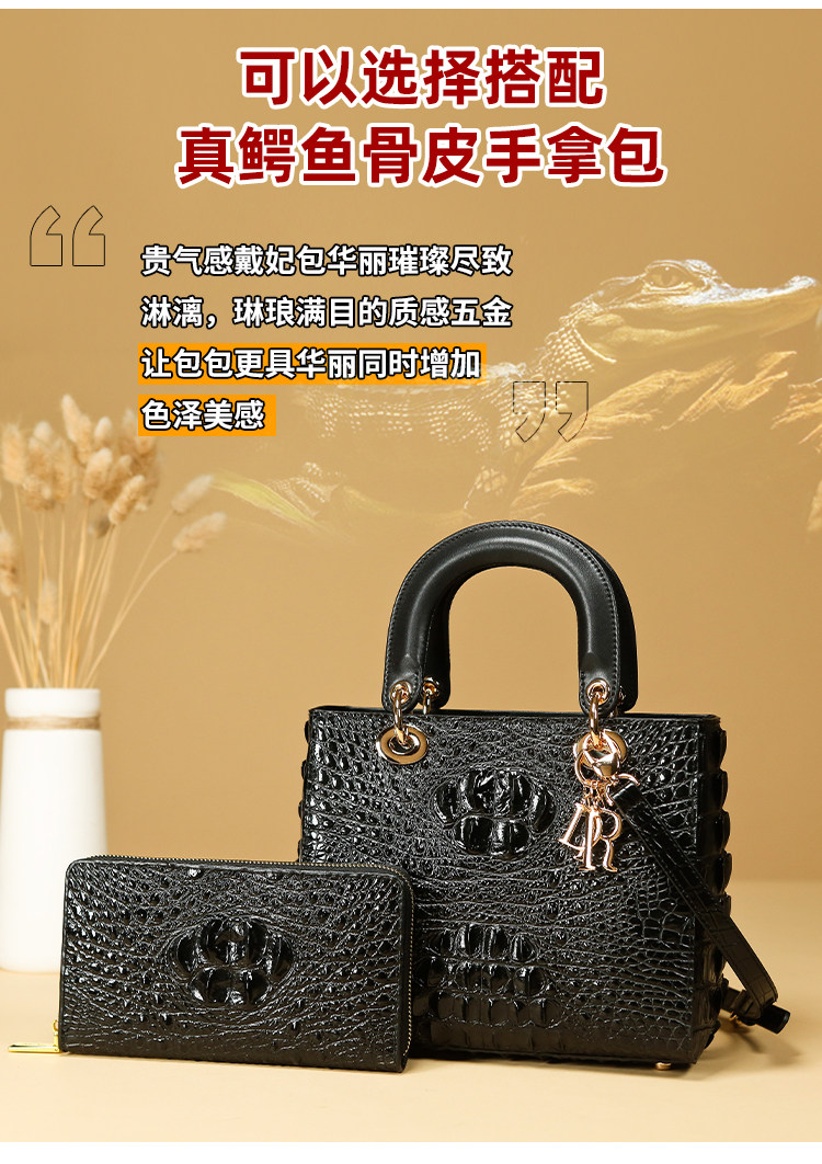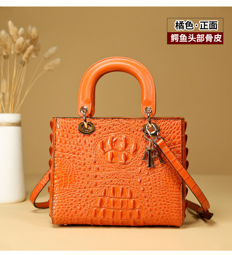 真鱷魚皮戴妃包骨皮手提包真皮高級氣質大氣單肩包女包上班手拎包