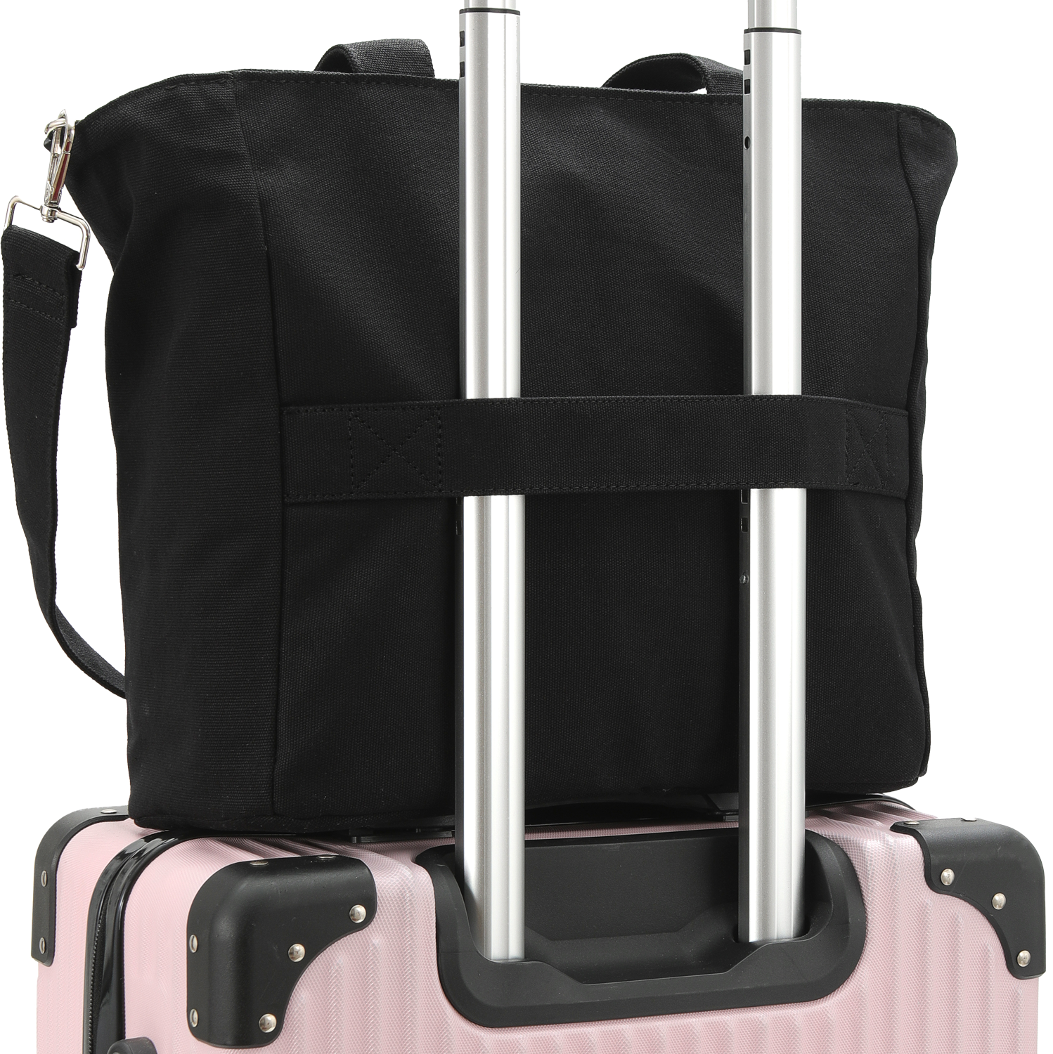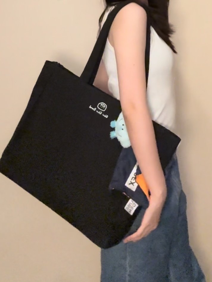 絕不軟塌大號電腦包飯盒水杯黑色托特包大容量帆布包學生上課通勤