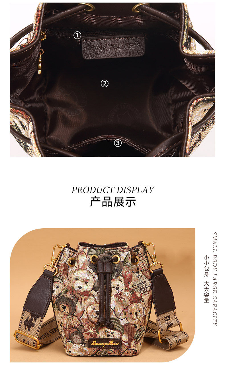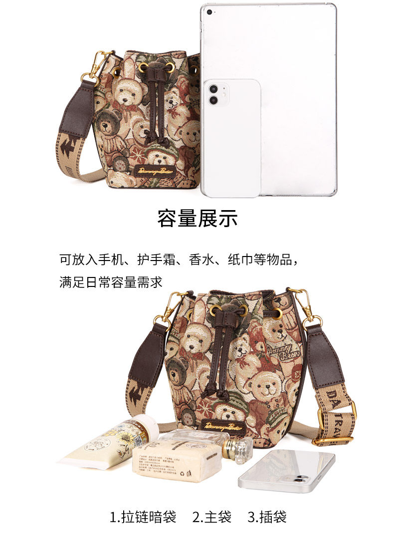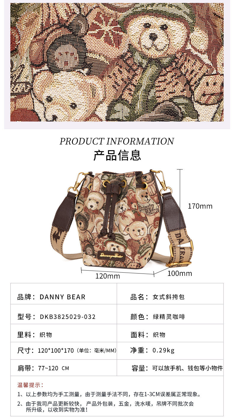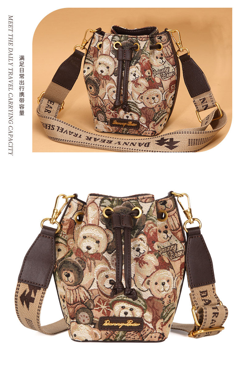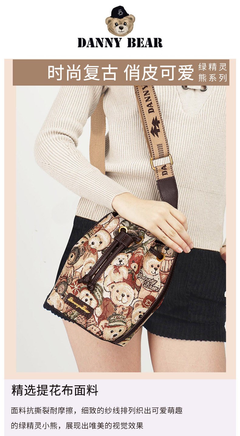 丹尼熊包包斜背小水桶包女包通勤休閒百搭輕便小熊布包DKB3825029