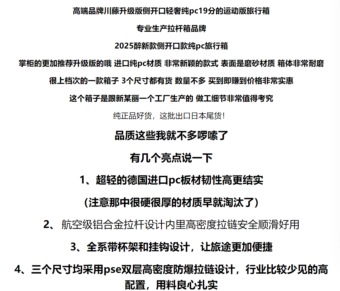 川藤出口日本側開口拉桿箱萬向輪超大容量行李箱20寸擴展旅行箱24