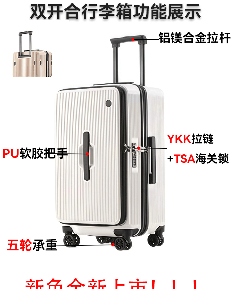 新款側開大容量行李箱女五輪防爆拉桿箱可登機男20寸PC旅行箱28寸