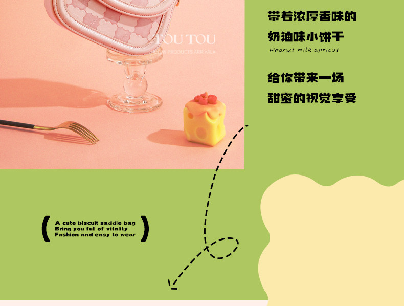 生日禮物TOUTOU新款小衆設計草莓餅乾包百搭手提馬鞍包單肩斜後後背包
