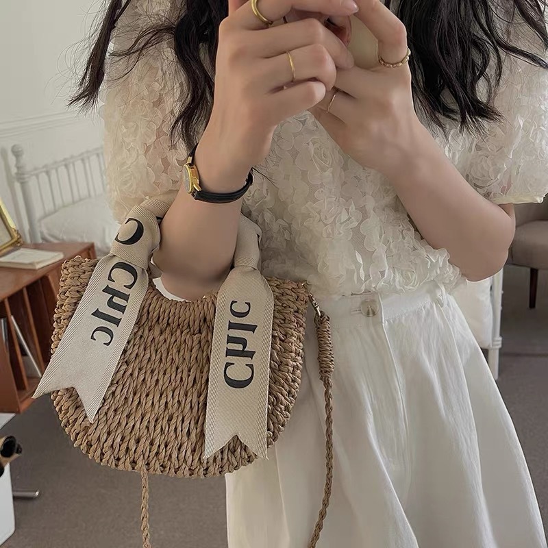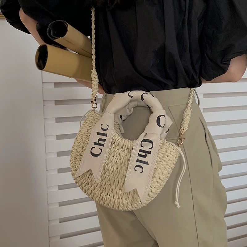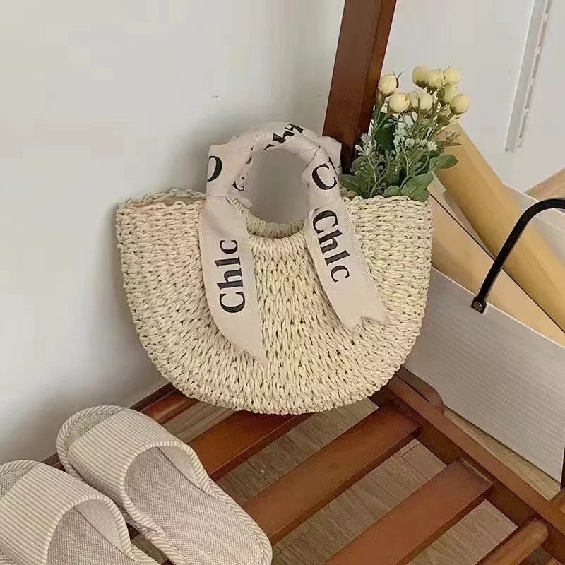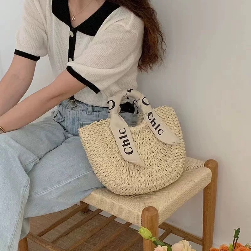 新款單肩手提包草編包托特包海邊度假手提包大容量編織包百搭海灘