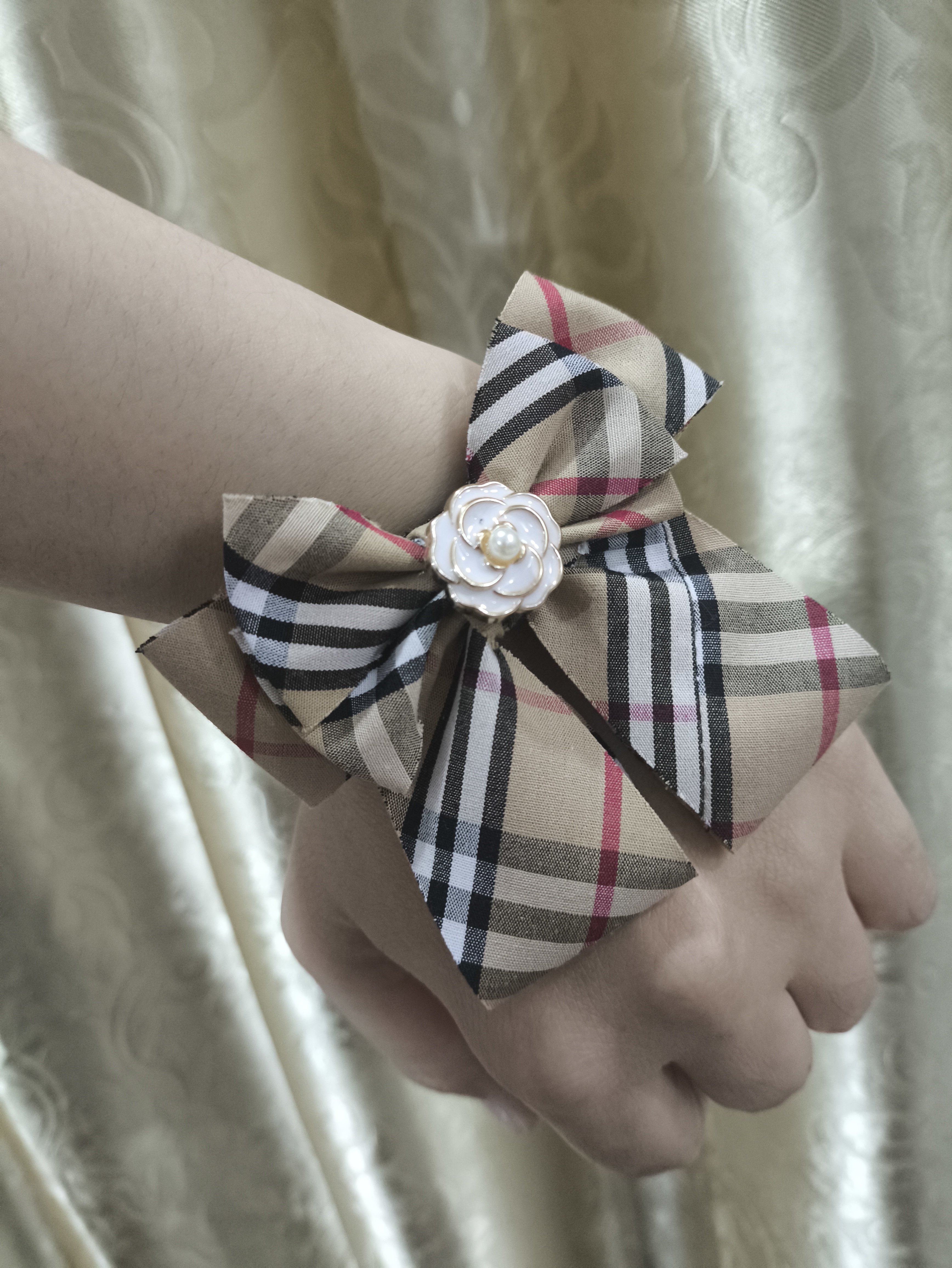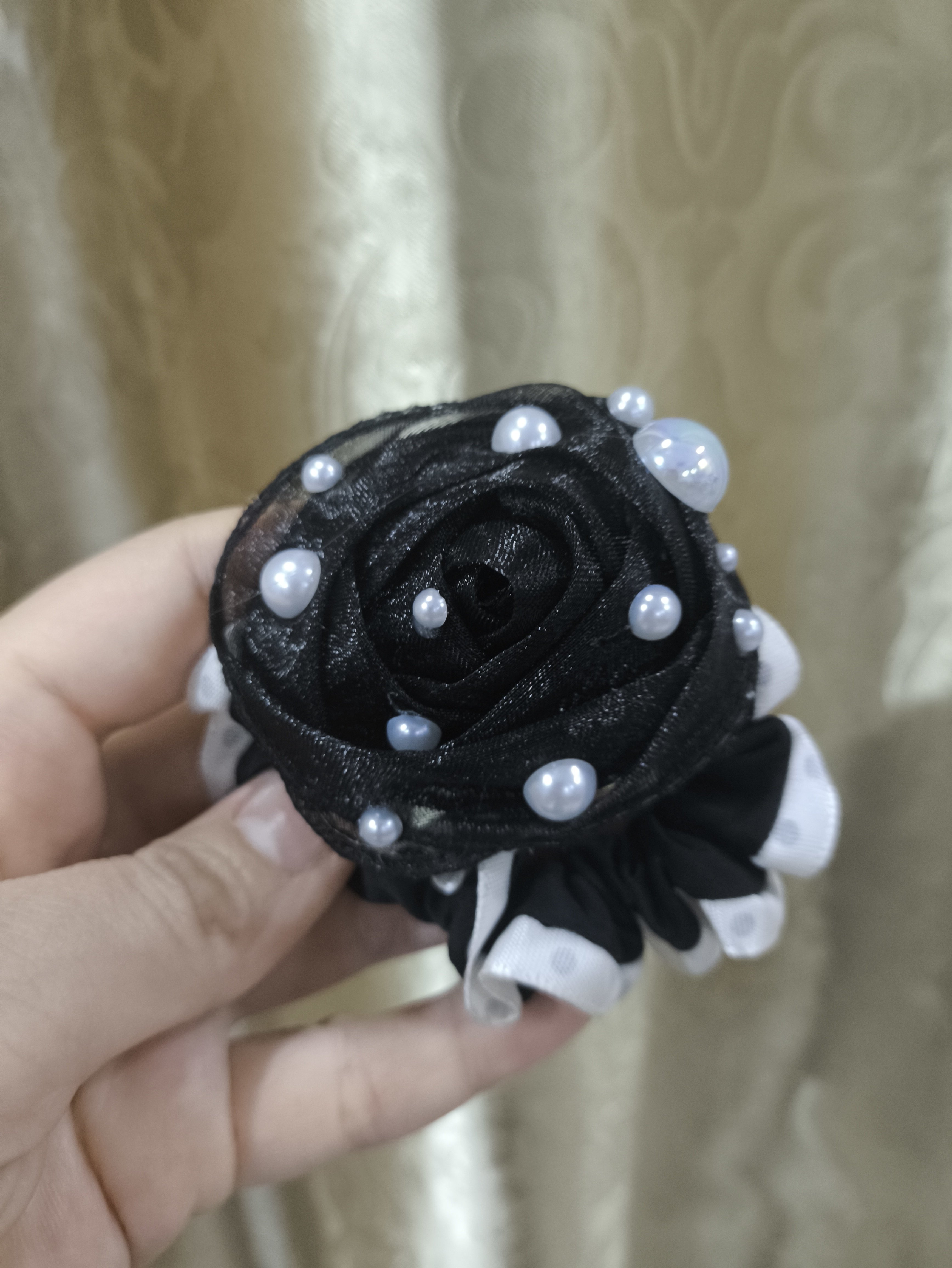 韓版純手工小中腸蝴蝶結玫瑰髮圈通勤上班百搭氣質通用