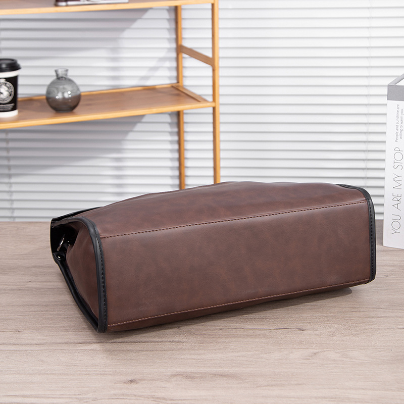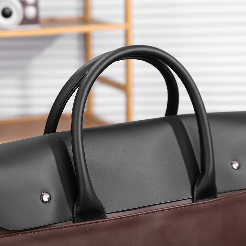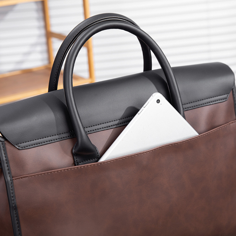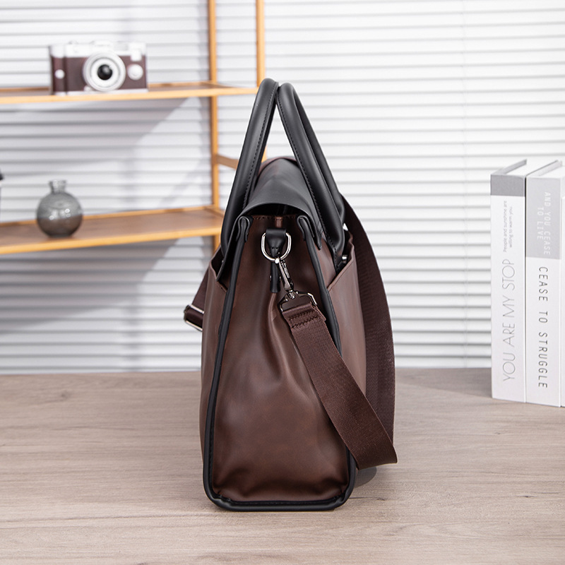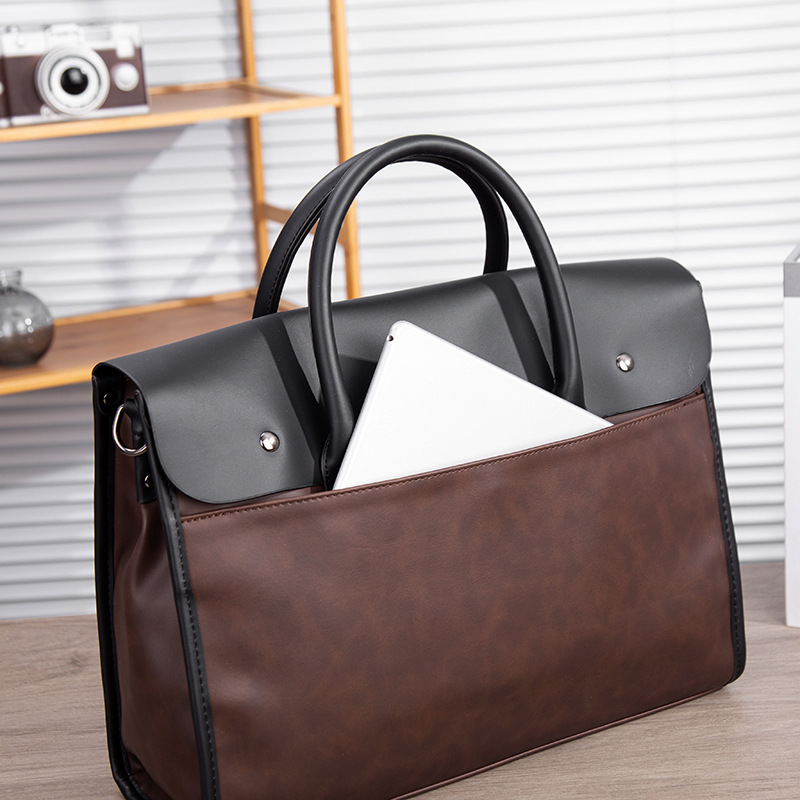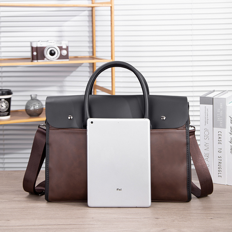 瘋馬皮男包 復古公文包 撞色商務男士手提包 橫款單肩斜背電腦包
