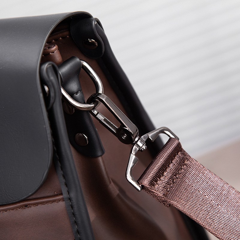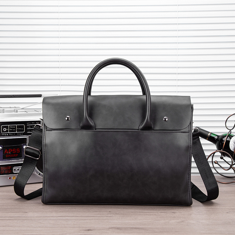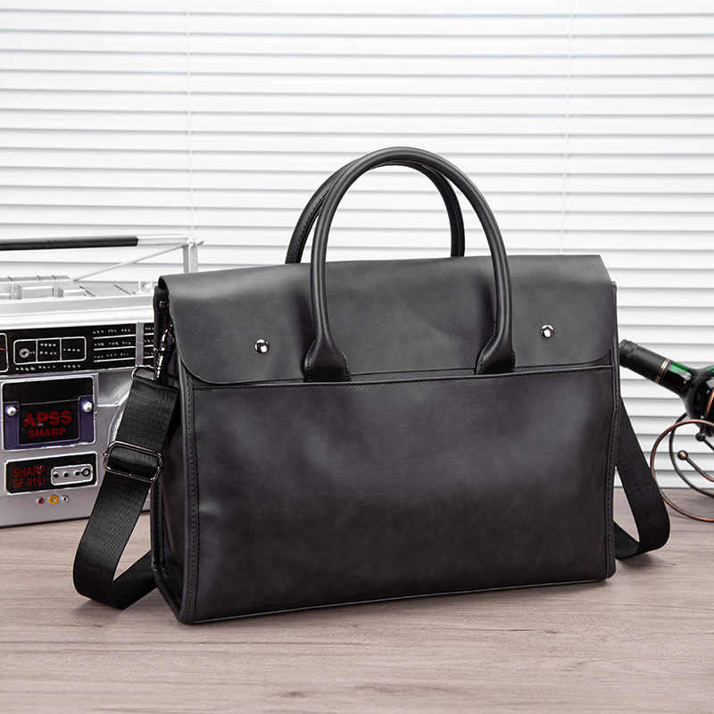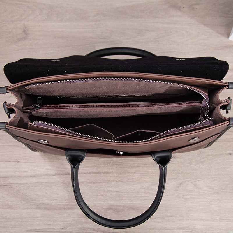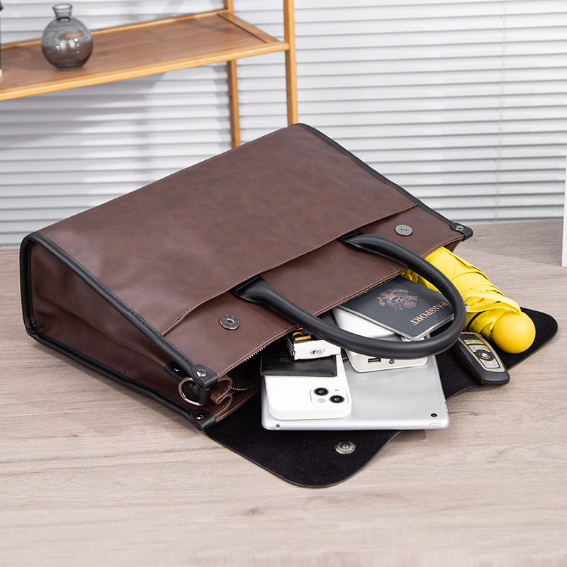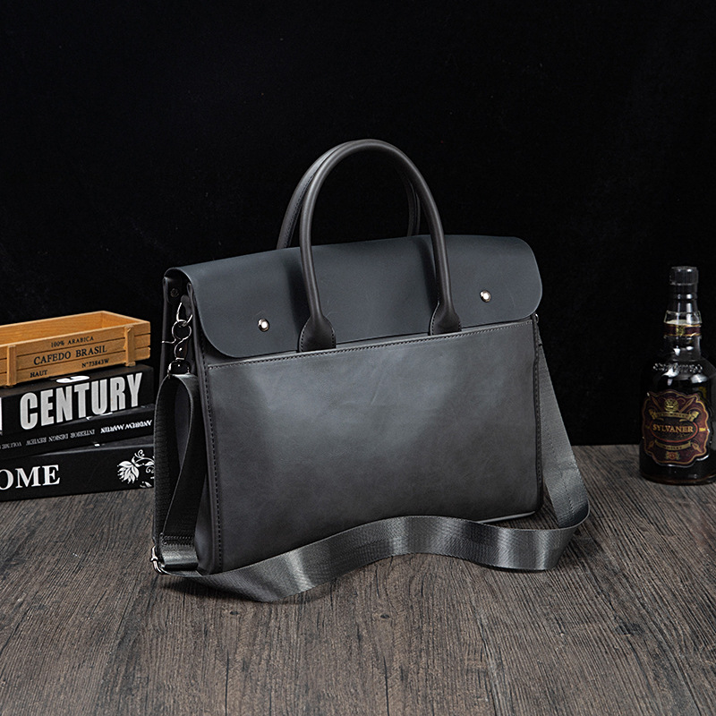 瘋馬皮男包 復古公文包 撞色商務男士手提包 橫款單肩斜背電腦包