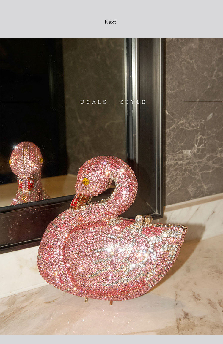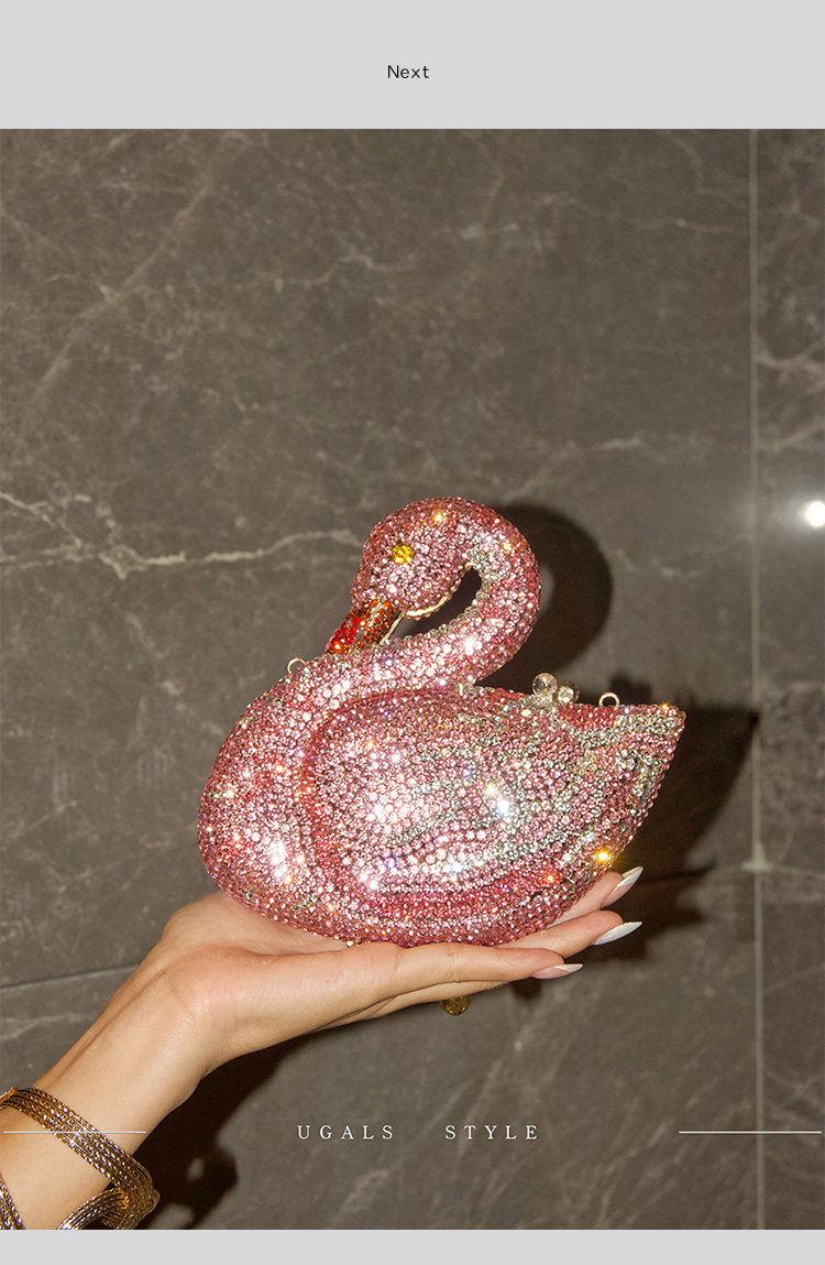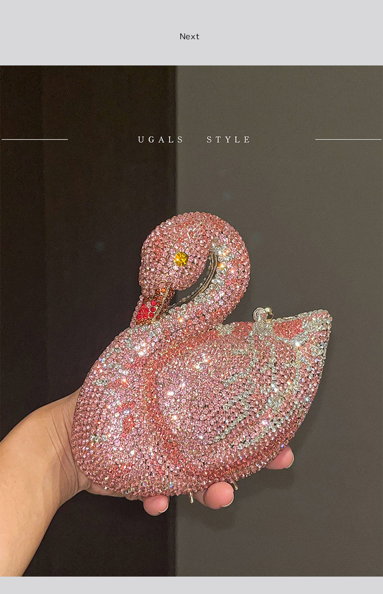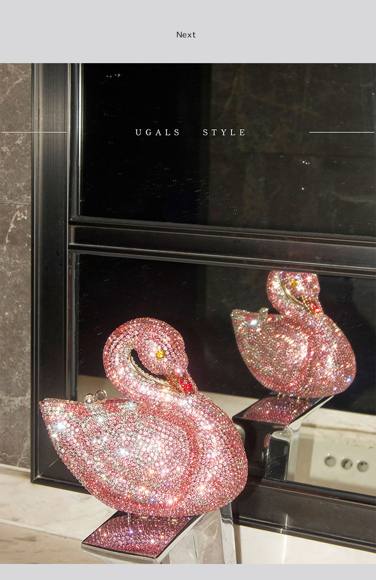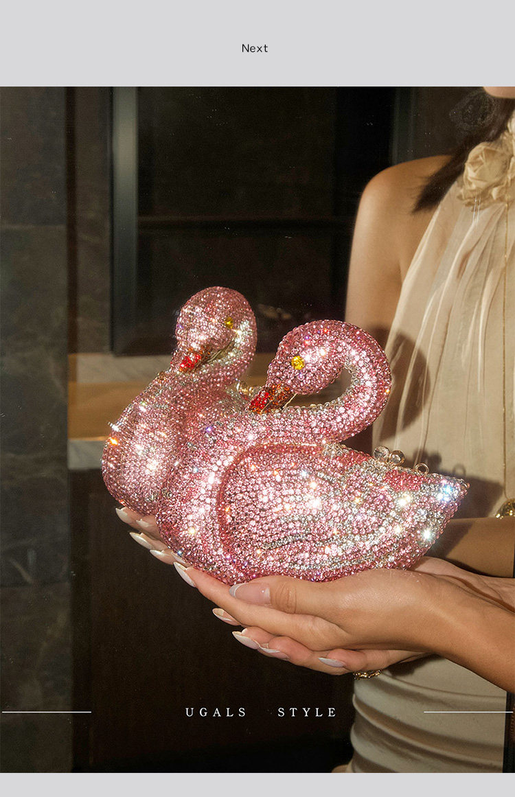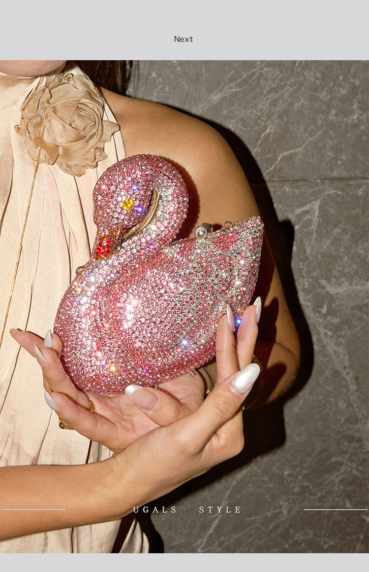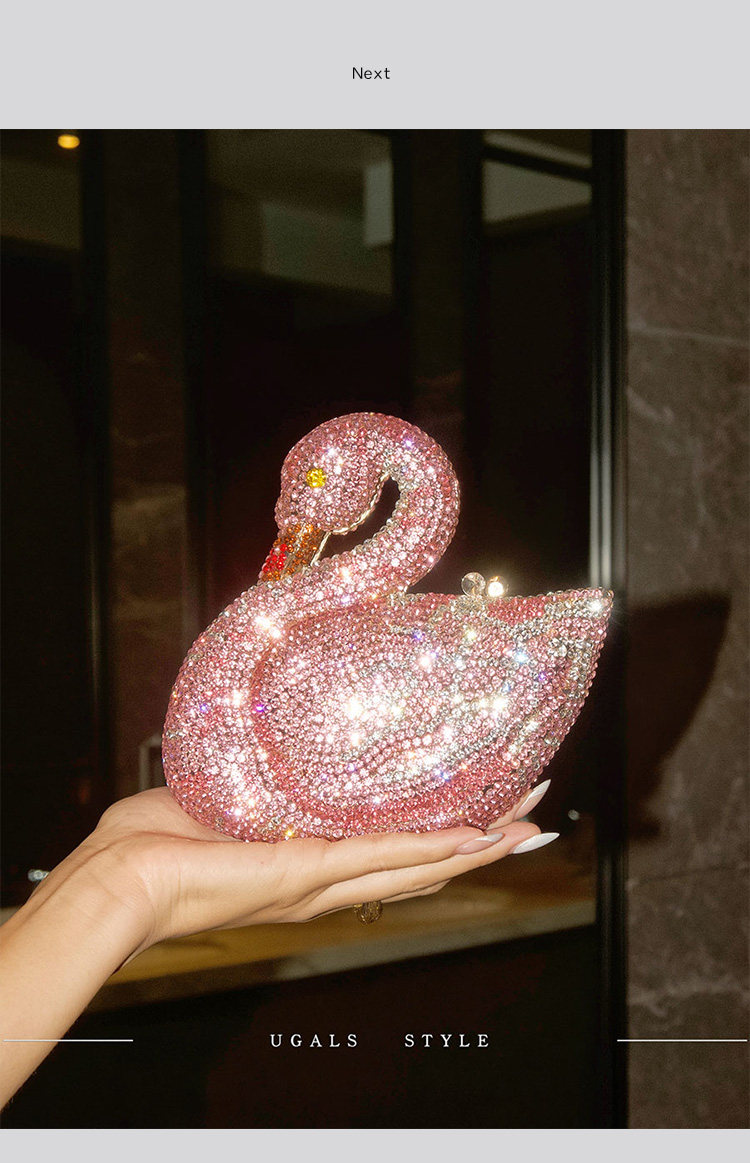 UGALS法式復古重工天鵞盒子水鑽仙女迷你閃亮不靈手拿斜背小包包