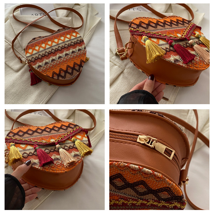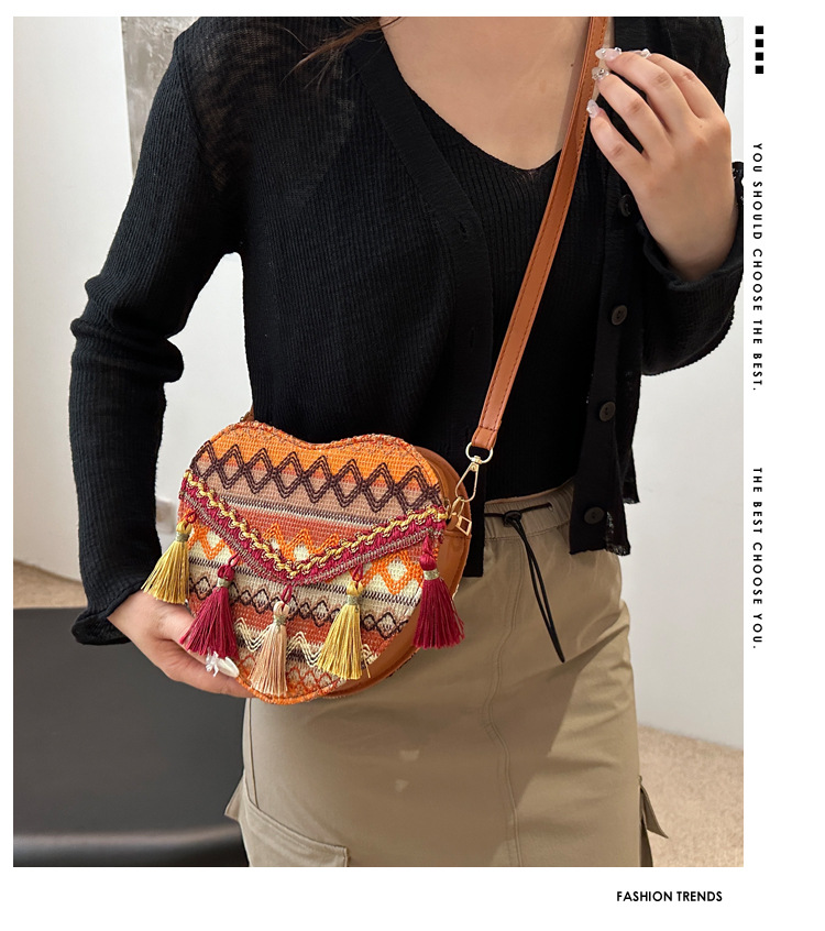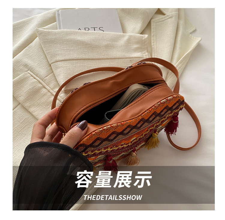 質感編織包包女2024新款潮時尚斜後背包女ins小衆流蘇單肩包女