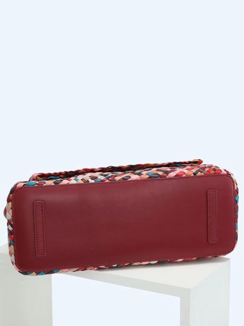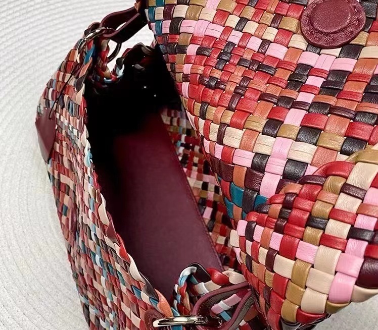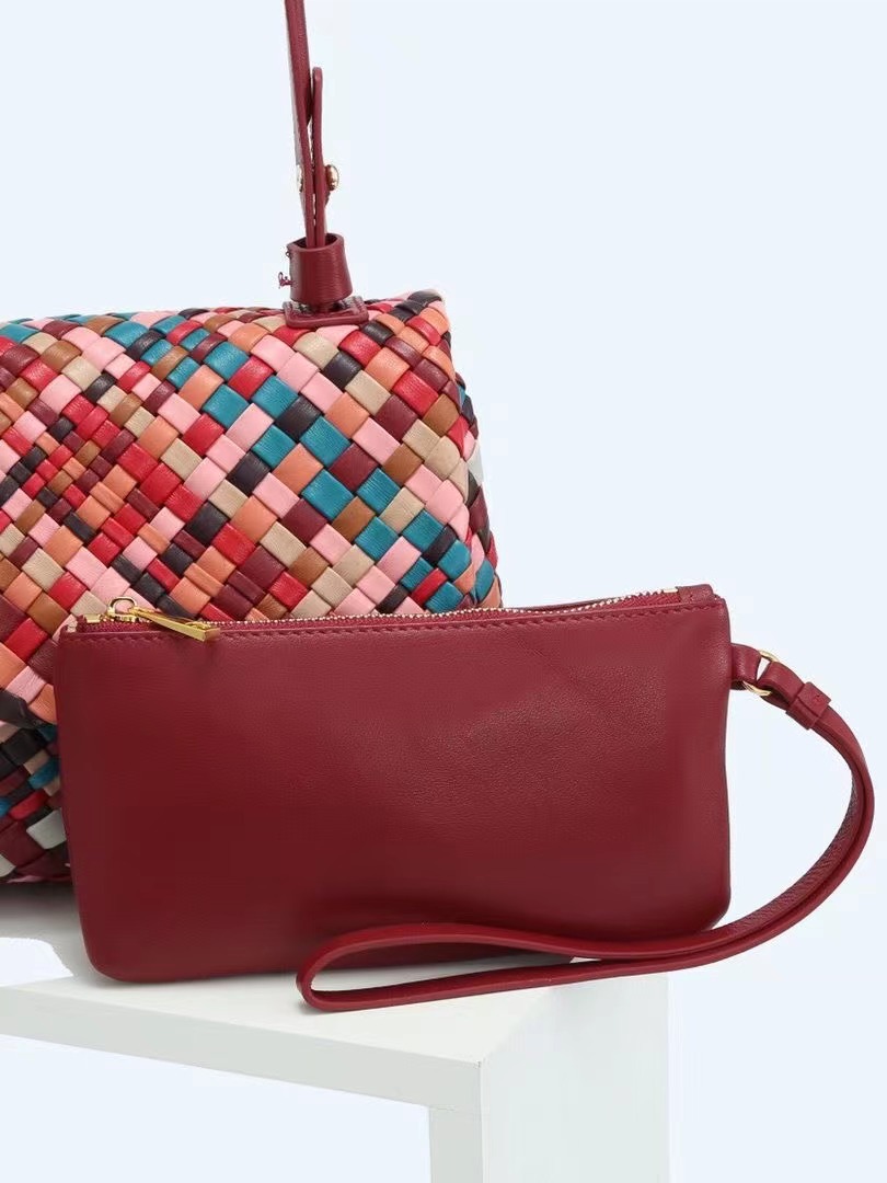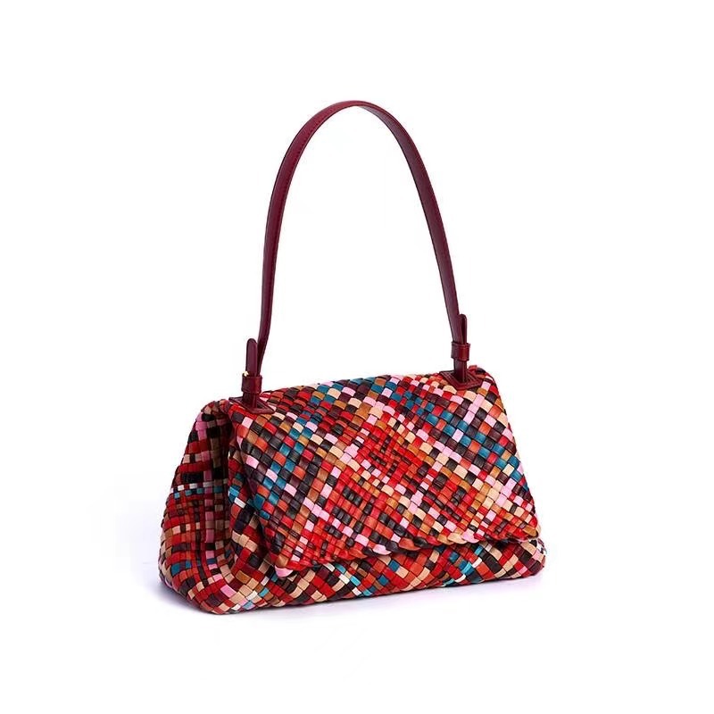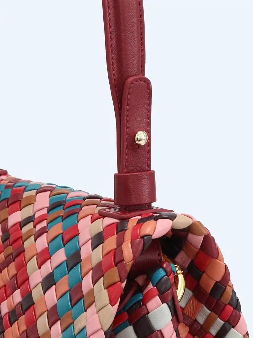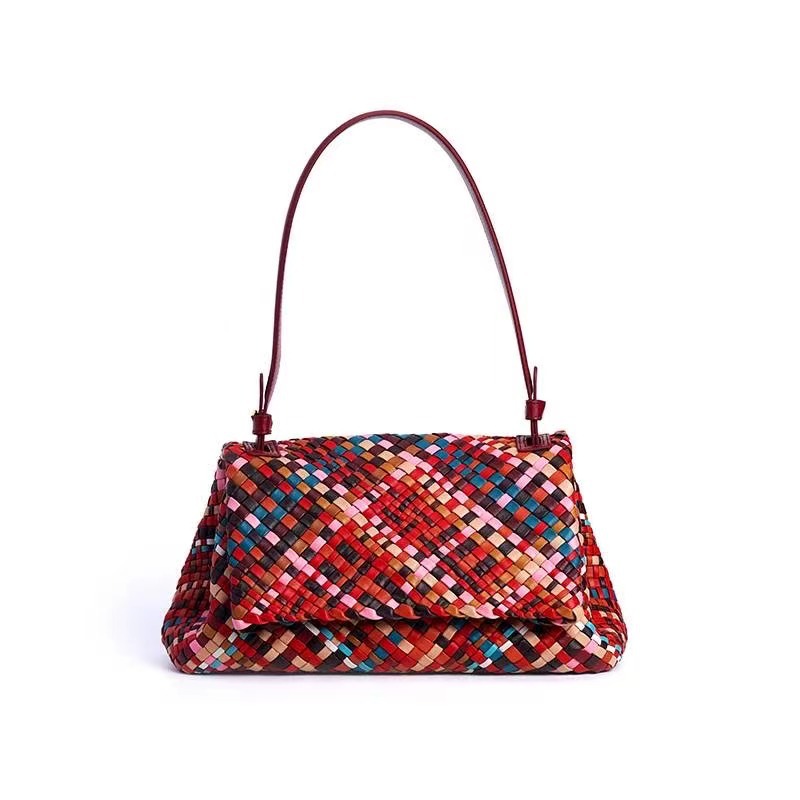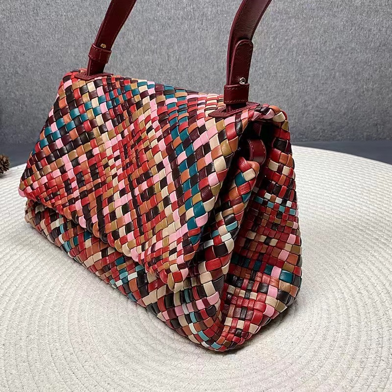 綿羊皮手工混色編織包2024新款氣質百搭單肩包小衆設計質感斜後背包