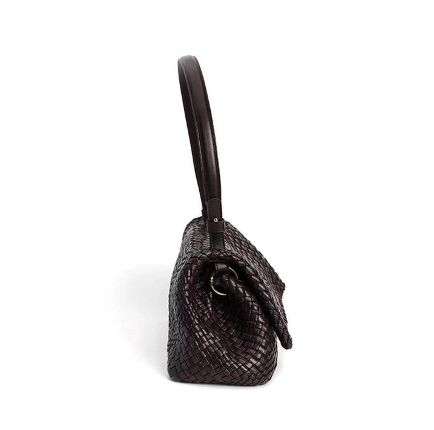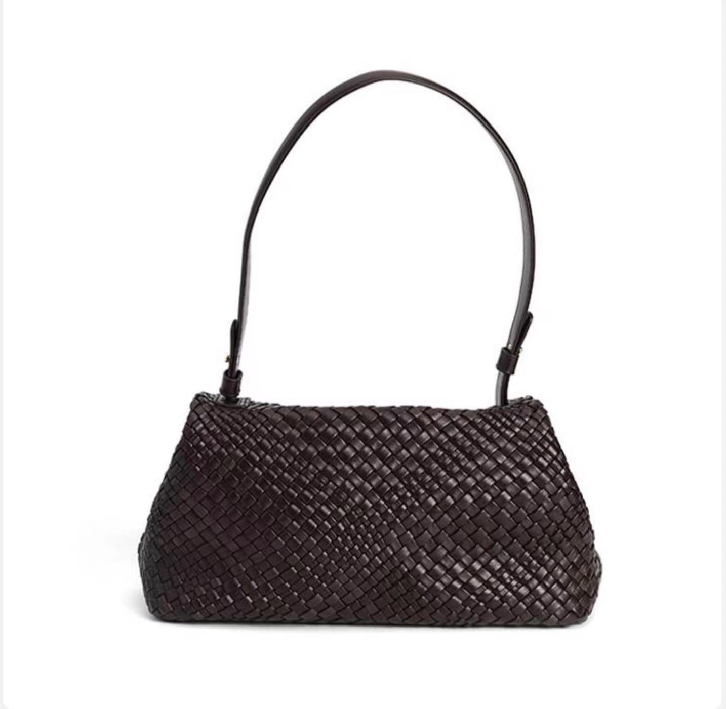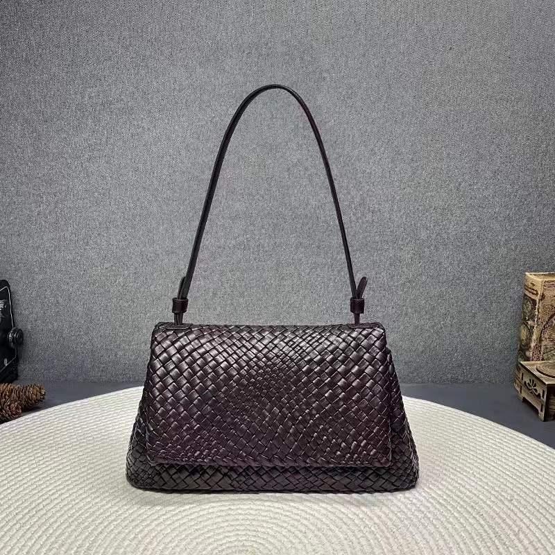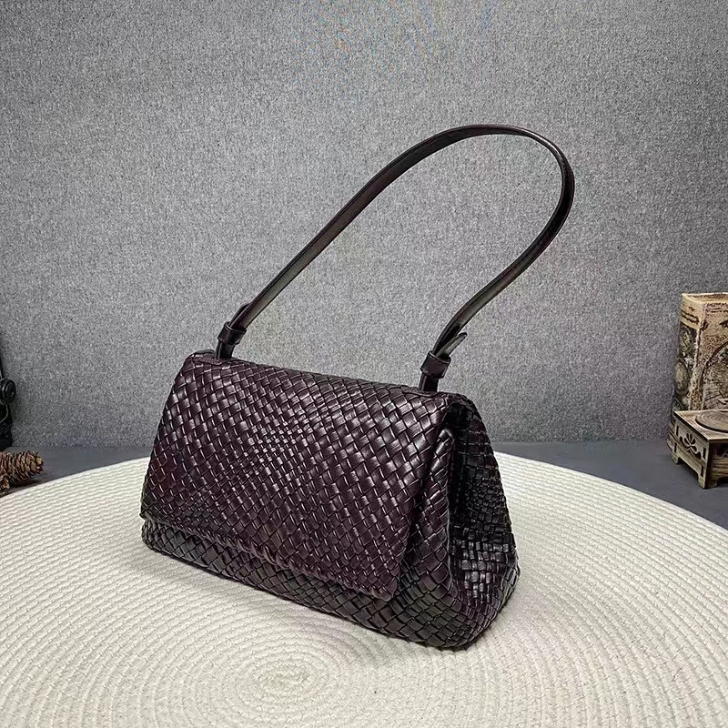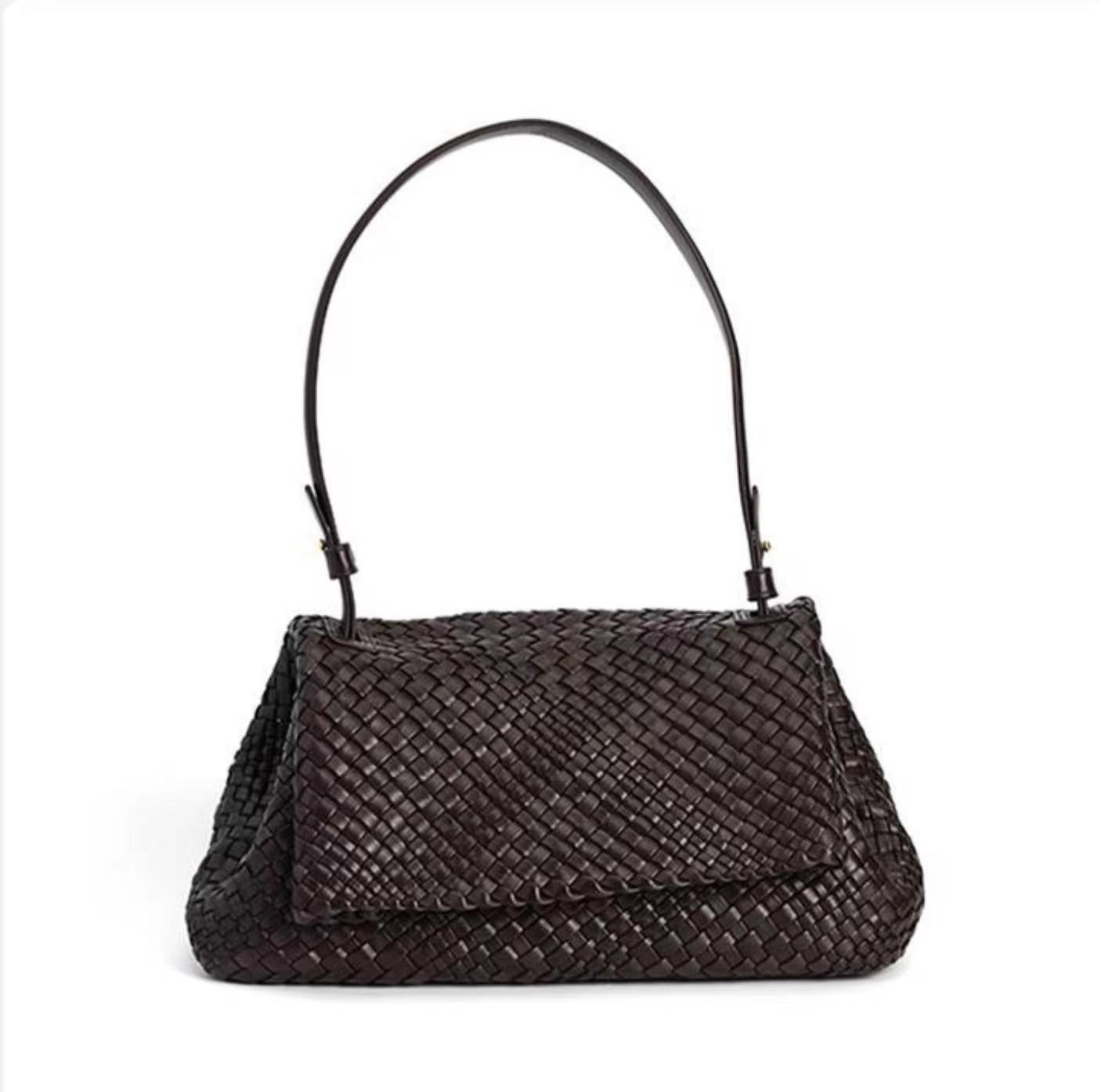 綿羊皮手工混色編織包2024新款氣質百搭單肩包小衆設計質感斜後背包