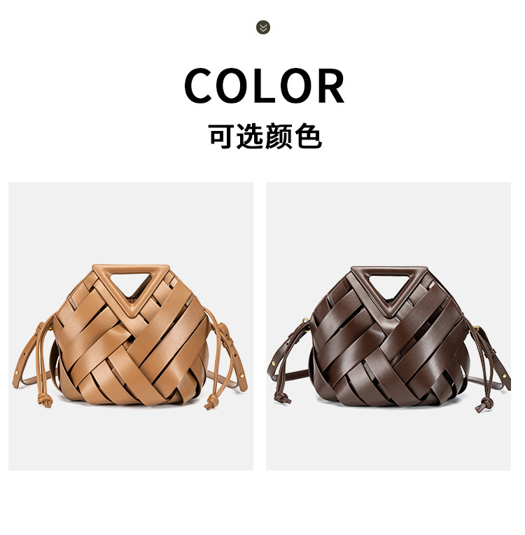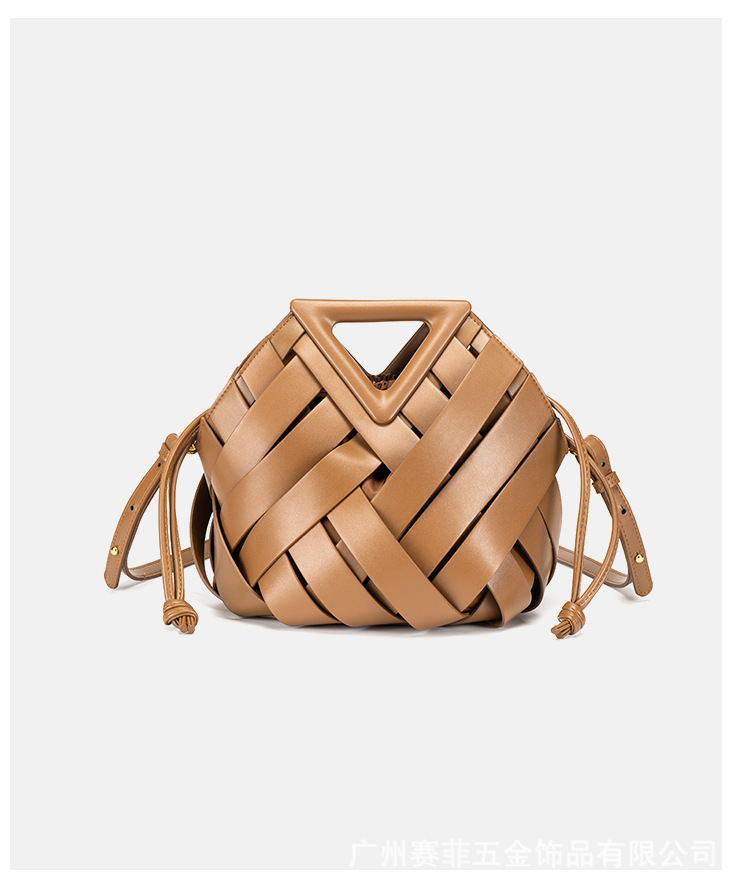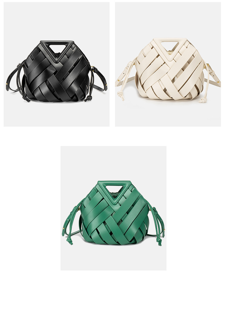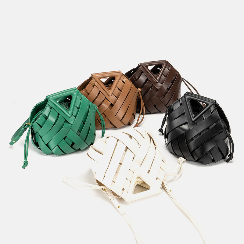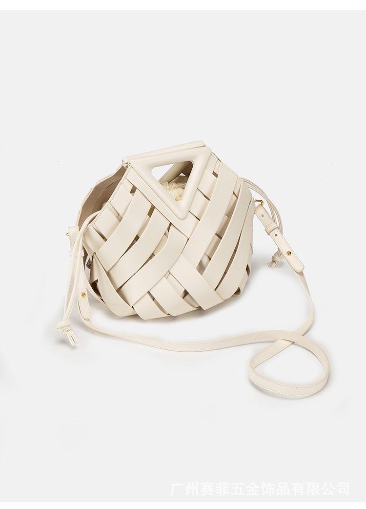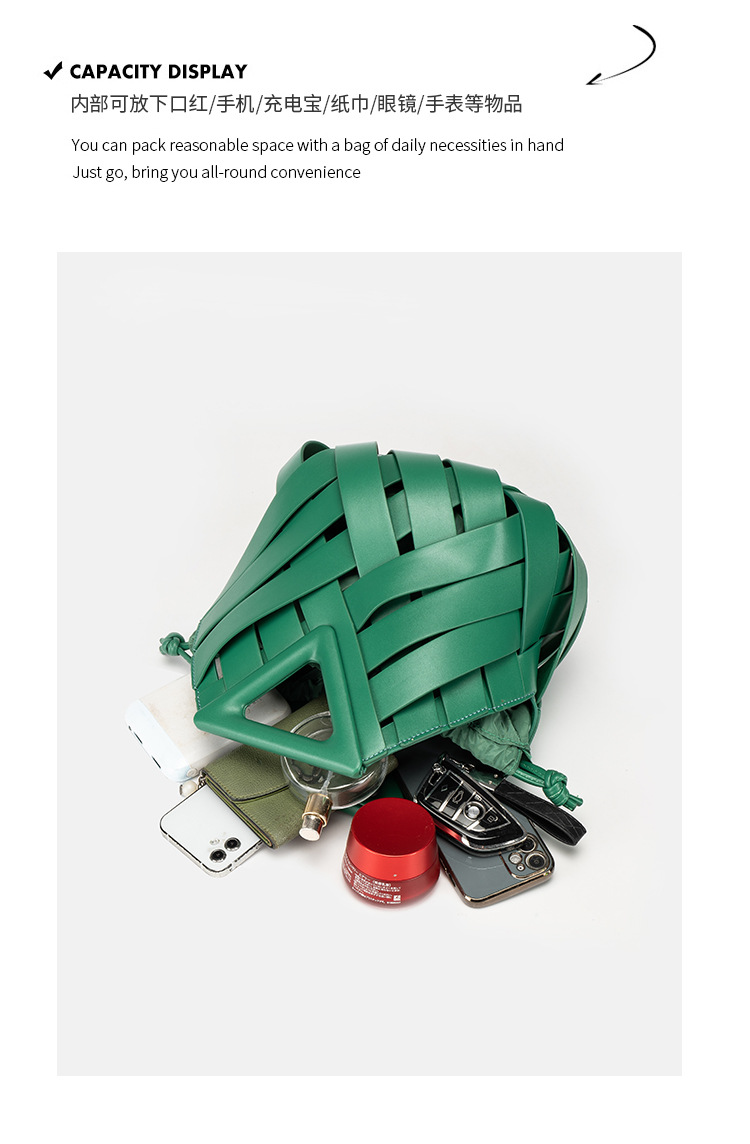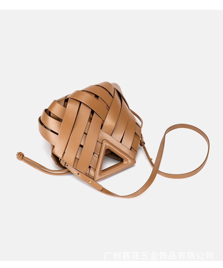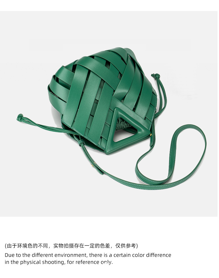 斜後背包包女2025新款倒三角菜籃子鏤空手提編織包真皮女包單肩包