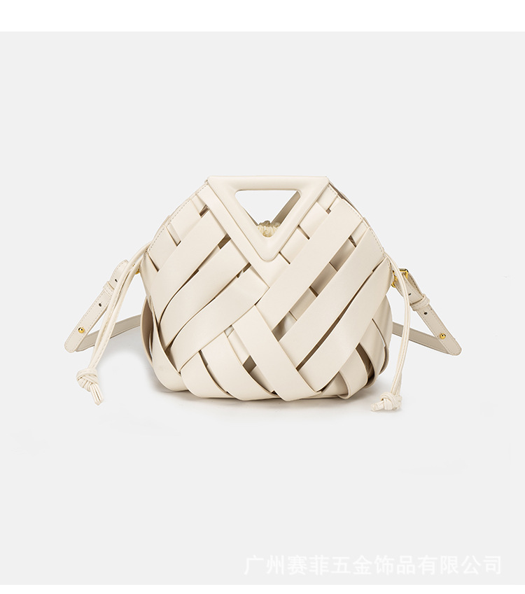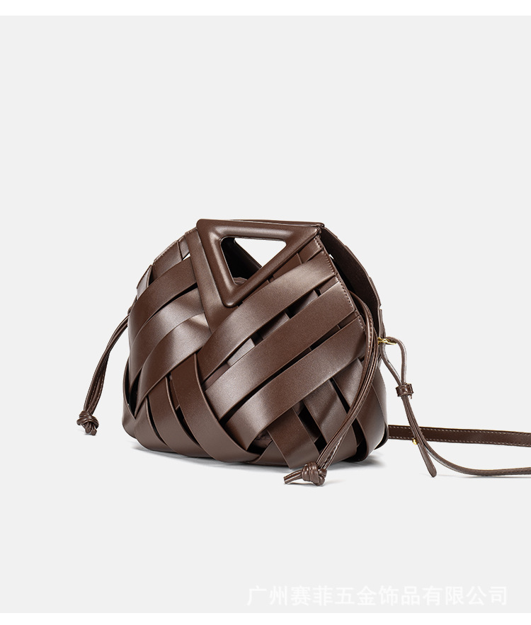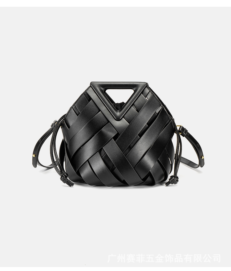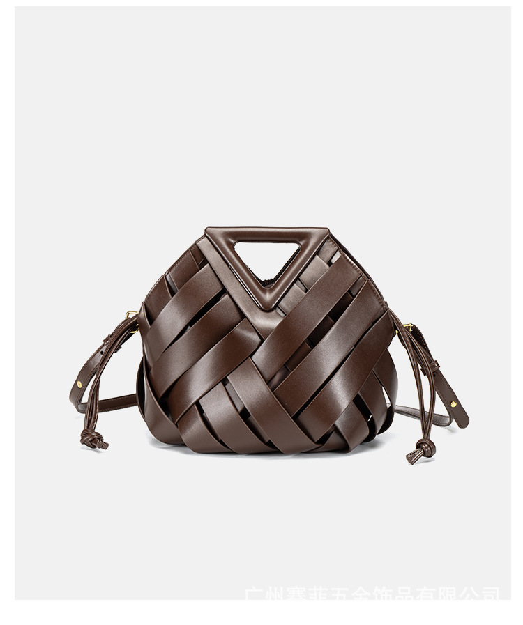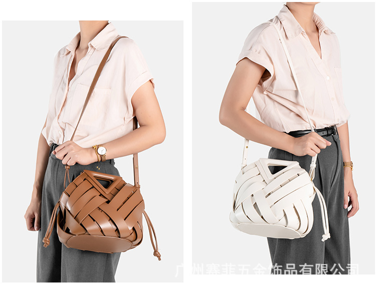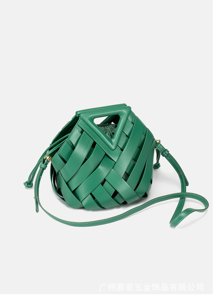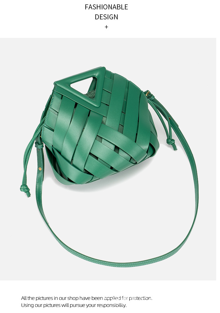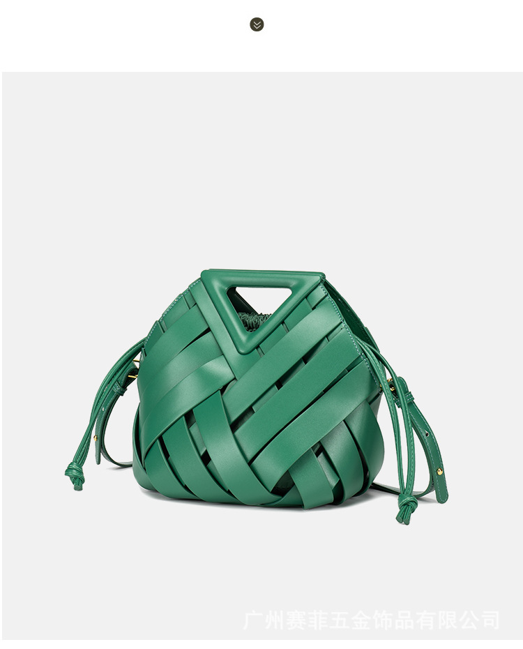 斜後背包包女2025新款倒三角菜籃子鏤空手提編織包真皮女包單肩包