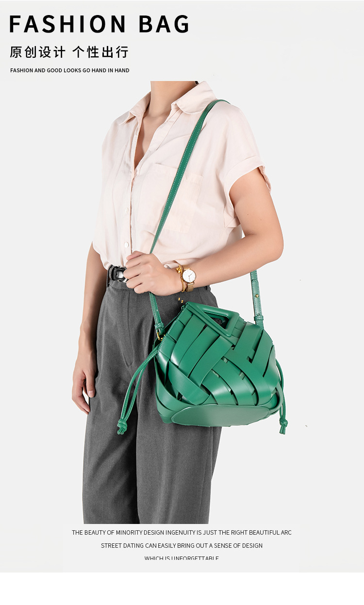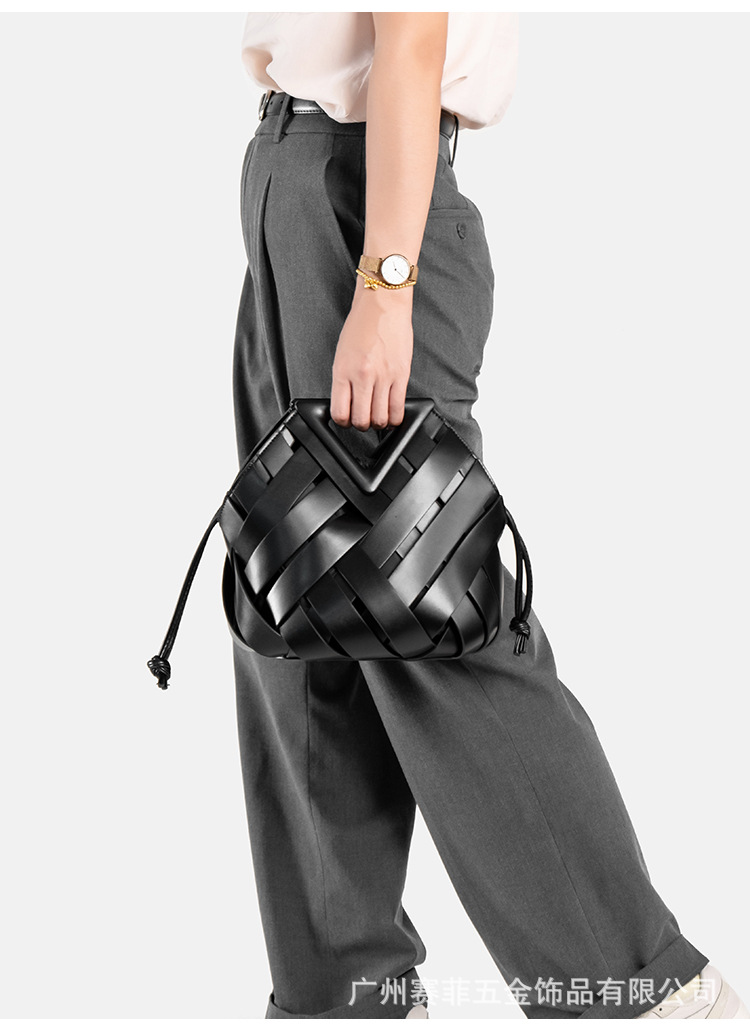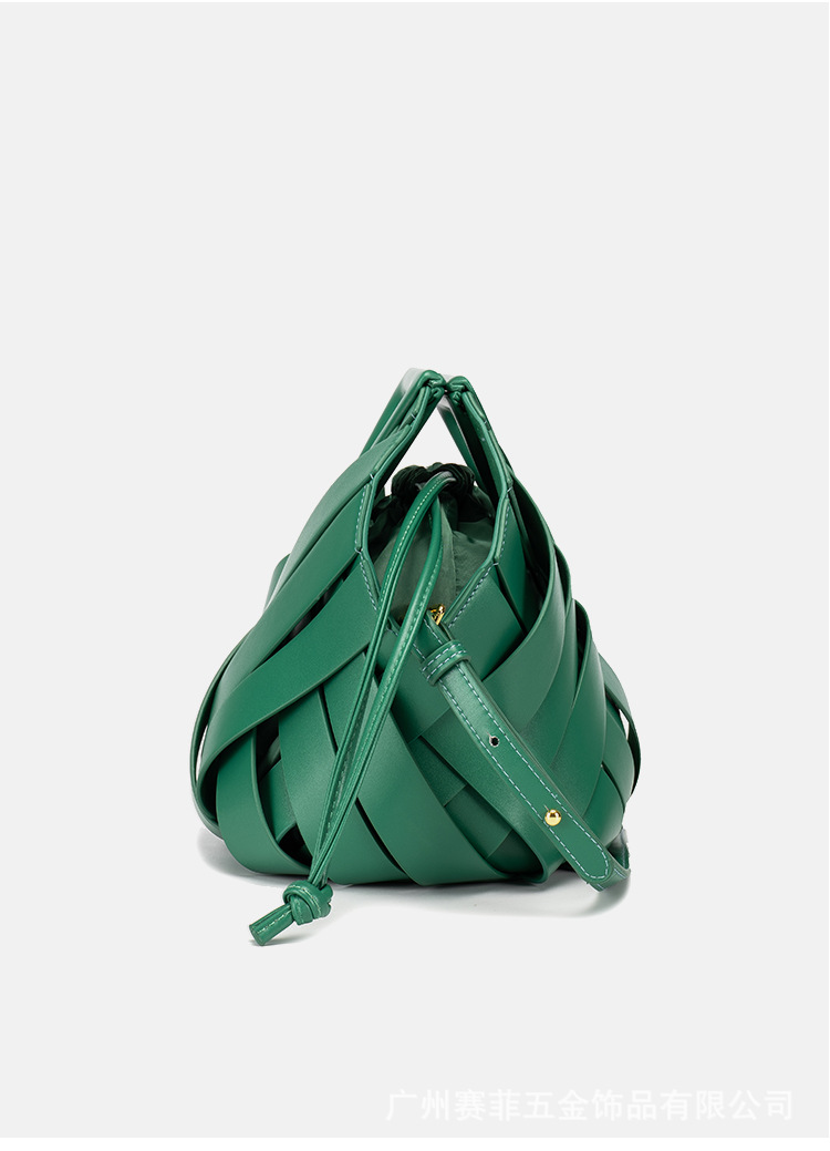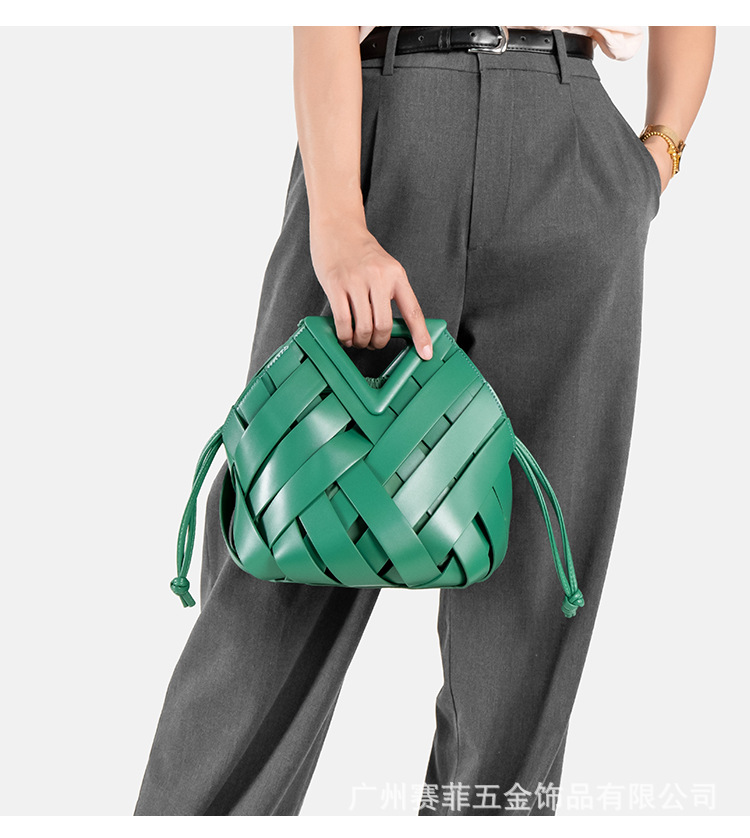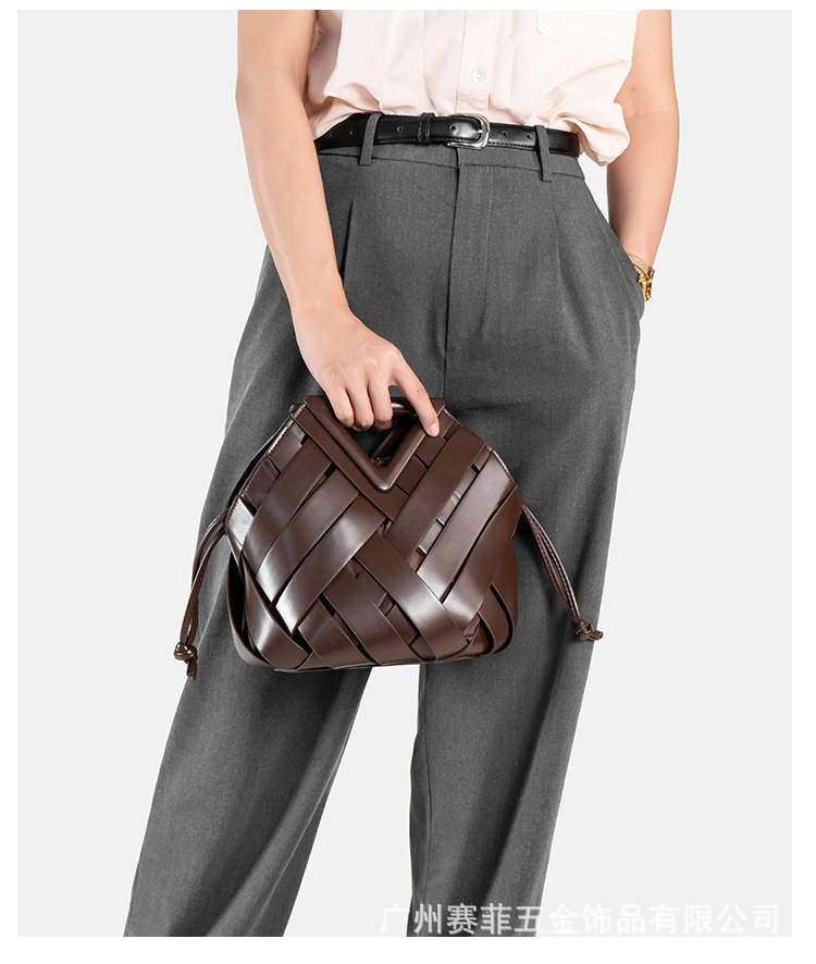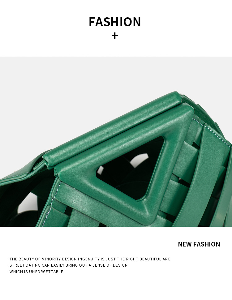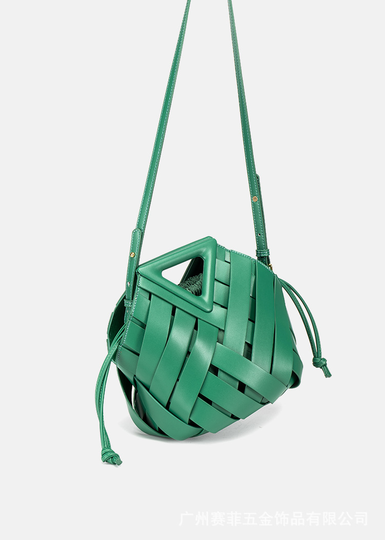 斜後背包包女2025新款倒三角菜籃子鏤空手提編織包真皮女包單肩包