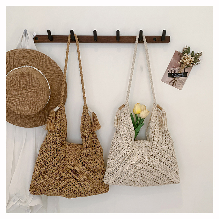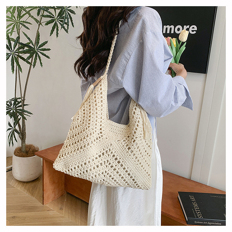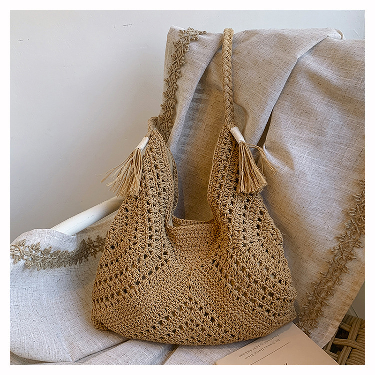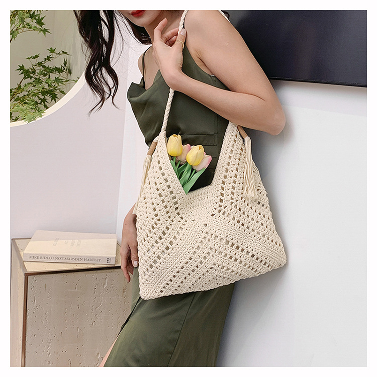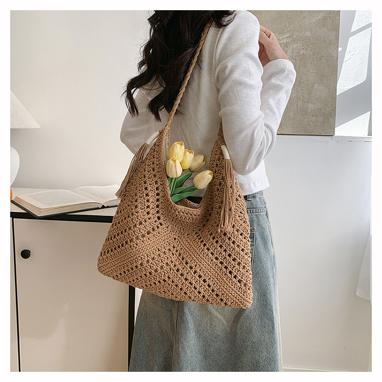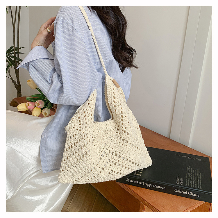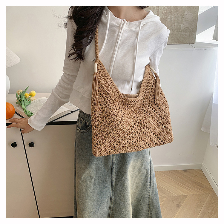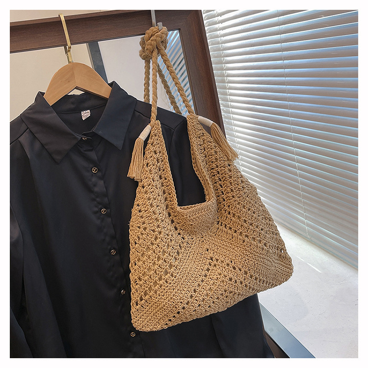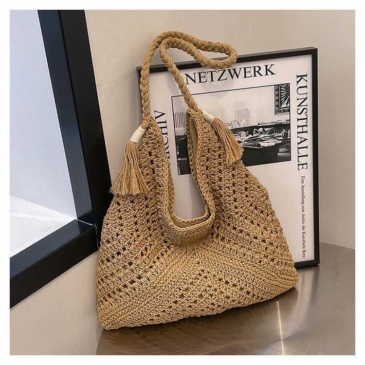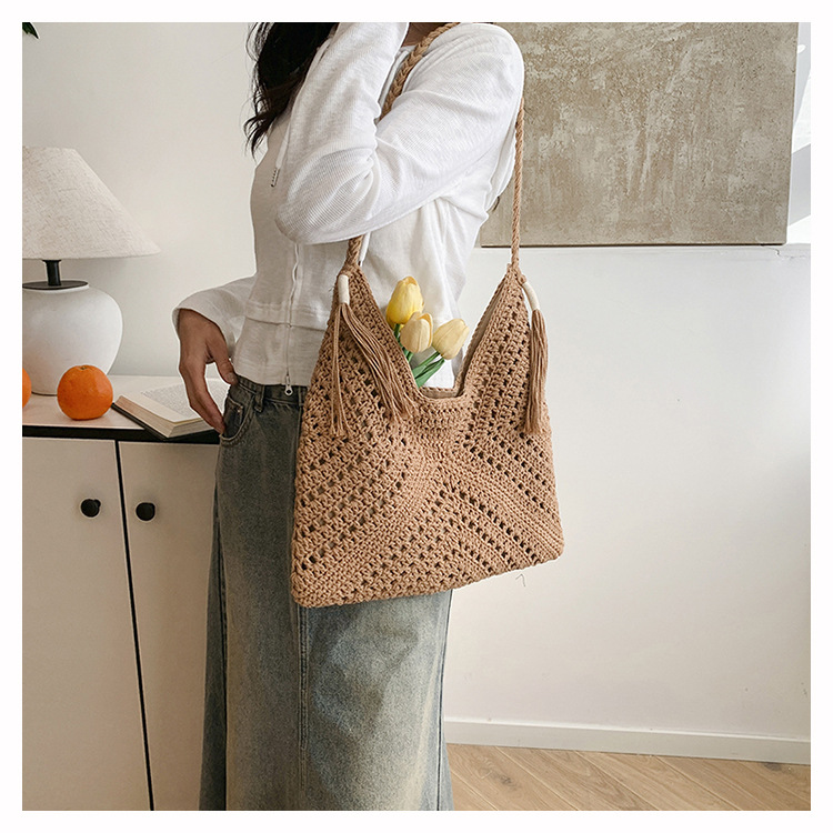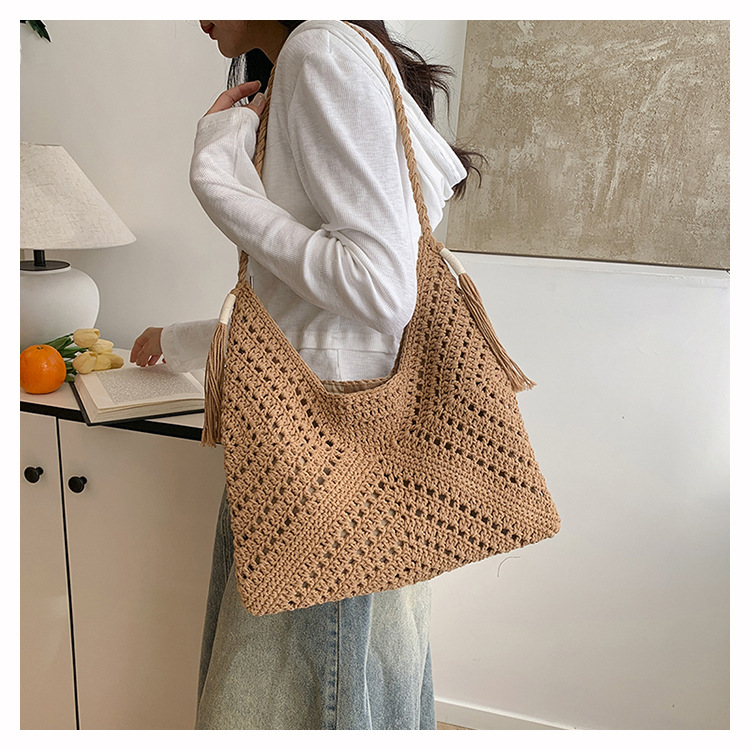 編織包包女2025新款慵嬾風時尚休閒度假單肩包大容量托特包