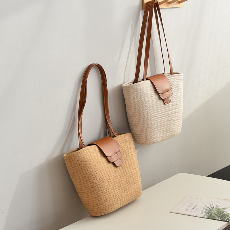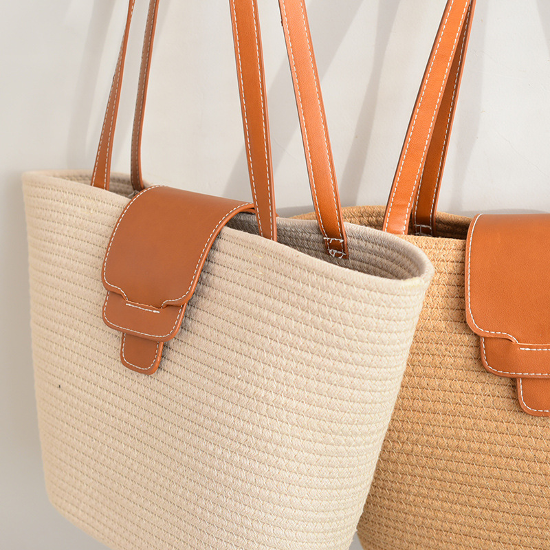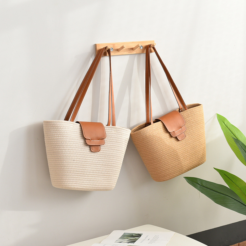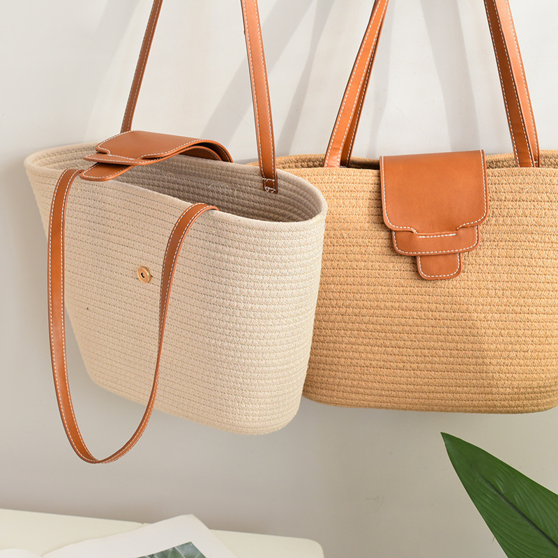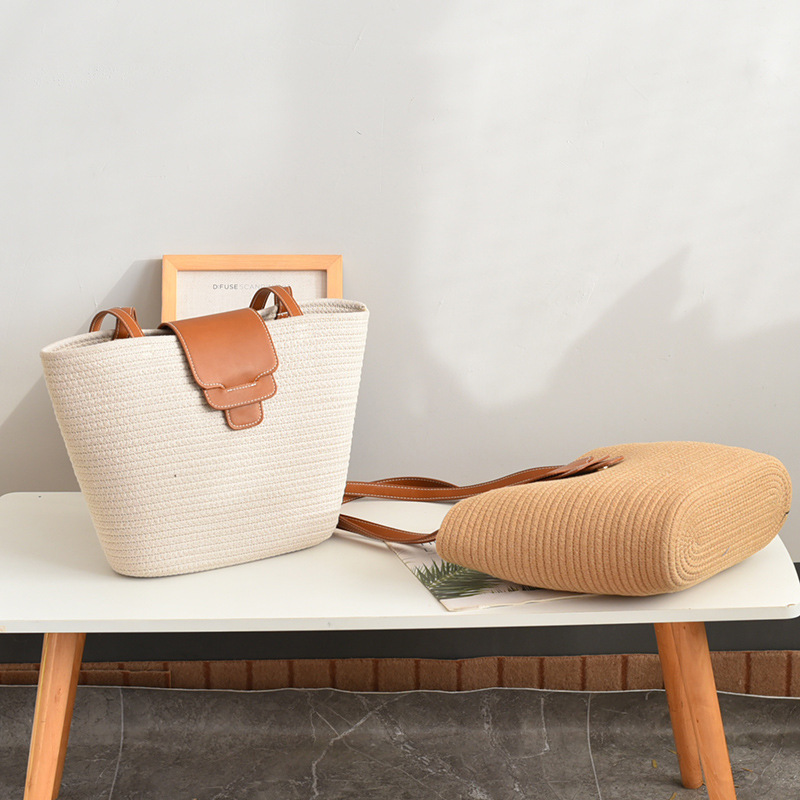 北歐新款棉繩編織包女士單肩包草編包沙灘包休閒女包學生百搭包包