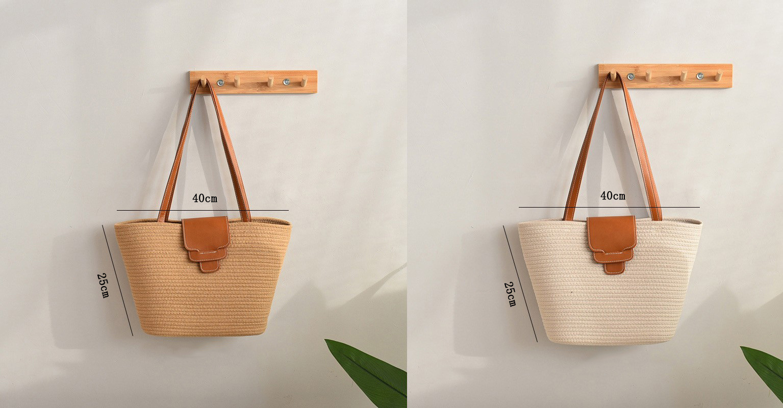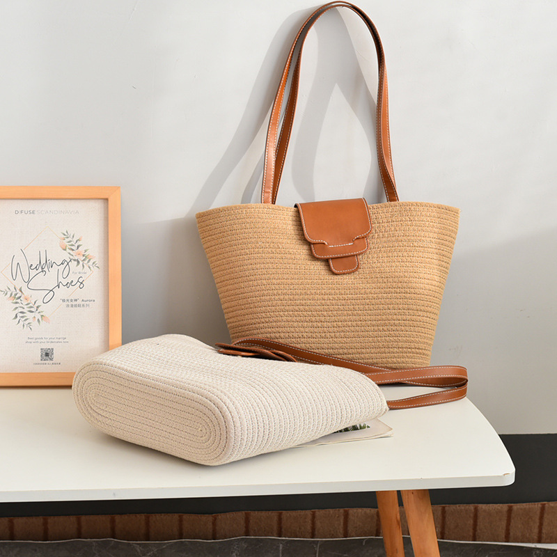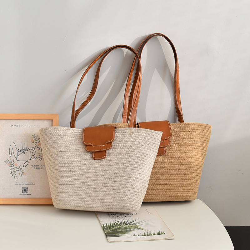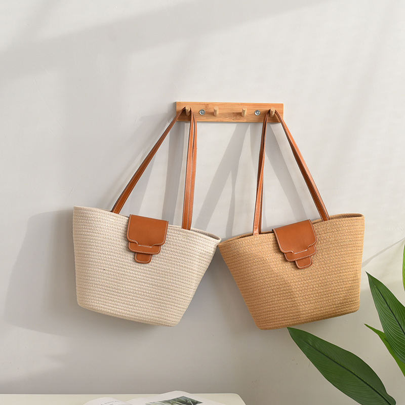 北歐新款棉繩編織包女士單肩包草編包沙灘包休閒女包學生百搭包包