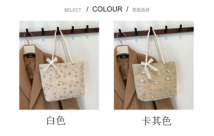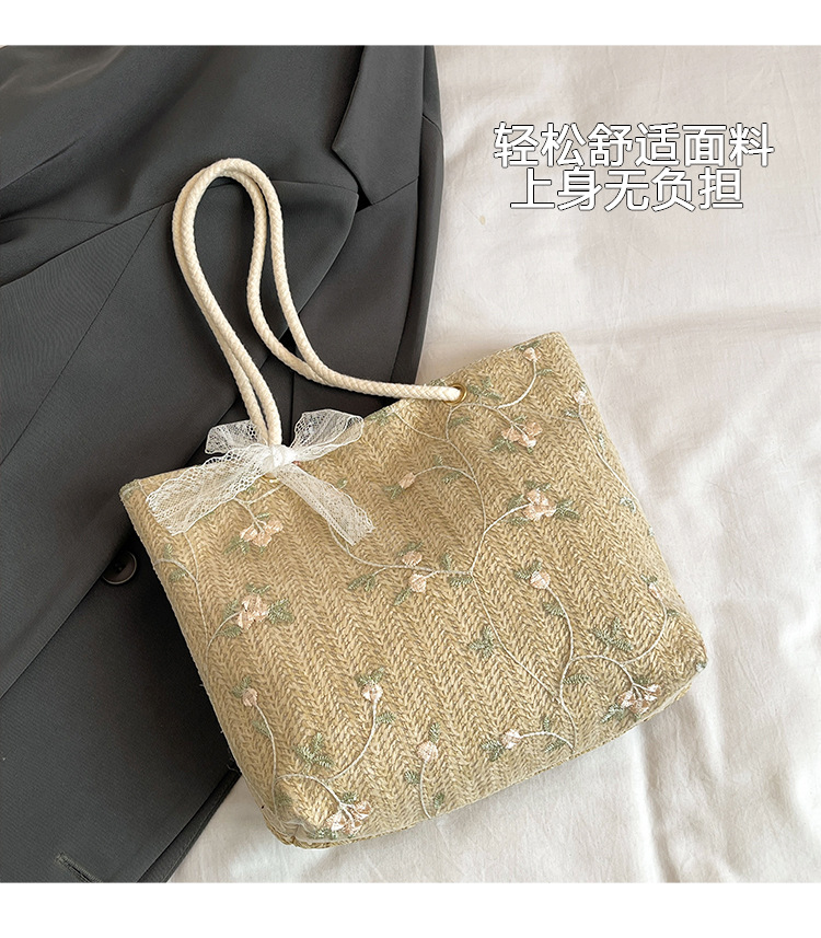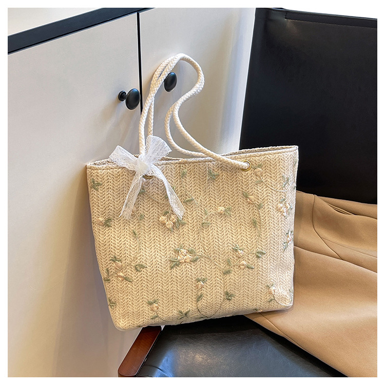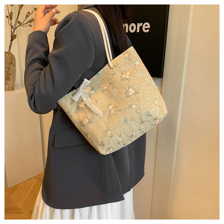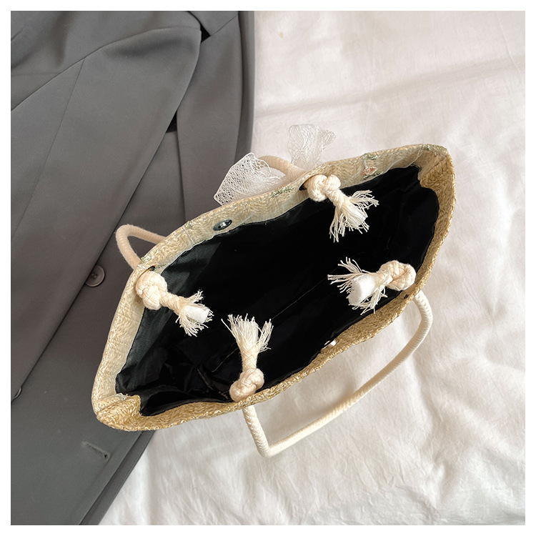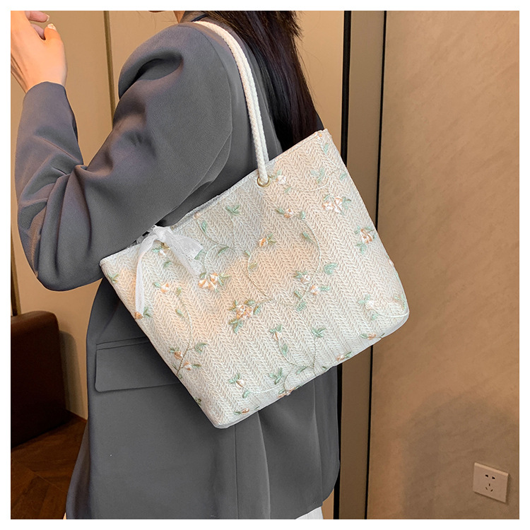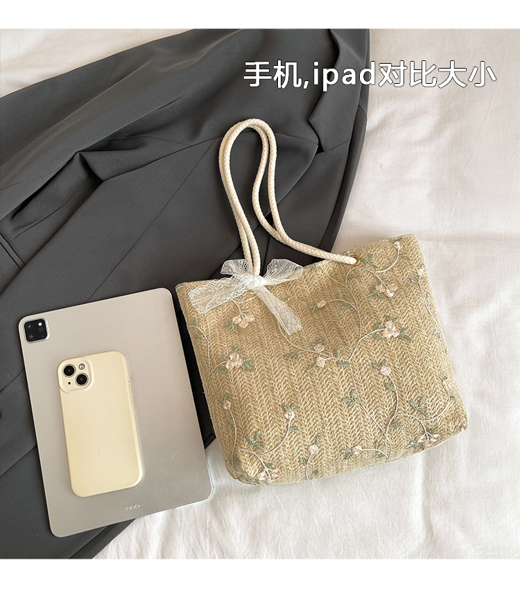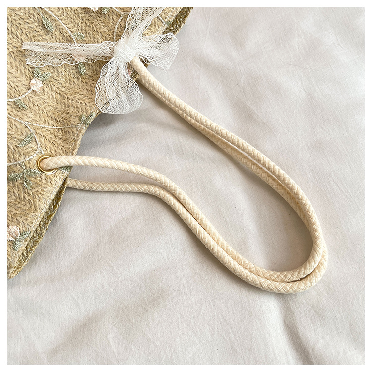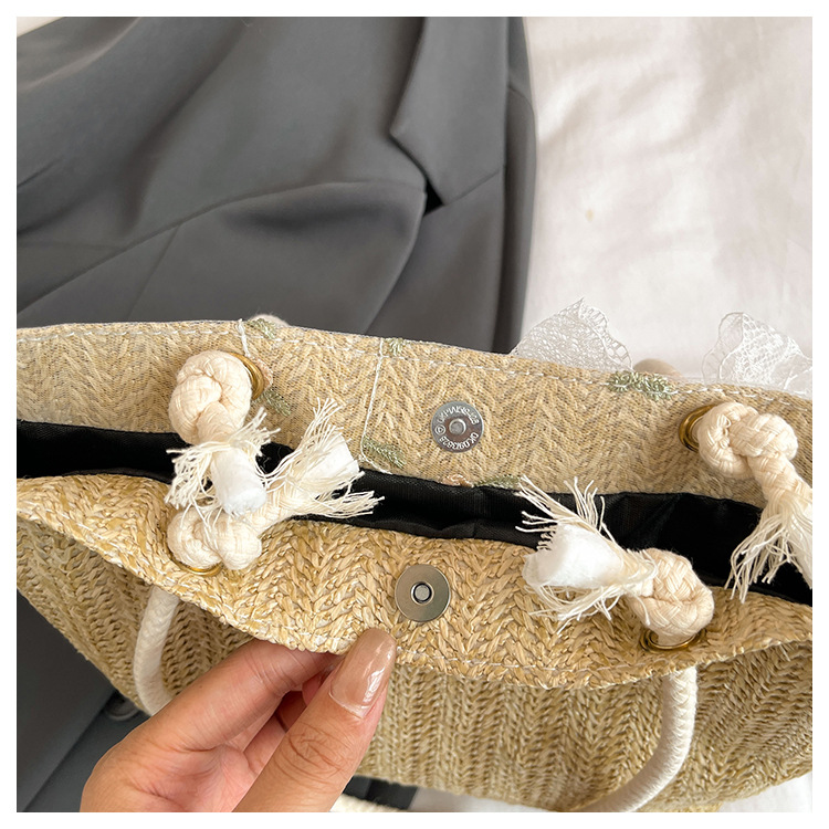 編織包包2024新款夏季韓版小衆設計水桶包小清新簡約蕾絲編織包