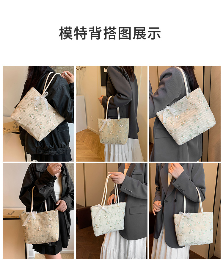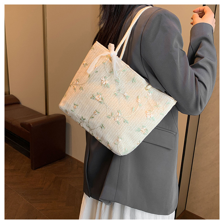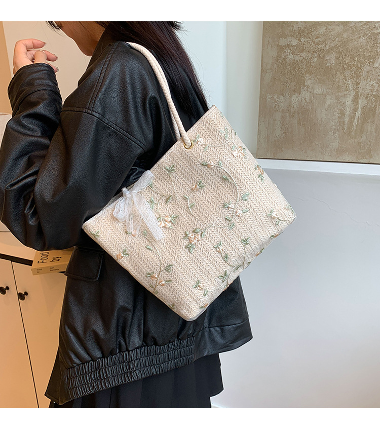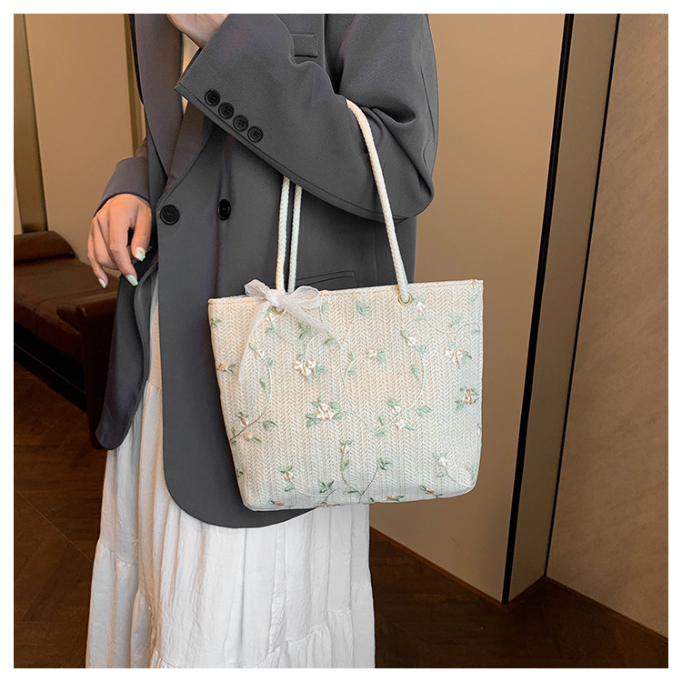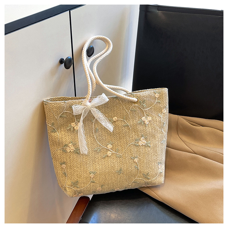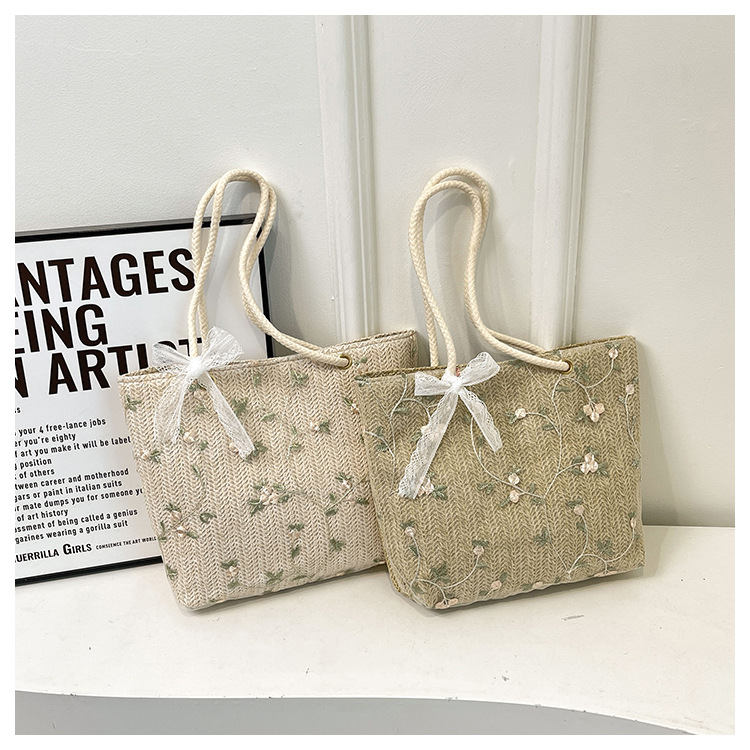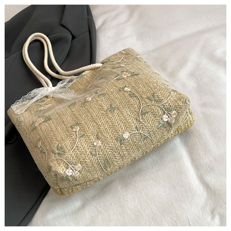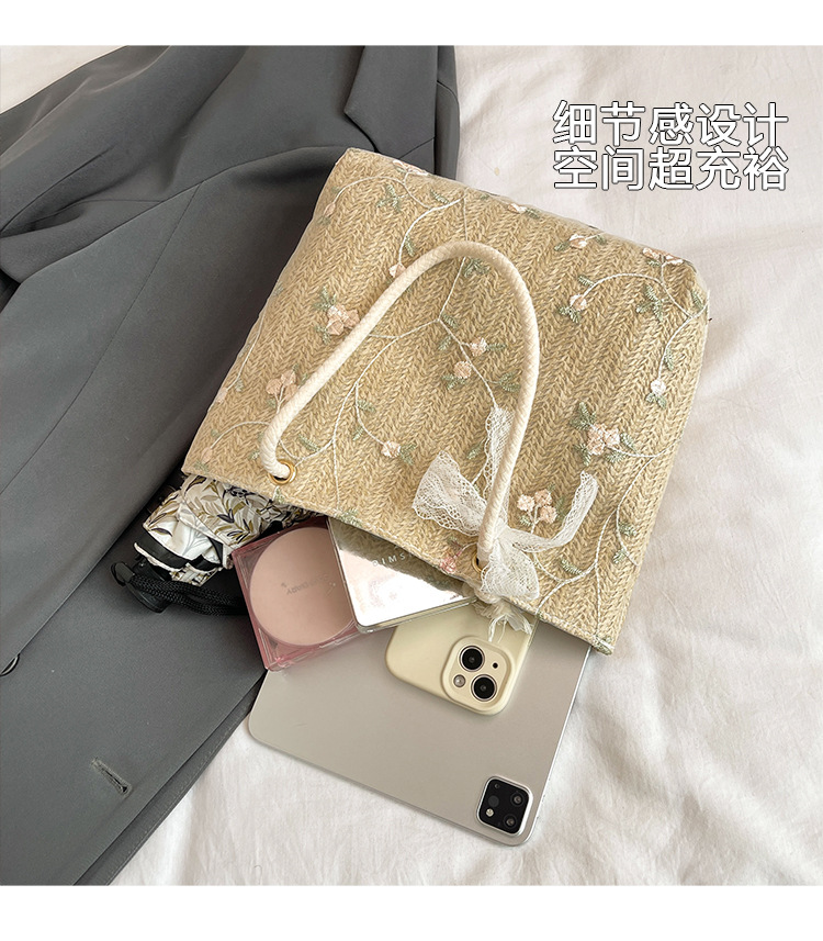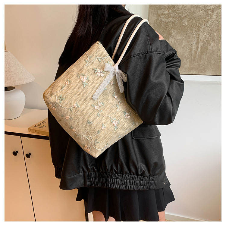 編織包包2024新款夏季韓版小衆設計水桶包小清新簡約蕾絲編織包