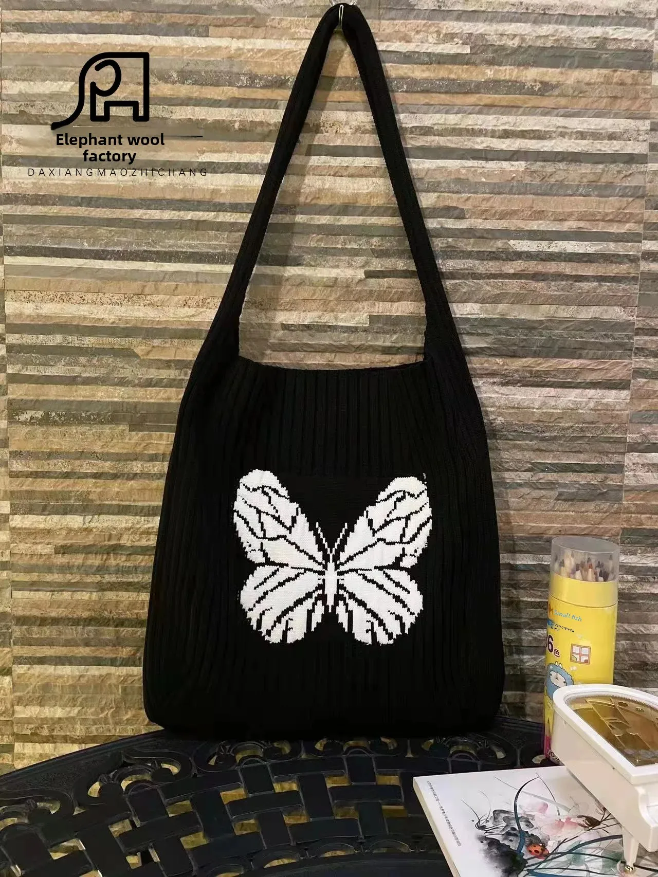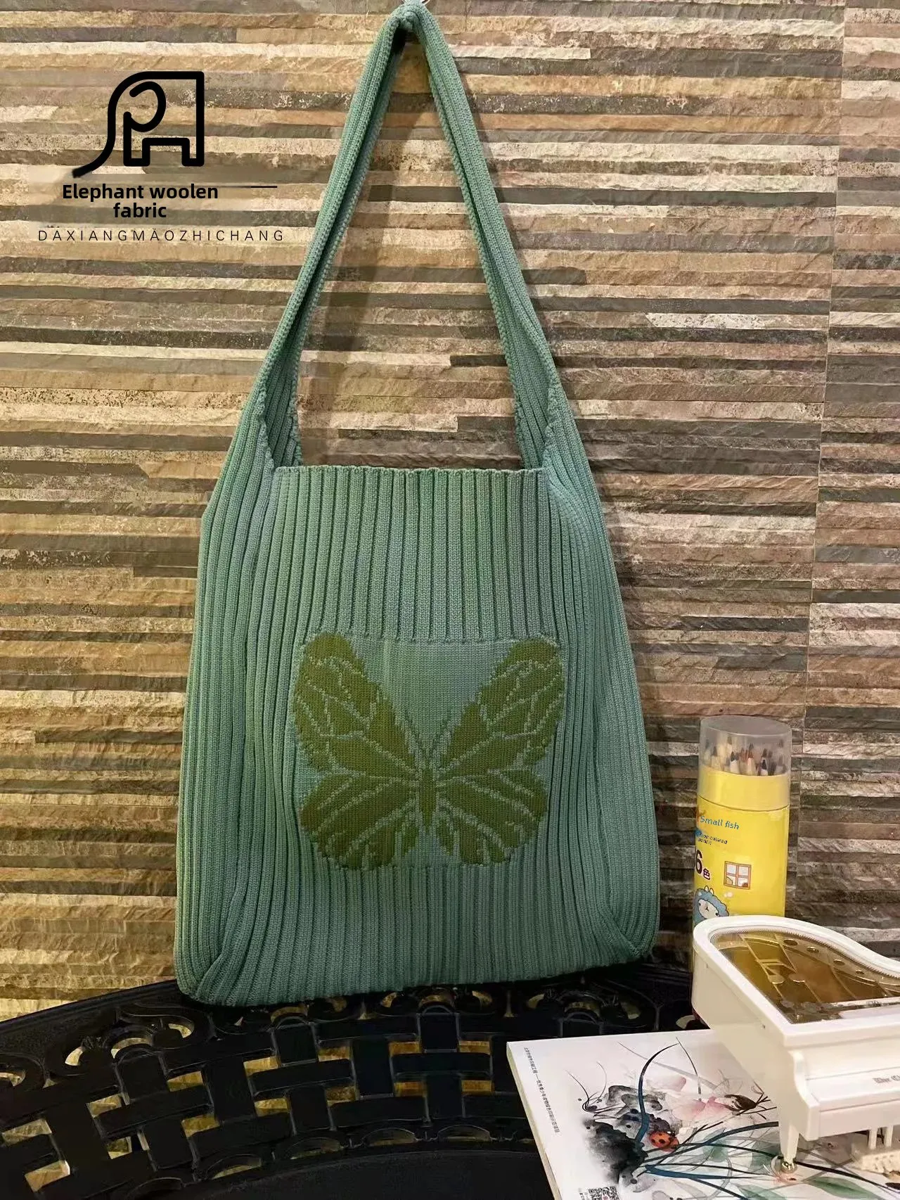 2023ebay女士編織包撞色蝴蝶設計氣質收納針織包袋