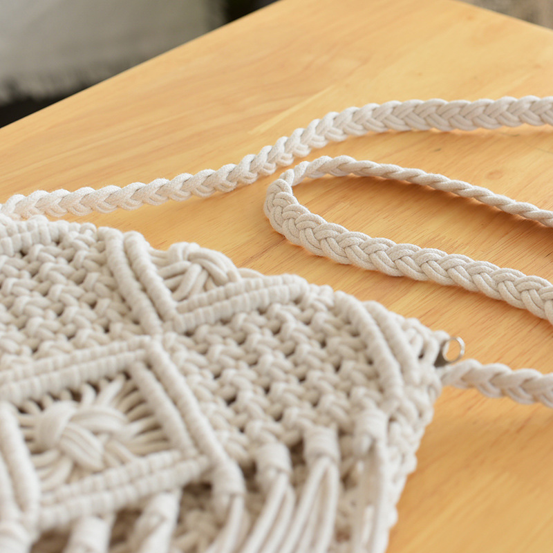 夏季韓國流蘇斜背草編包韓版復古單肩棉線編織包甜美清新繙蓋包