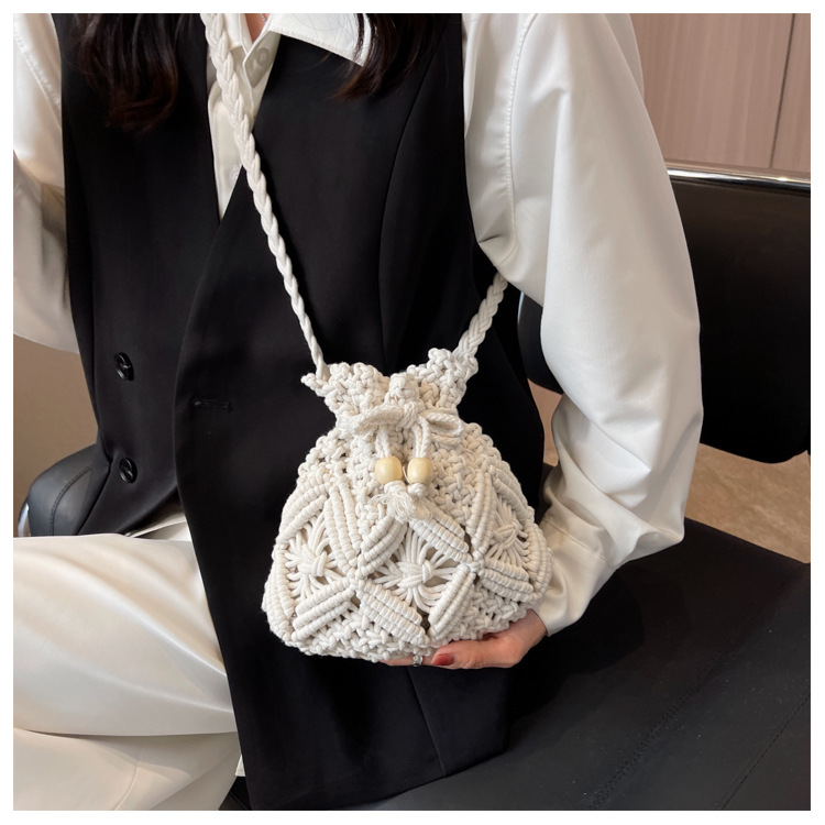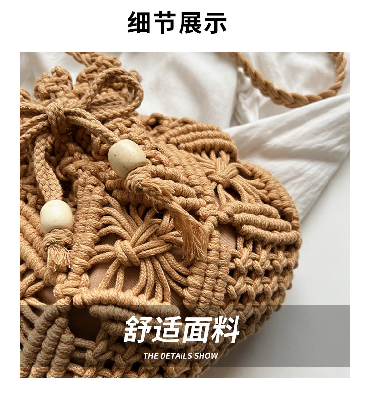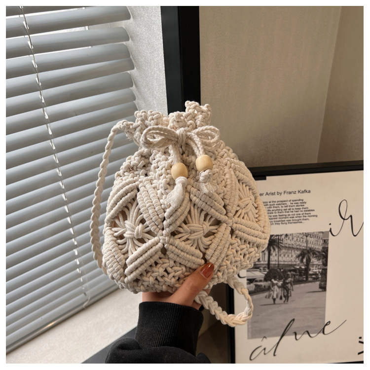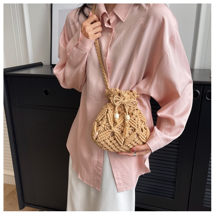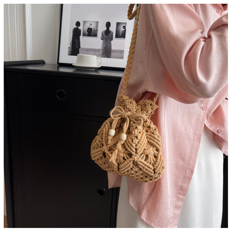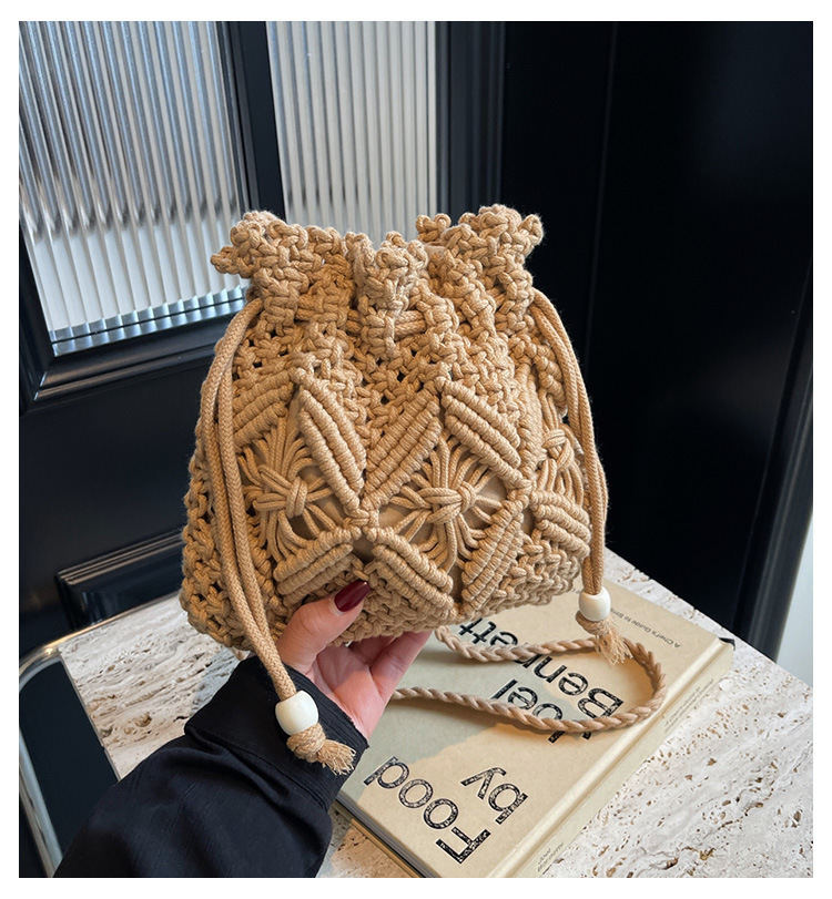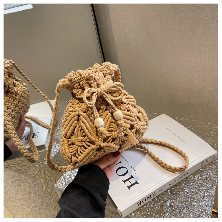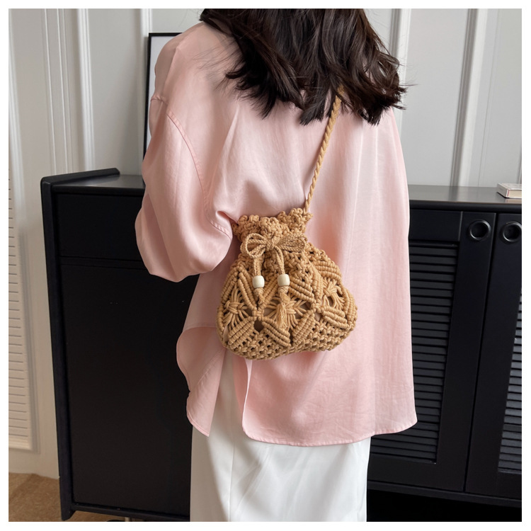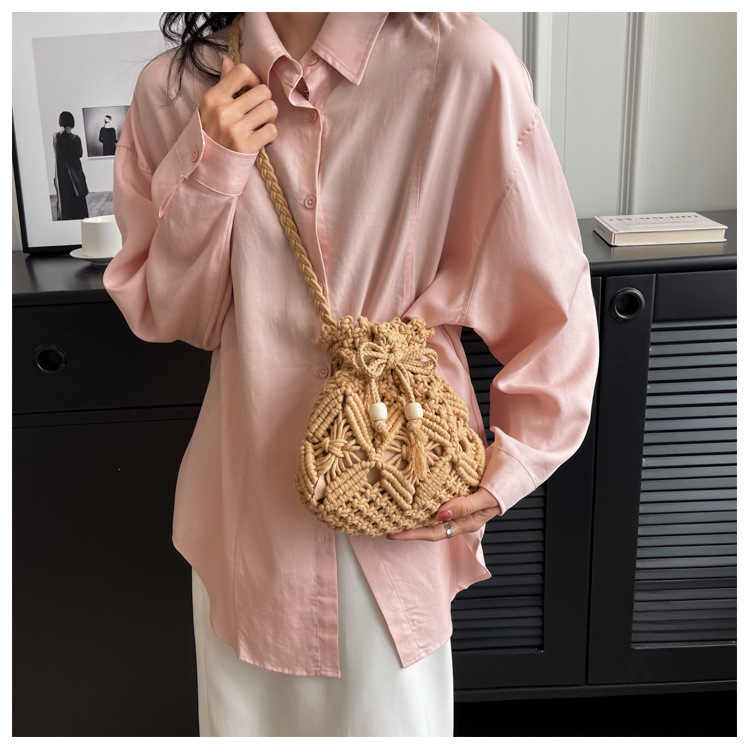 波西米亞民族風編織包包女2024新款休閒百搭斜背水桶包度假沙灘包