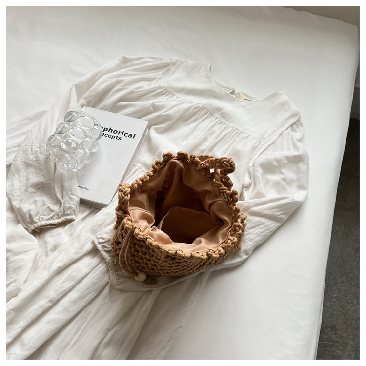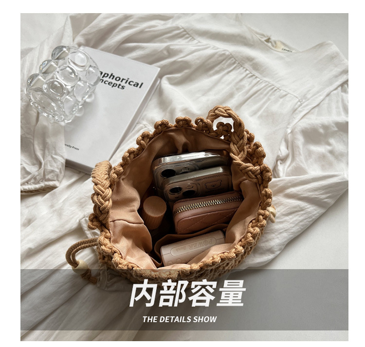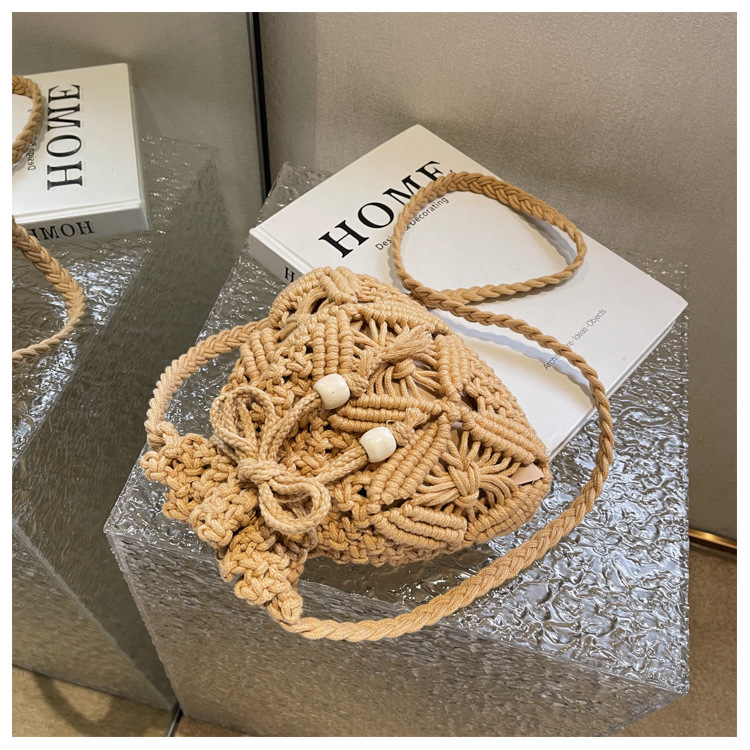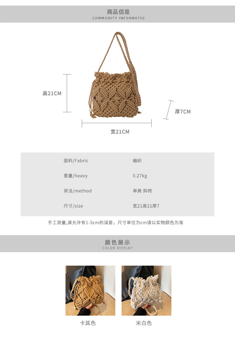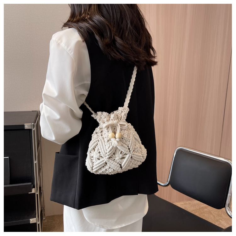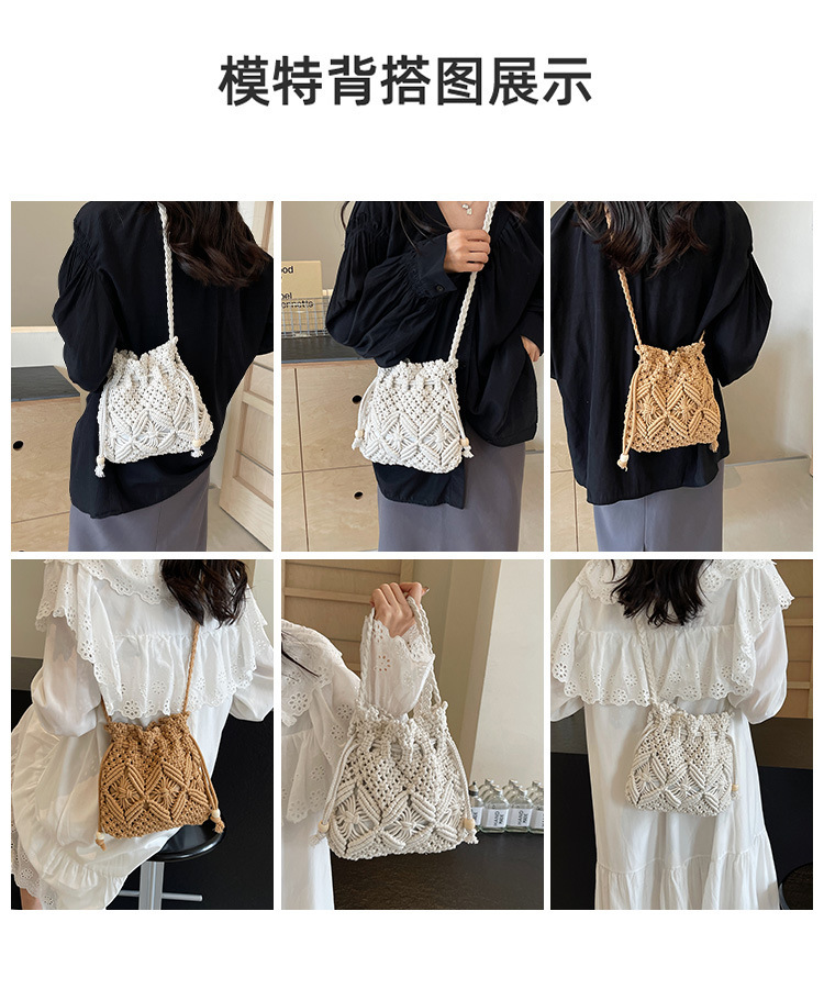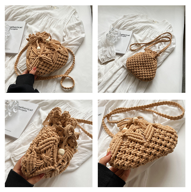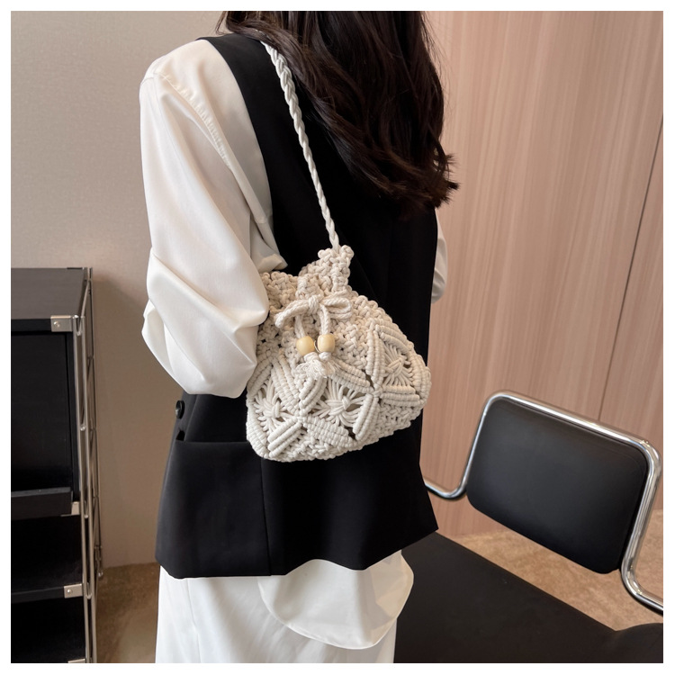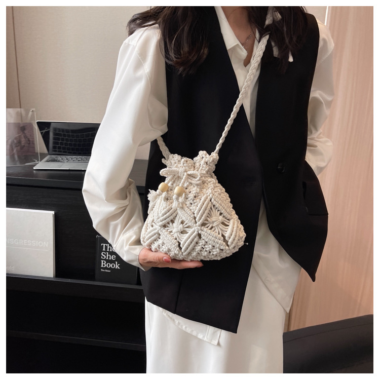 波西米亞民族風編織包包女2024新款休閒百搭斜背水桶包度假沙灘包