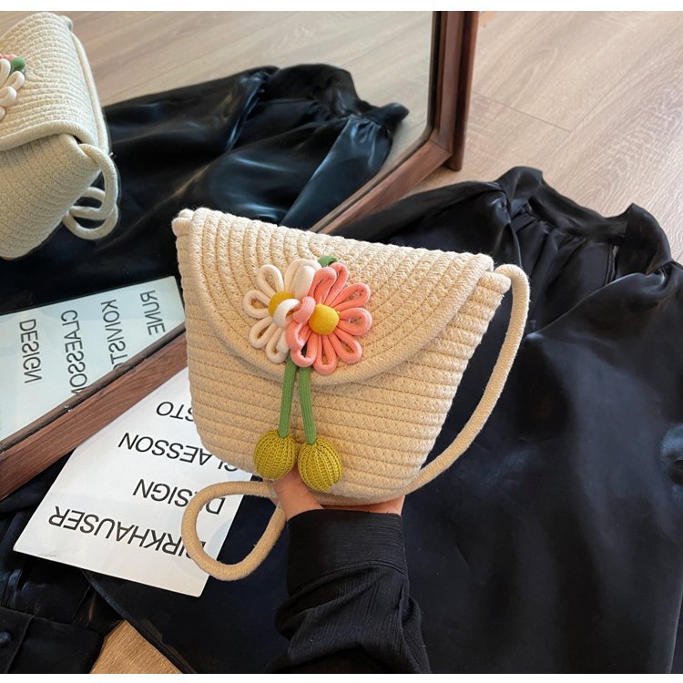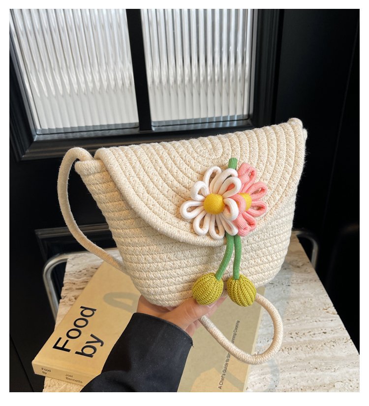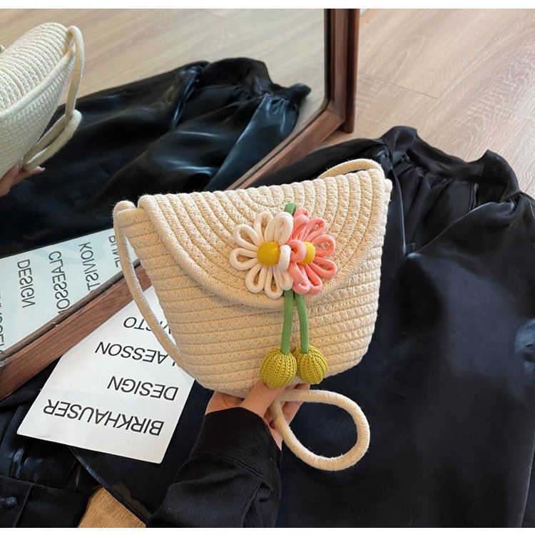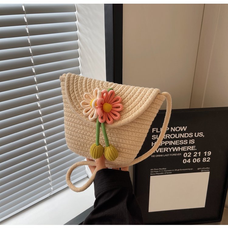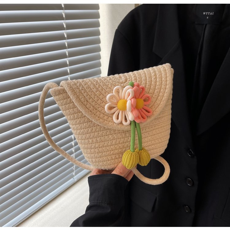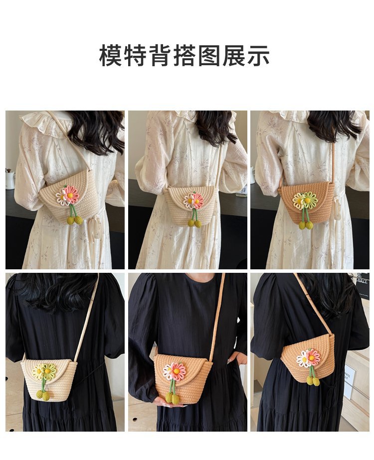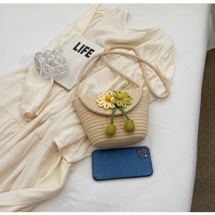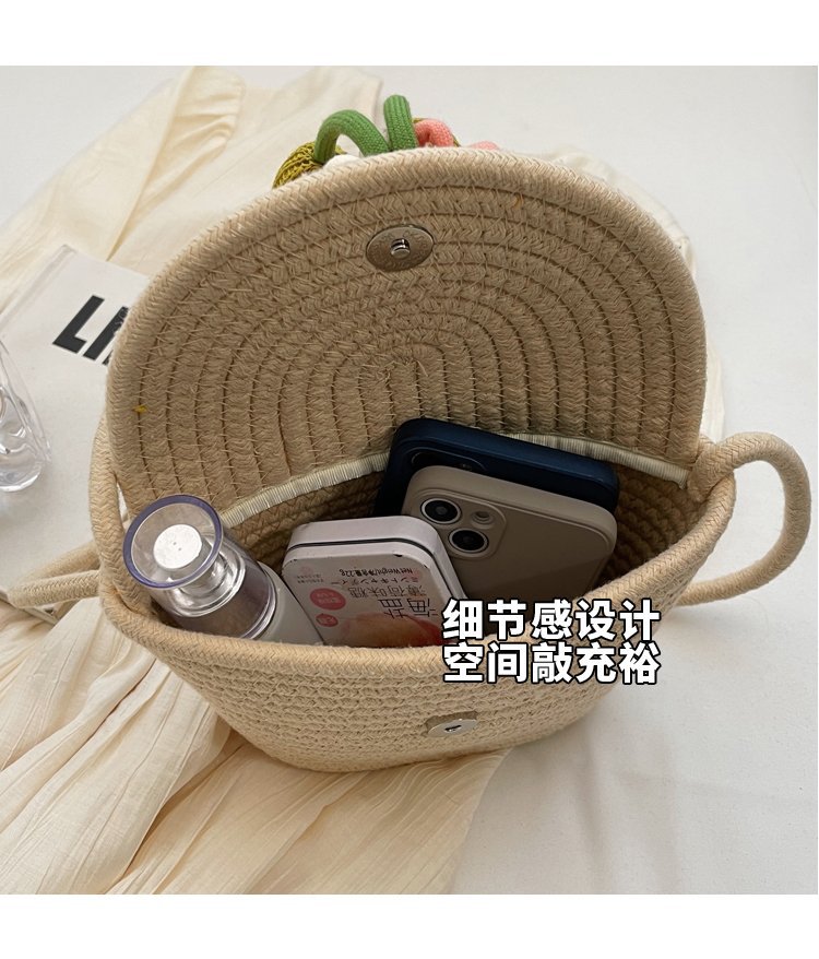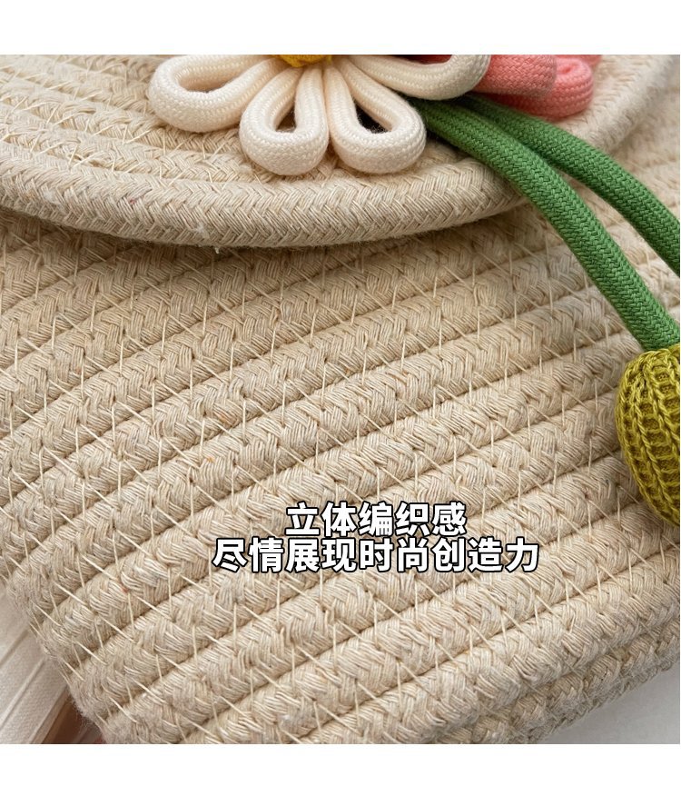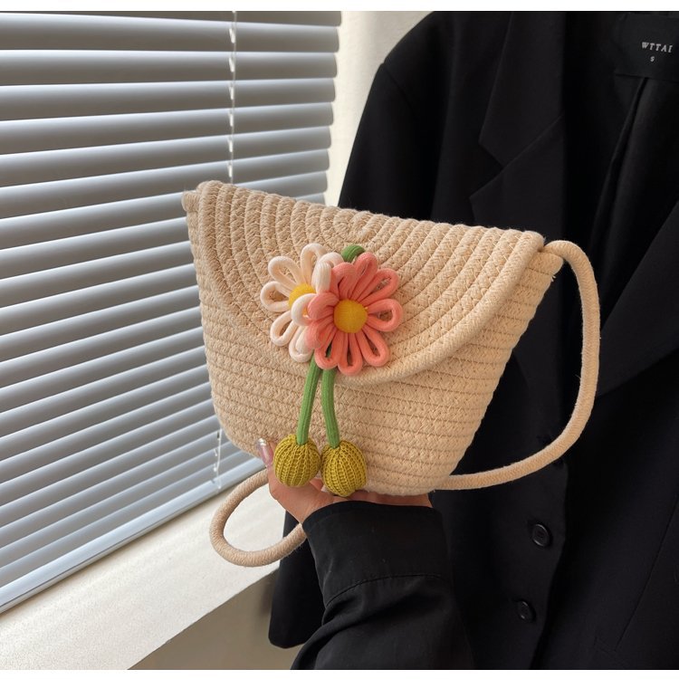 夏季新款彩色棉線編織包花朵單肩斜背迷你貝殼包沙灘度假時尚女包
