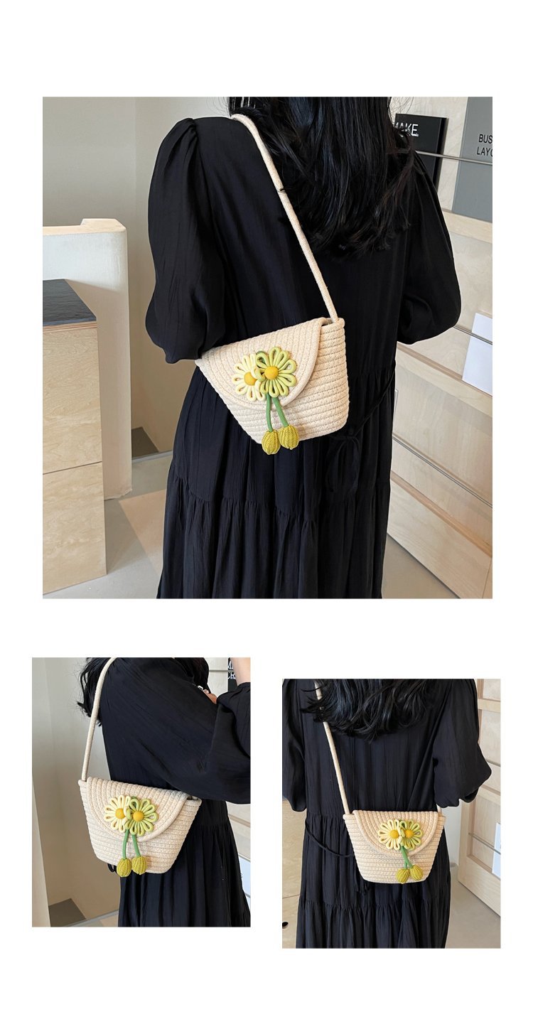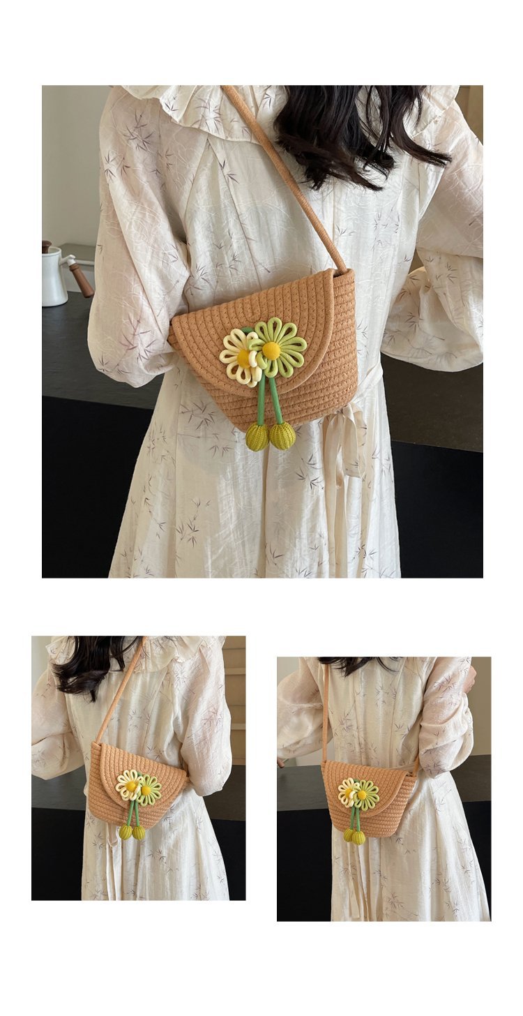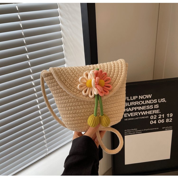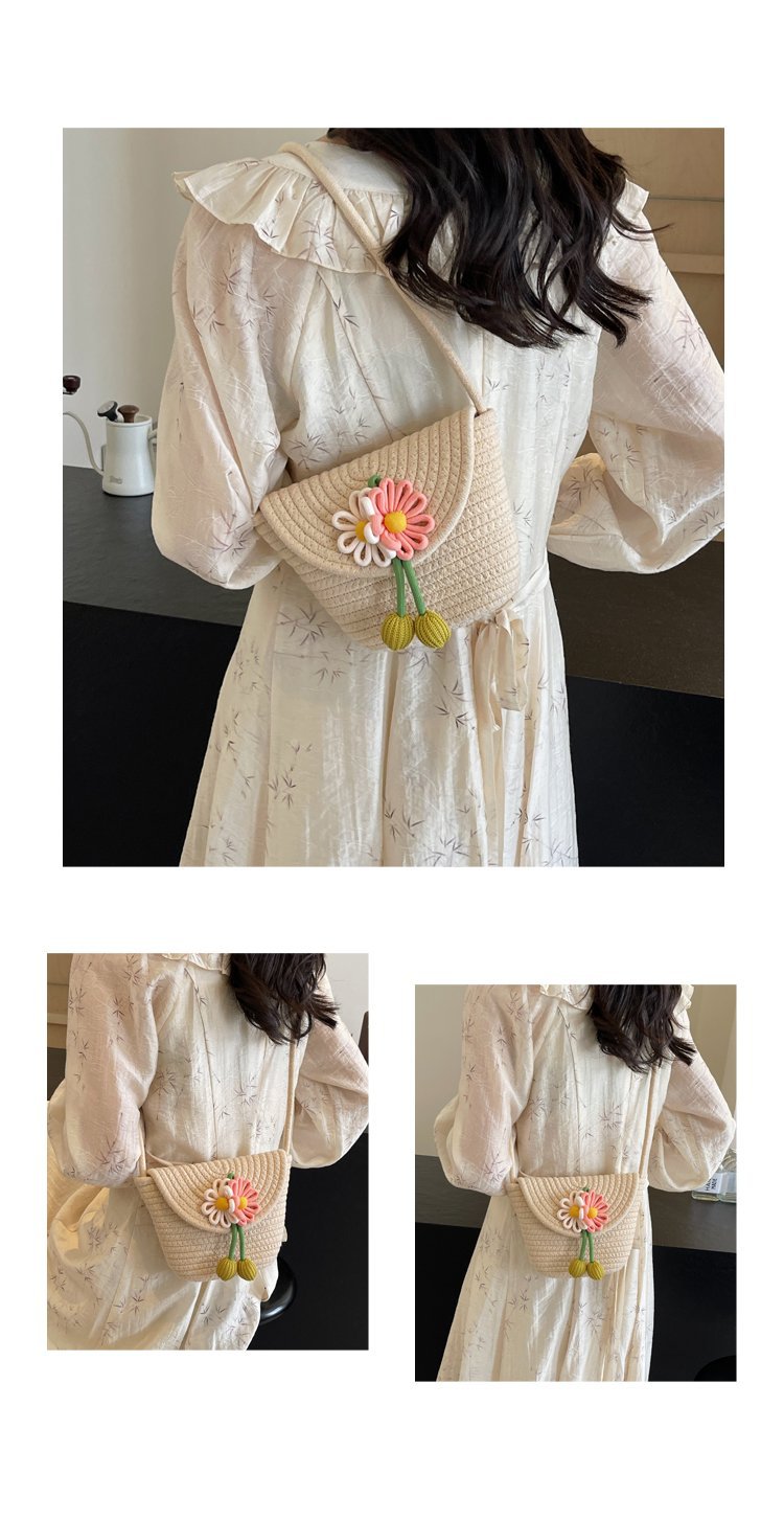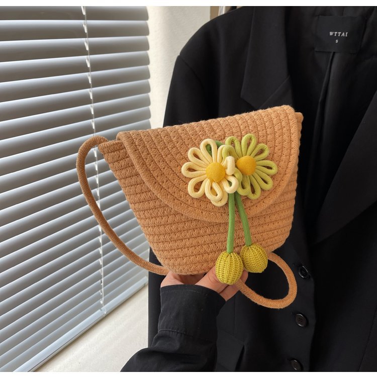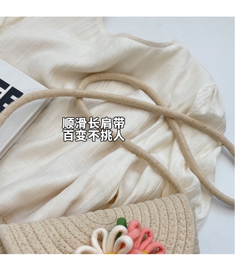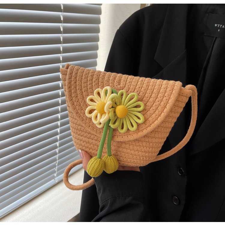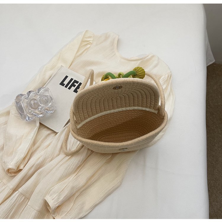 夏季新款彩色棉線編織包花朵單肩斜背迷你貝殼包沙灘度假時尚女包