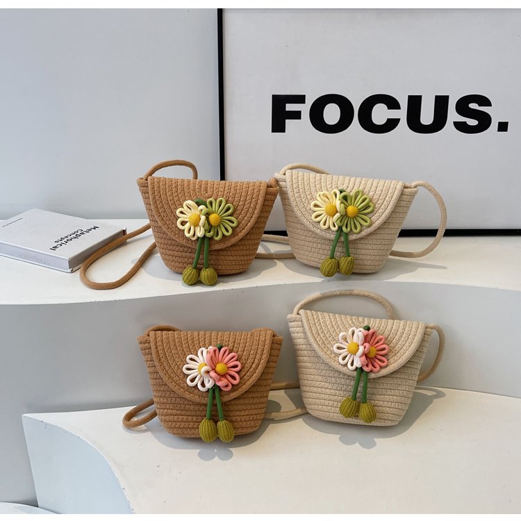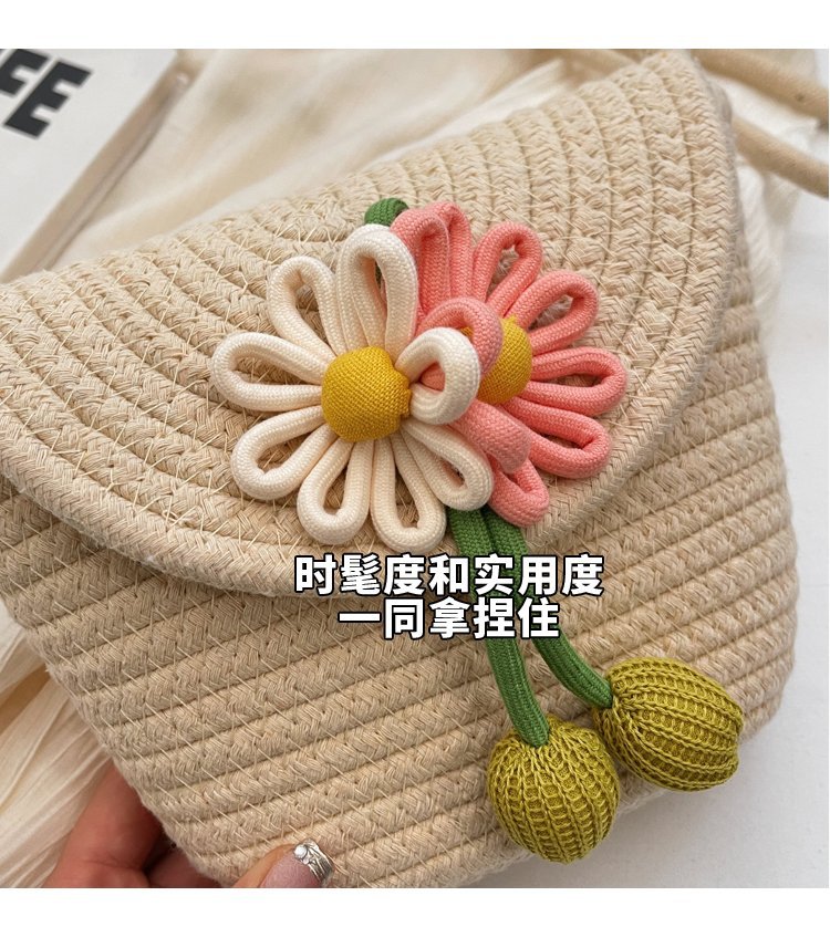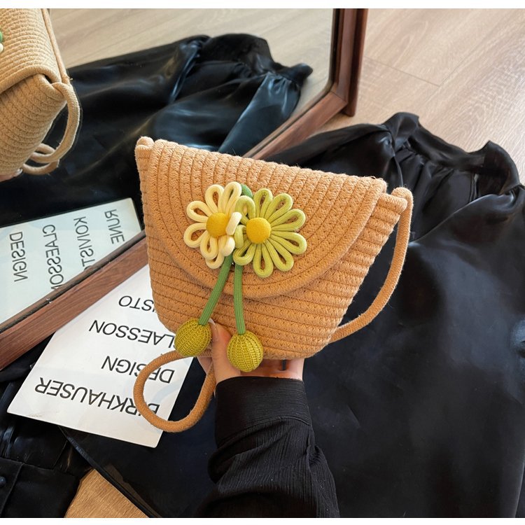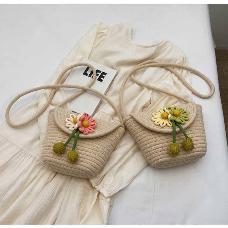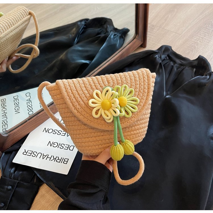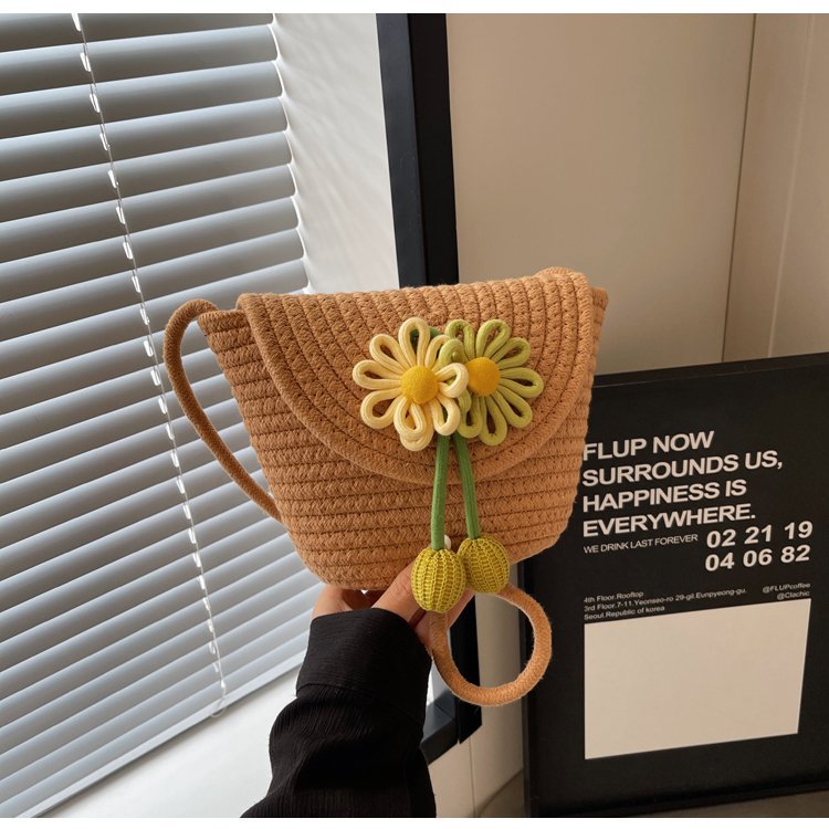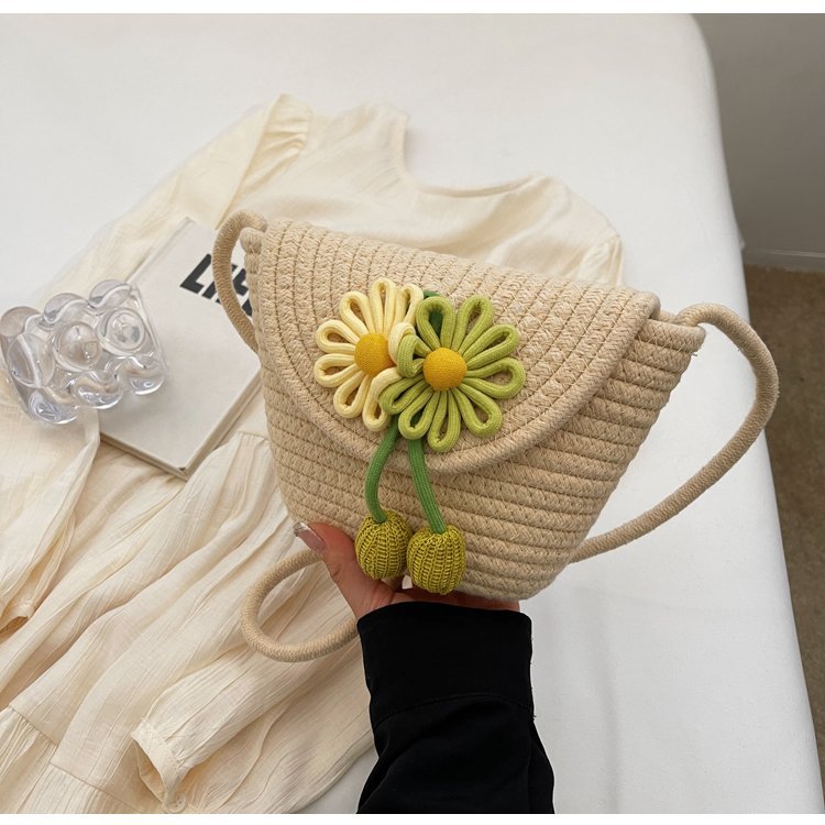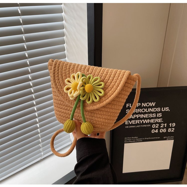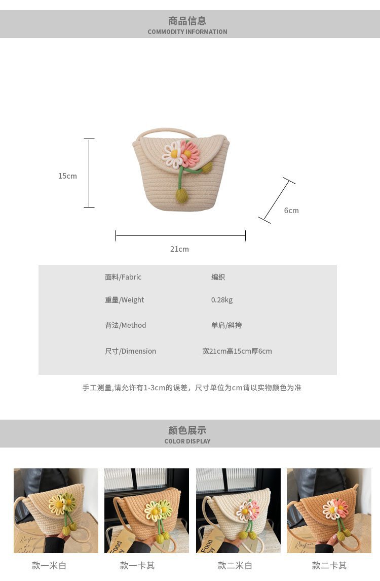 夏季新款彩色棉線編織包花朵單肩斜背迷你貝殼包沙灘度假時尚女包