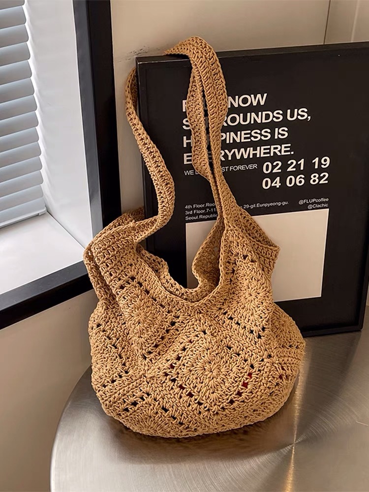 2024爆款小清新田園風文藝編織包單肩包手工編製軟包時尚草編包