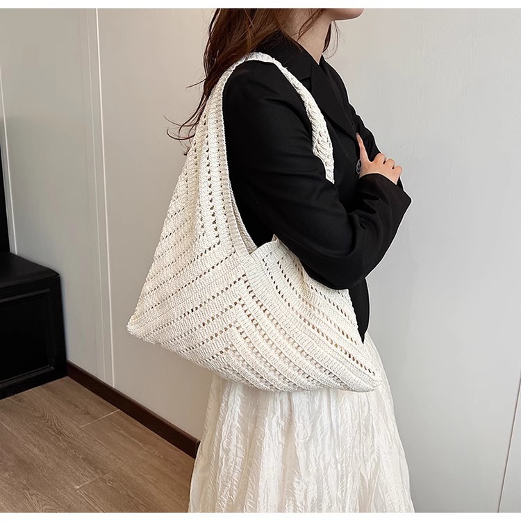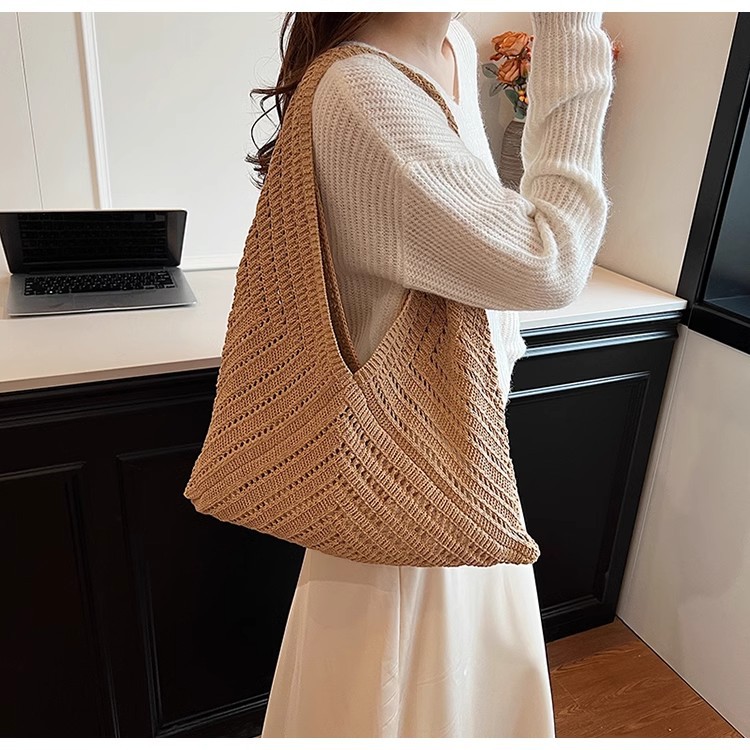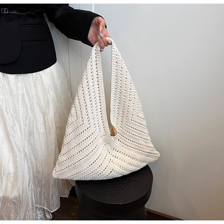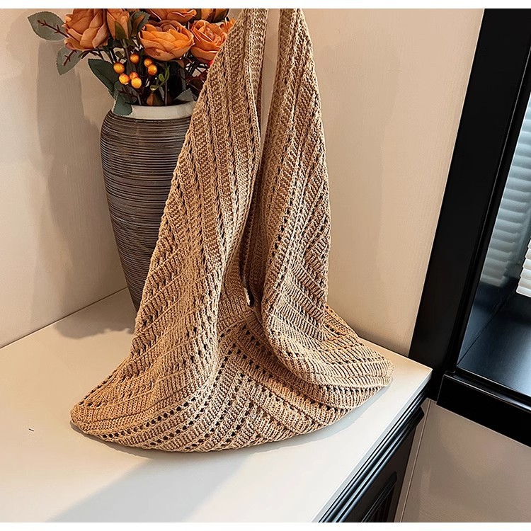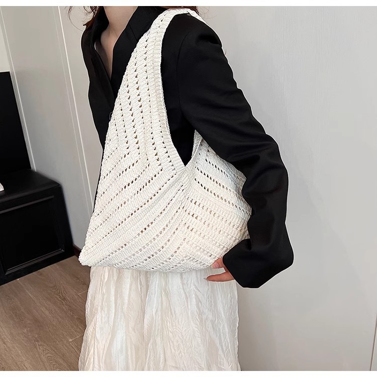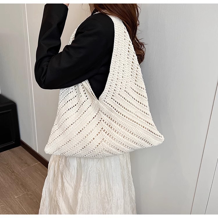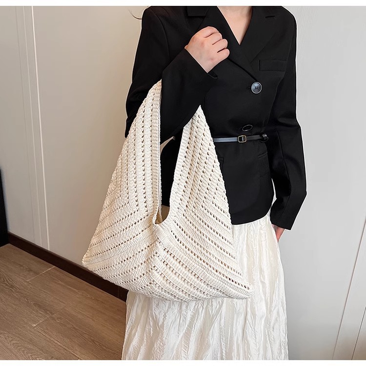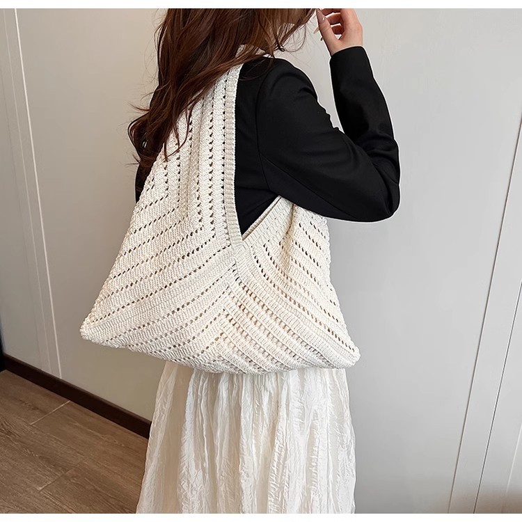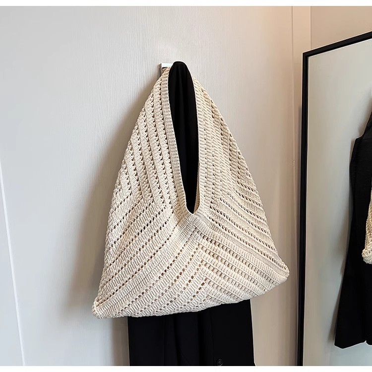 針織棉線鏤空編織包女2024新款女士單肩包海邊度假沙灘包