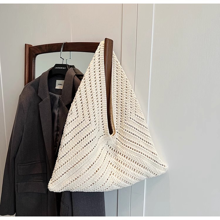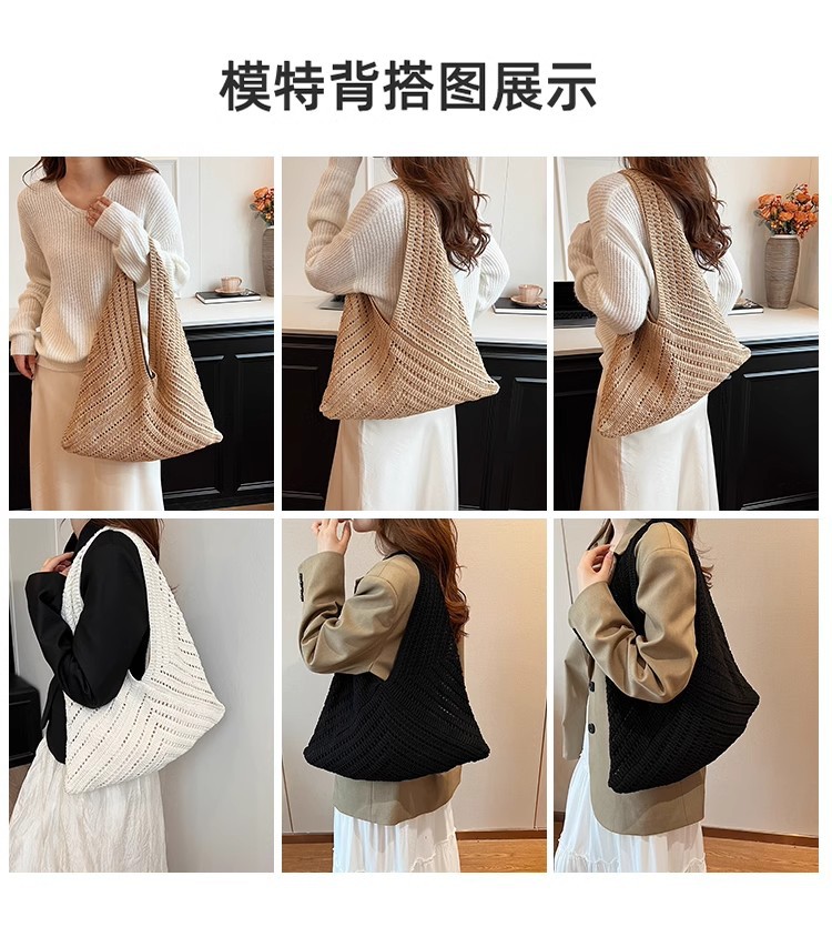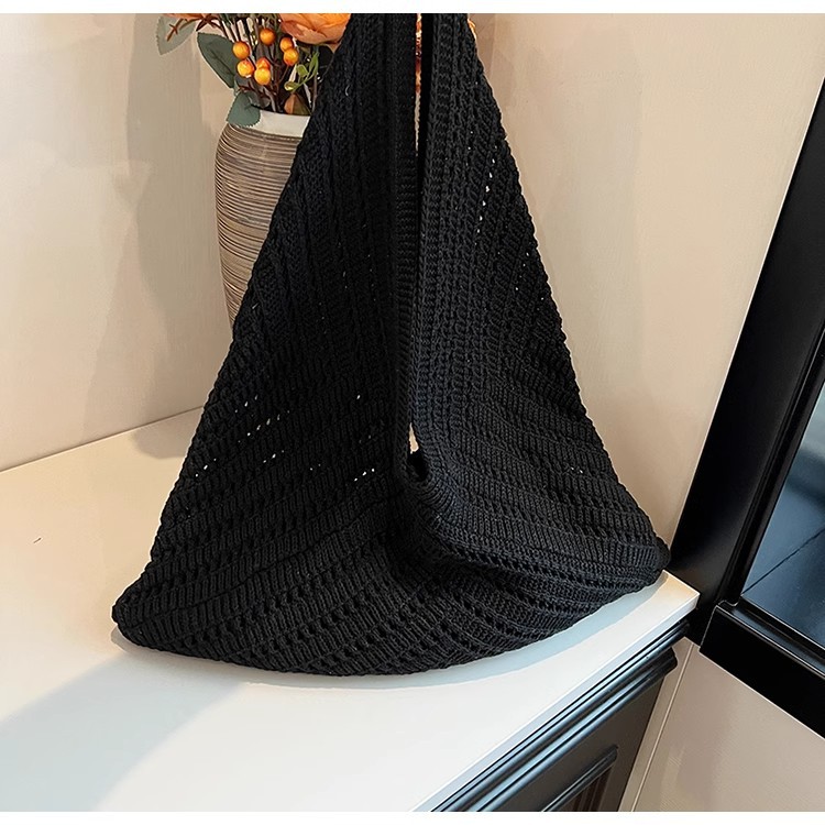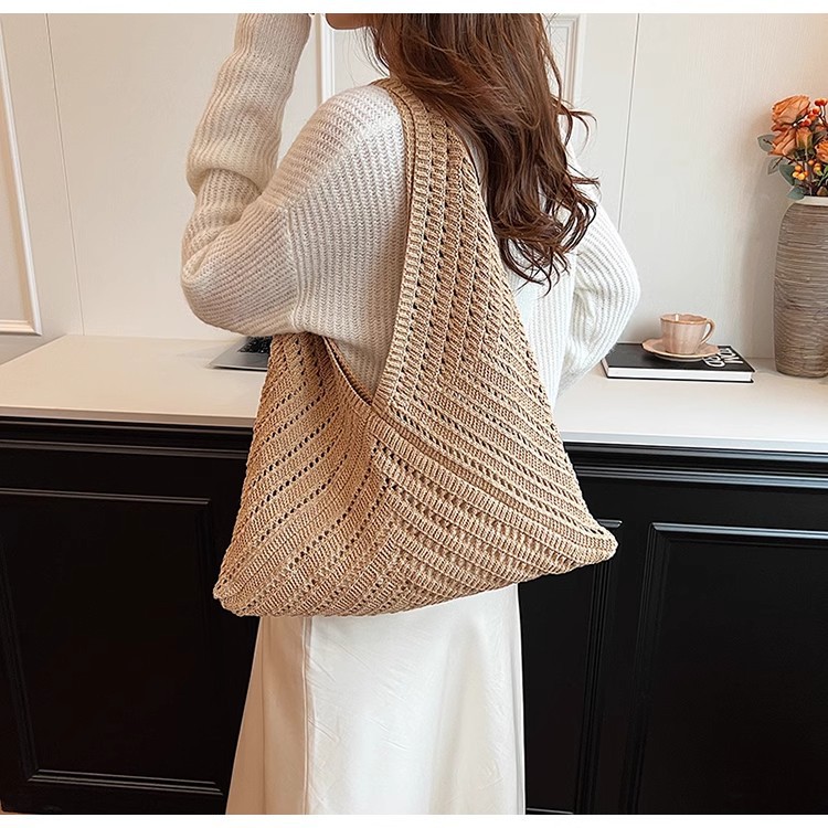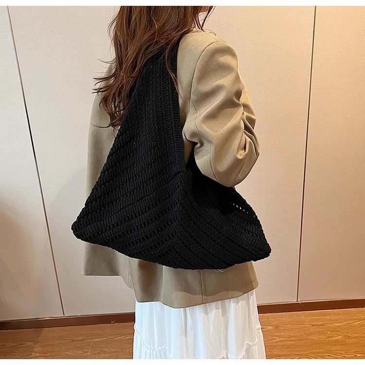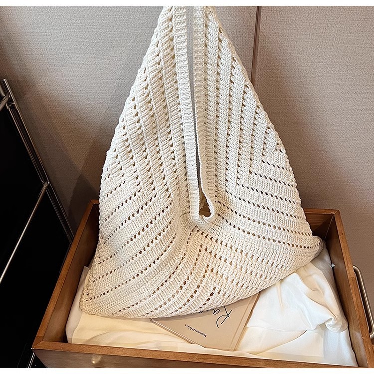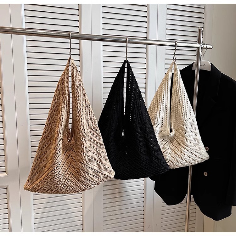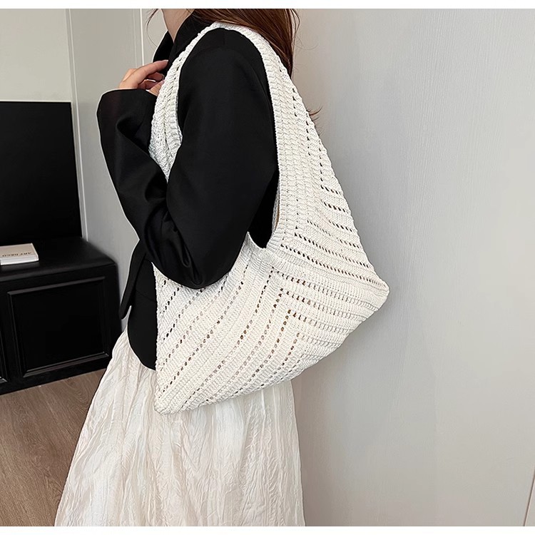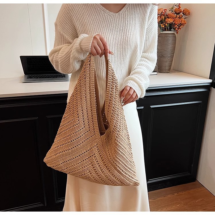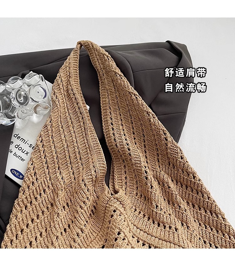 針織棉線鏤空編織包女2024新款女士單肩包海邊度假沙灘包