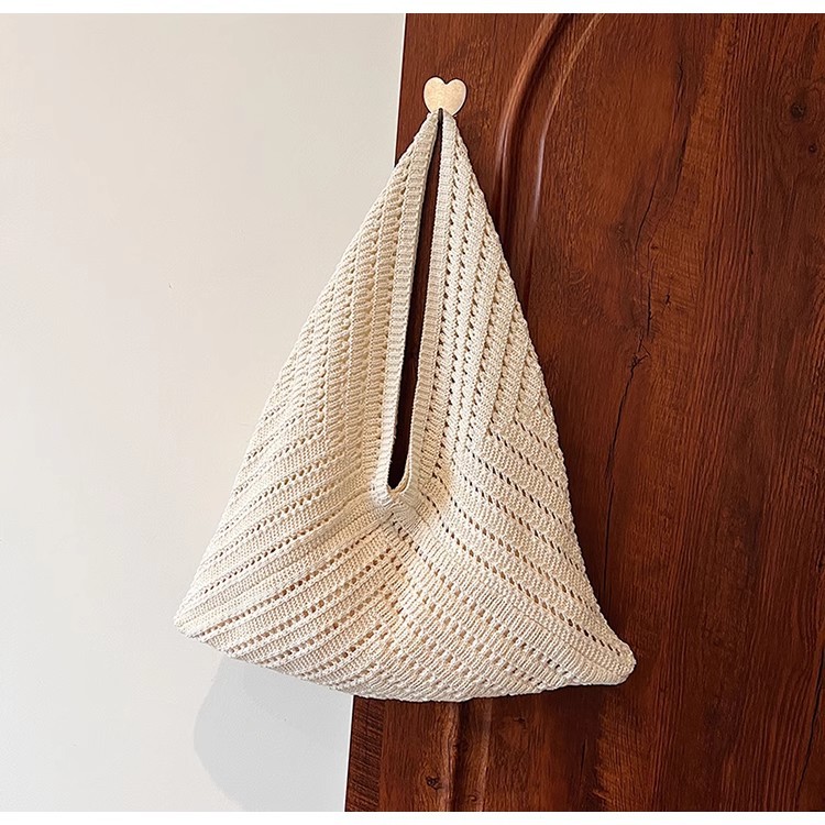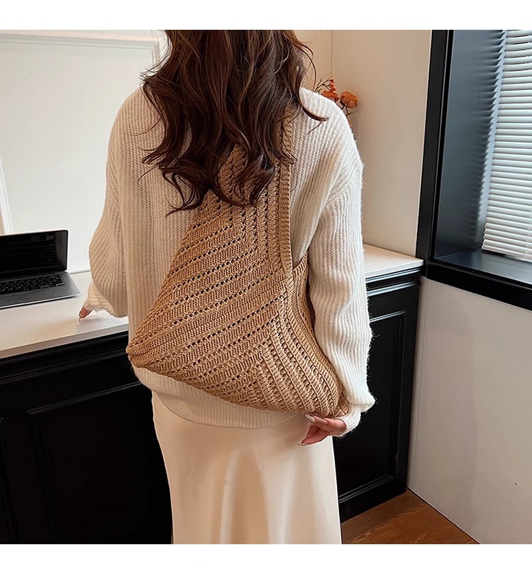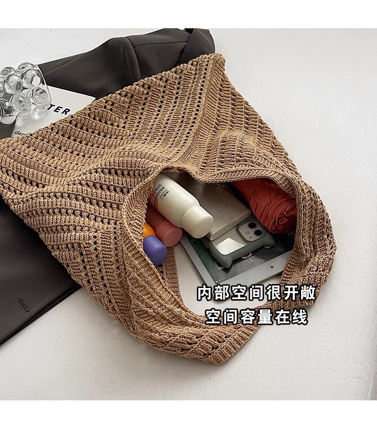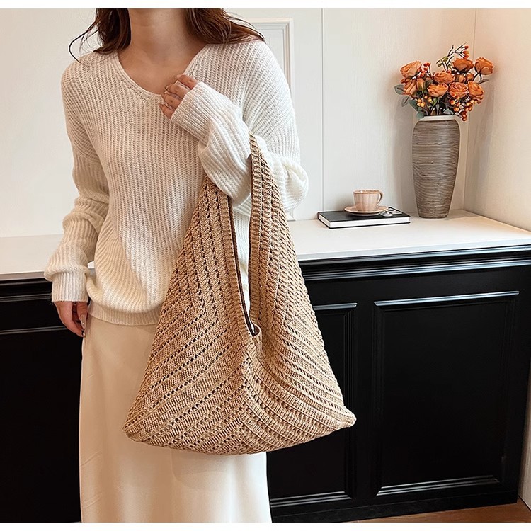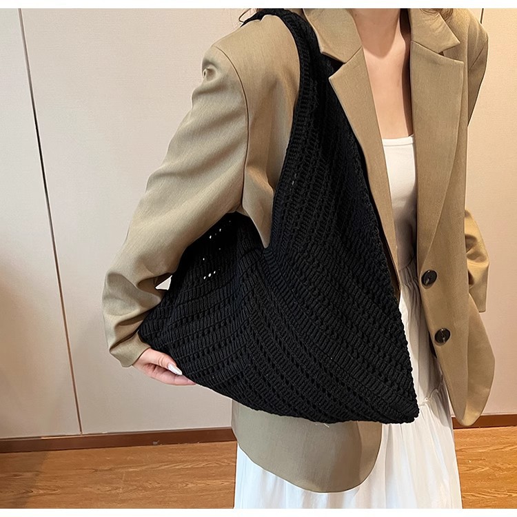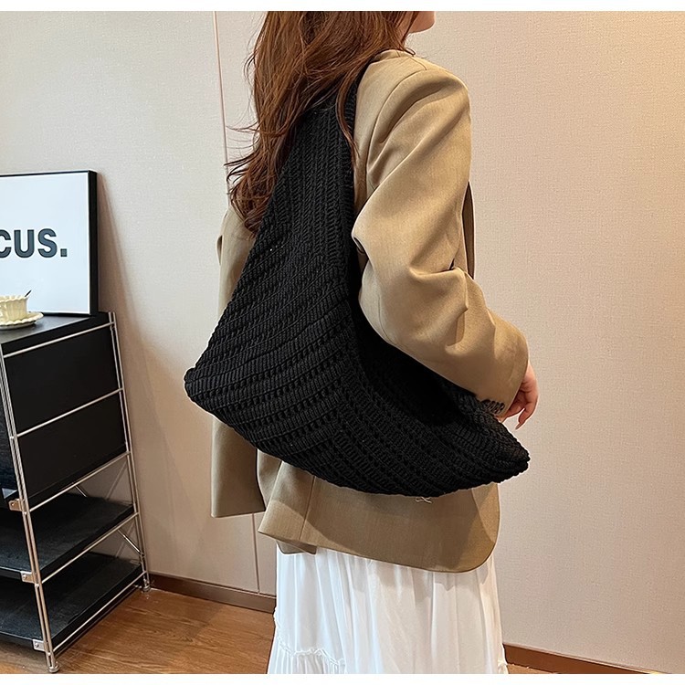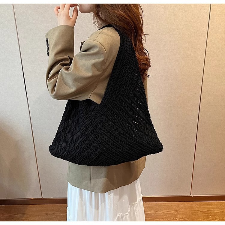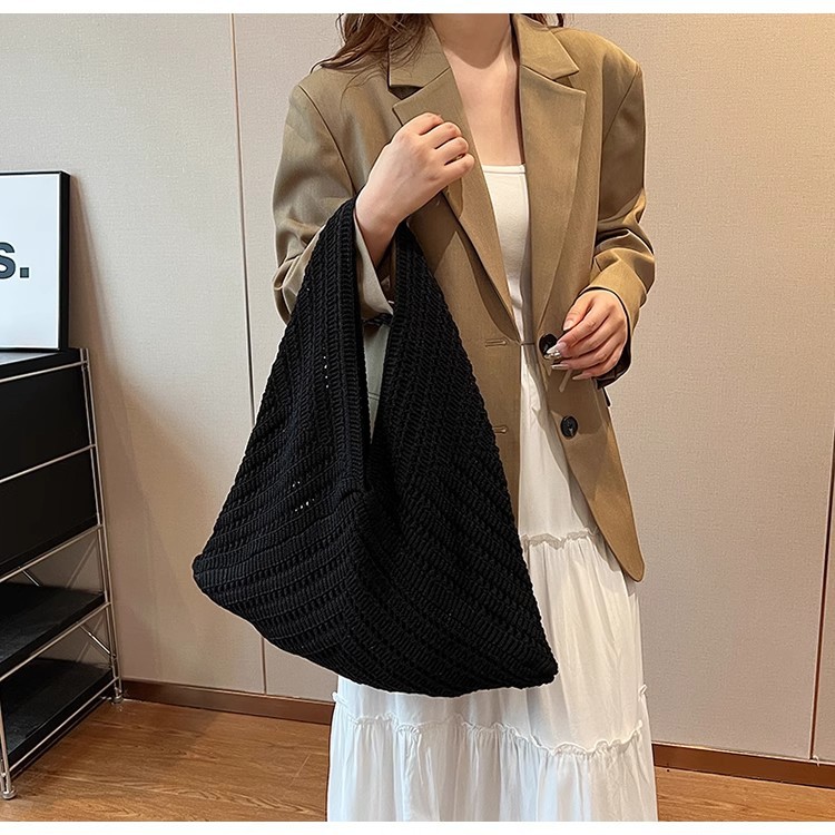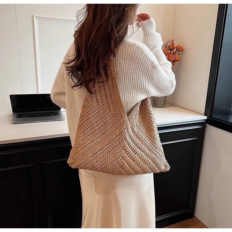 針織棉線鏤空編織包女2024新款女士單肩包海邊度假沙灘包
