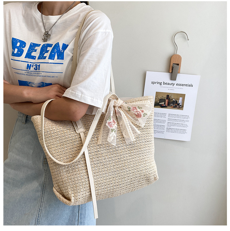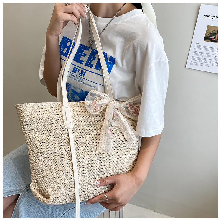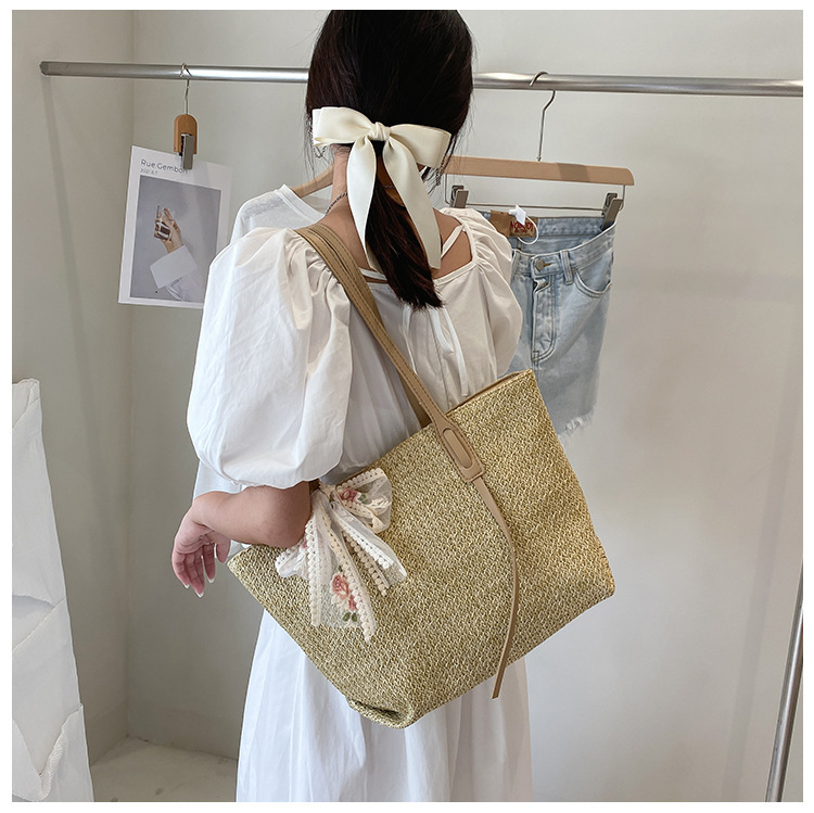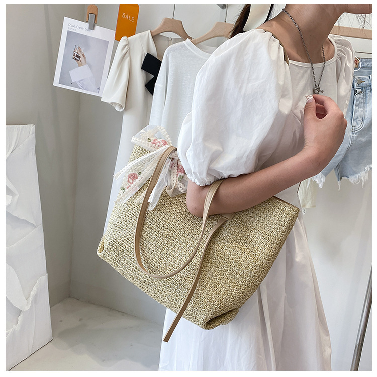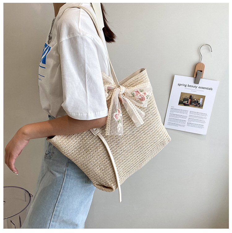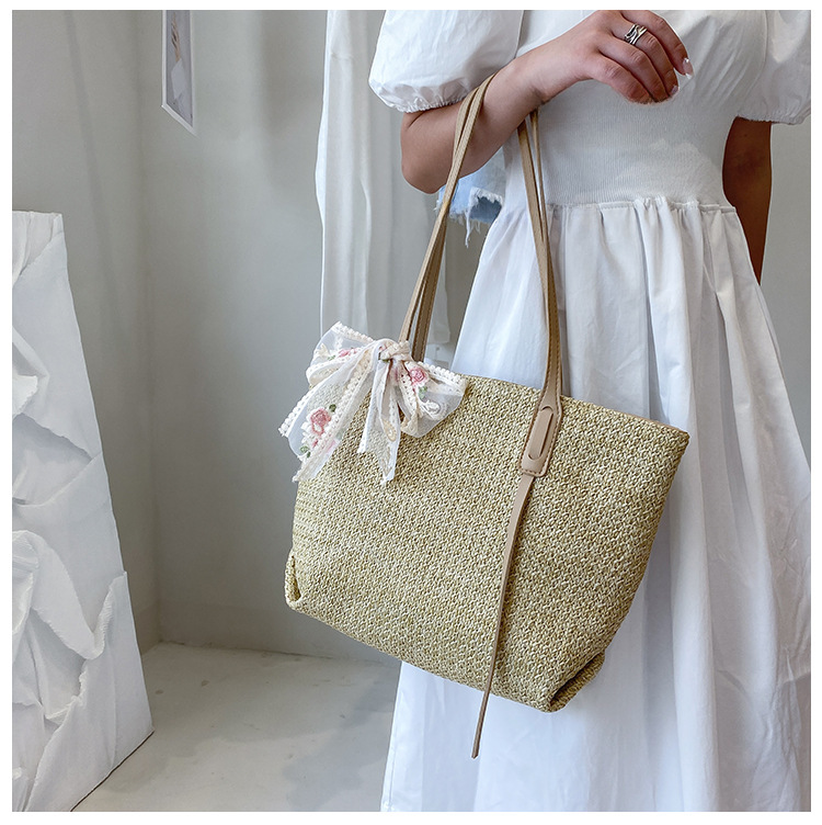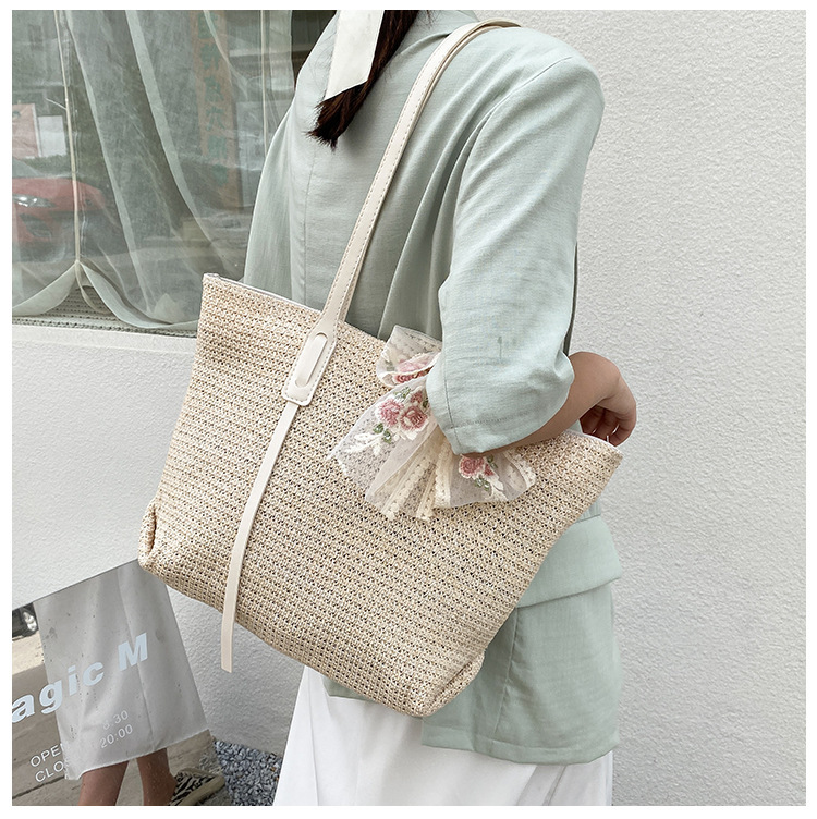 夏天草編大容量托特包2021新款日系簡約小清新編織包大學生單肩包