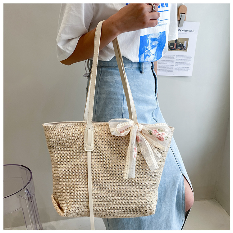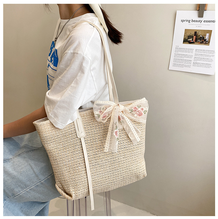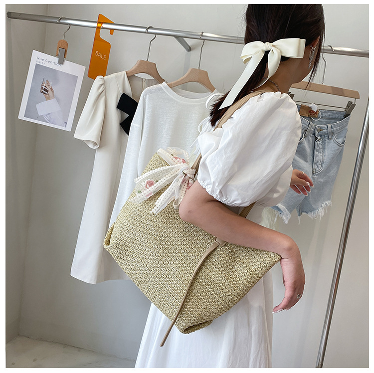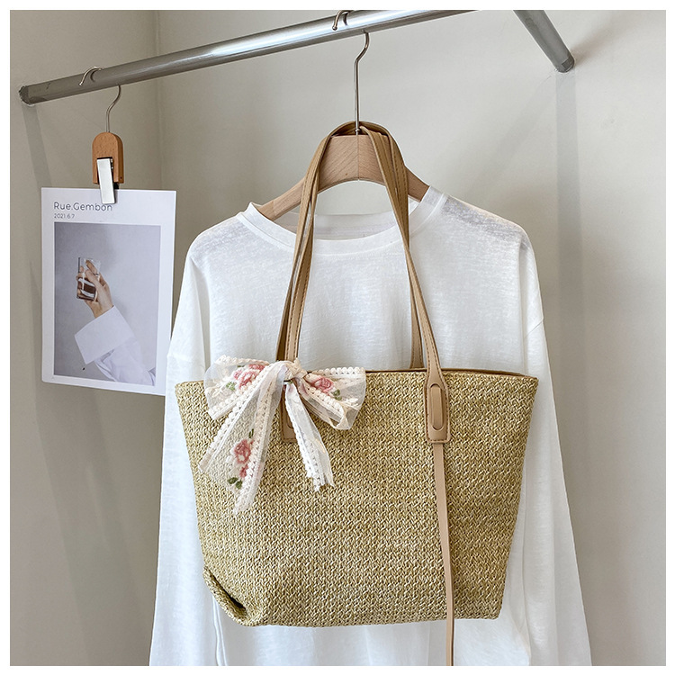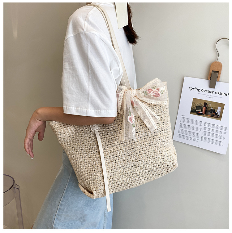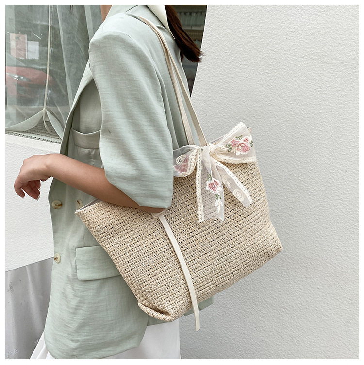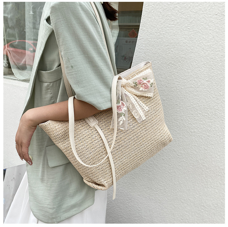 夏天草編大容量托特包2021新款日系簡約小清新編織包大學生單肩包