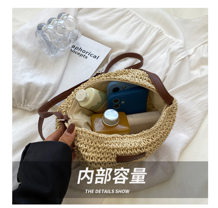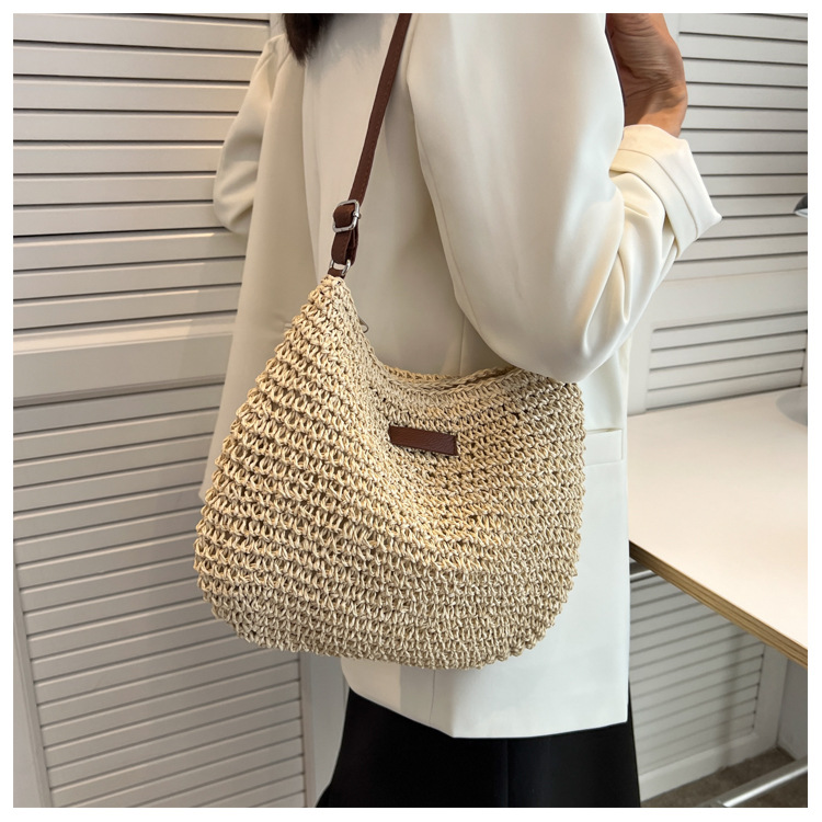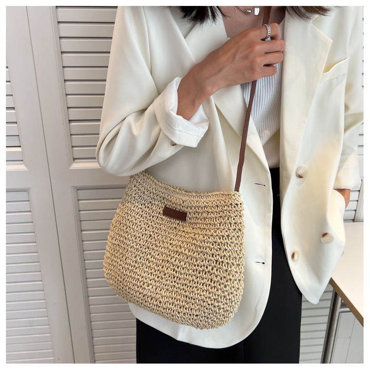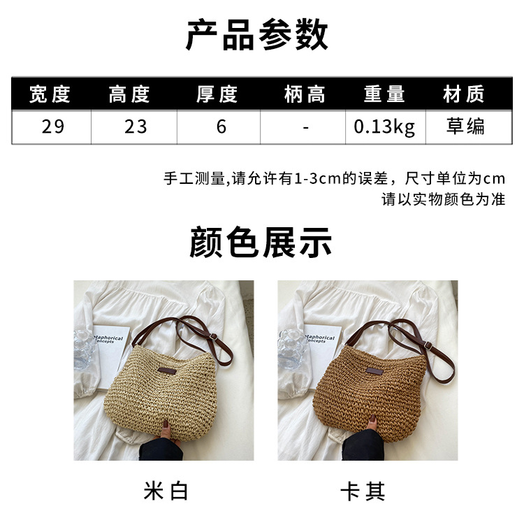 草編單肩大容量斜背草包女夏帆布袋海邊度假沙灘編織包包草編包