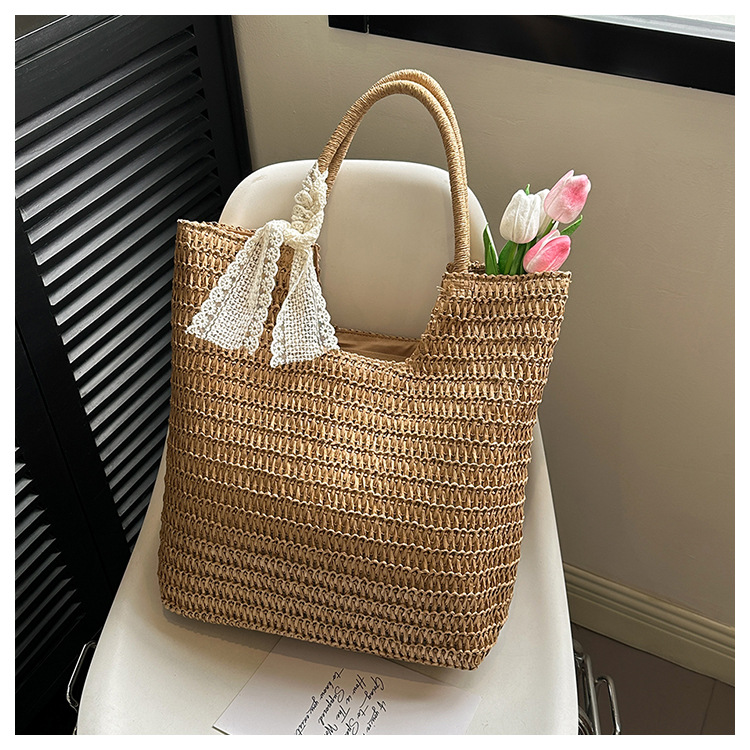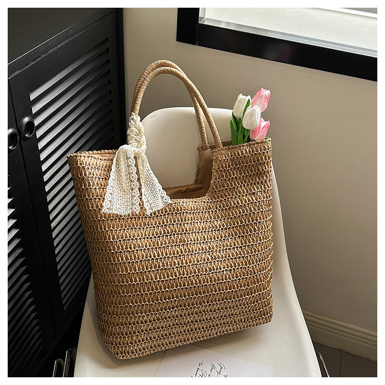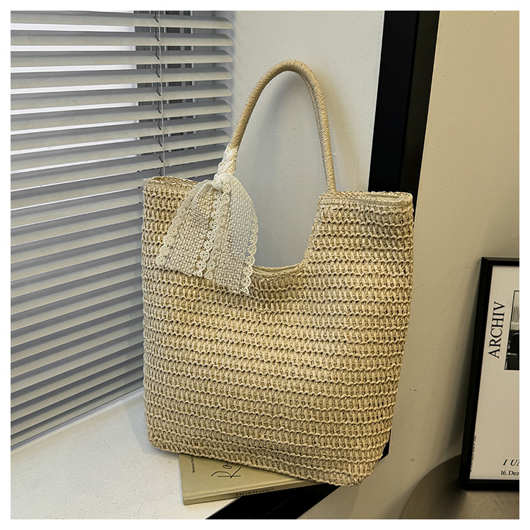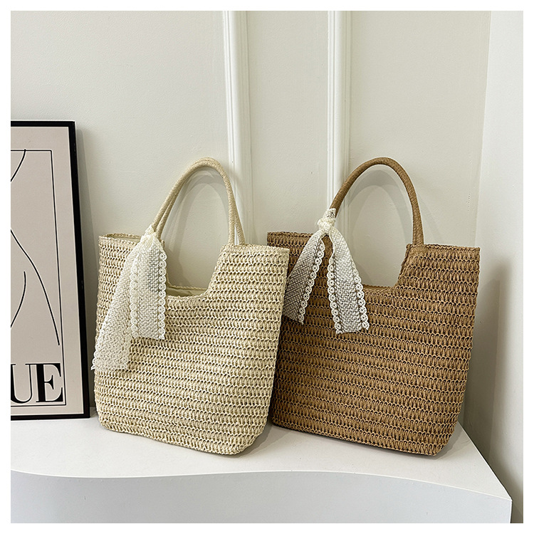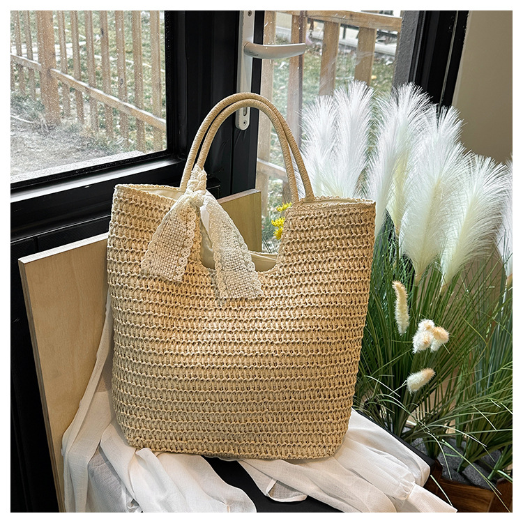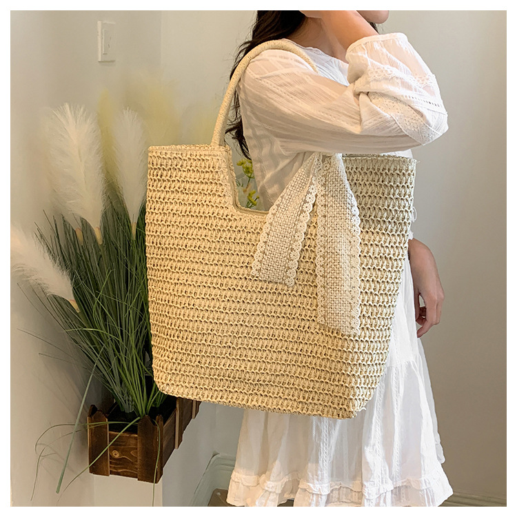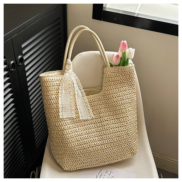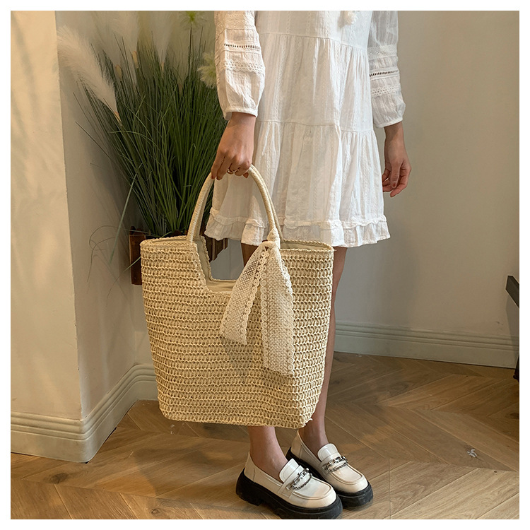 海邊沙灘草編包包女夏季新款時尚大容量單肩托特包休閒編織包
