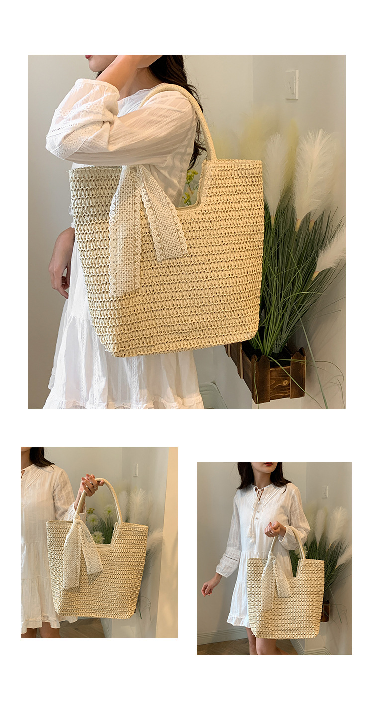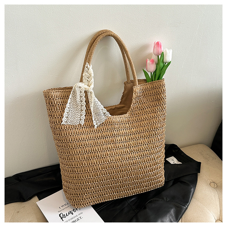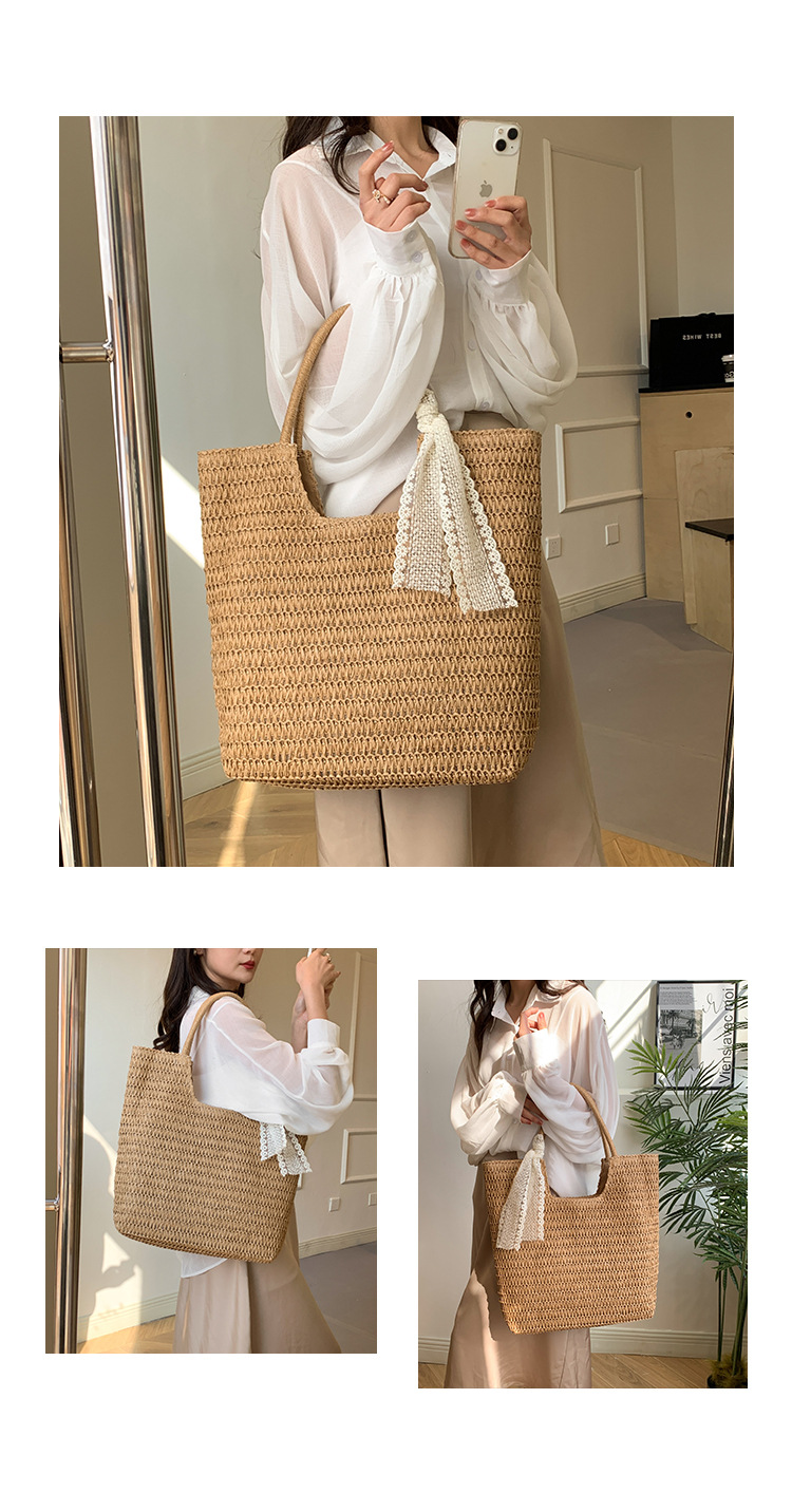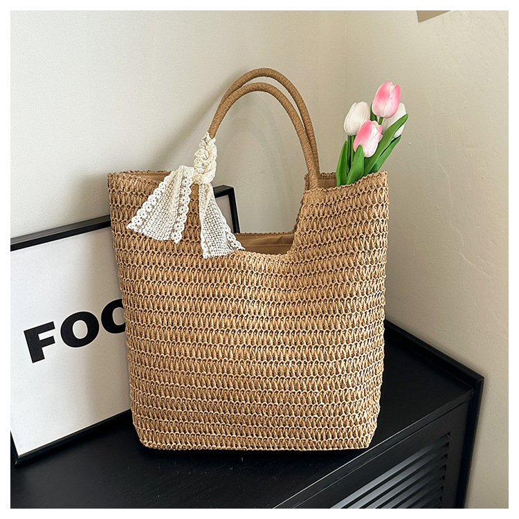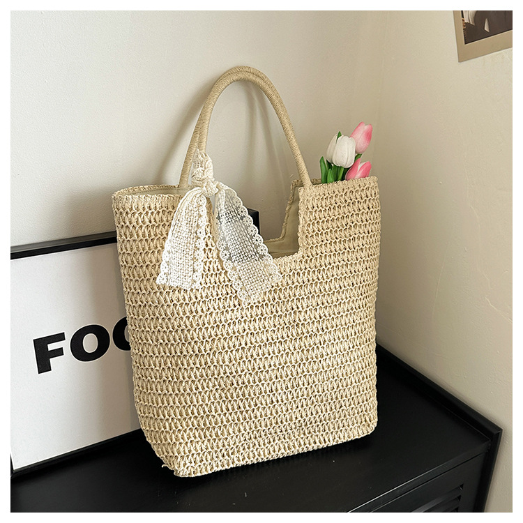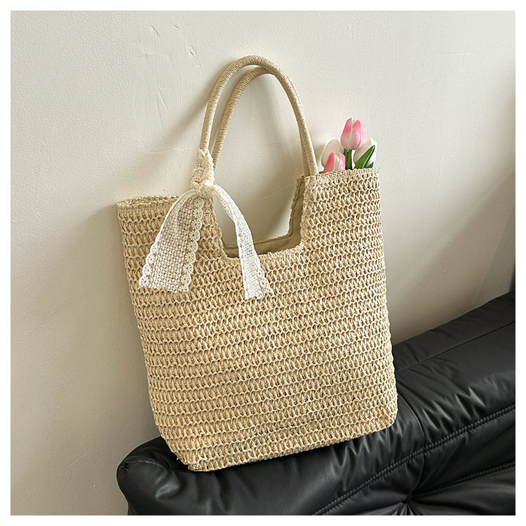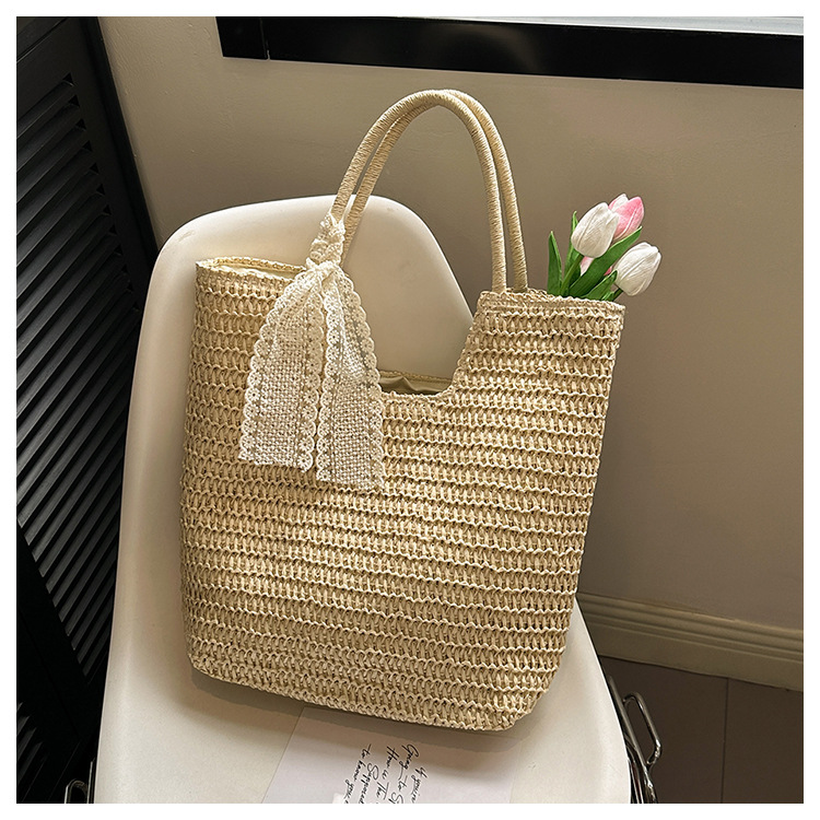 海邊沙灘草編包包女夏季新款時尚大容量單肩托特包休閒編織包