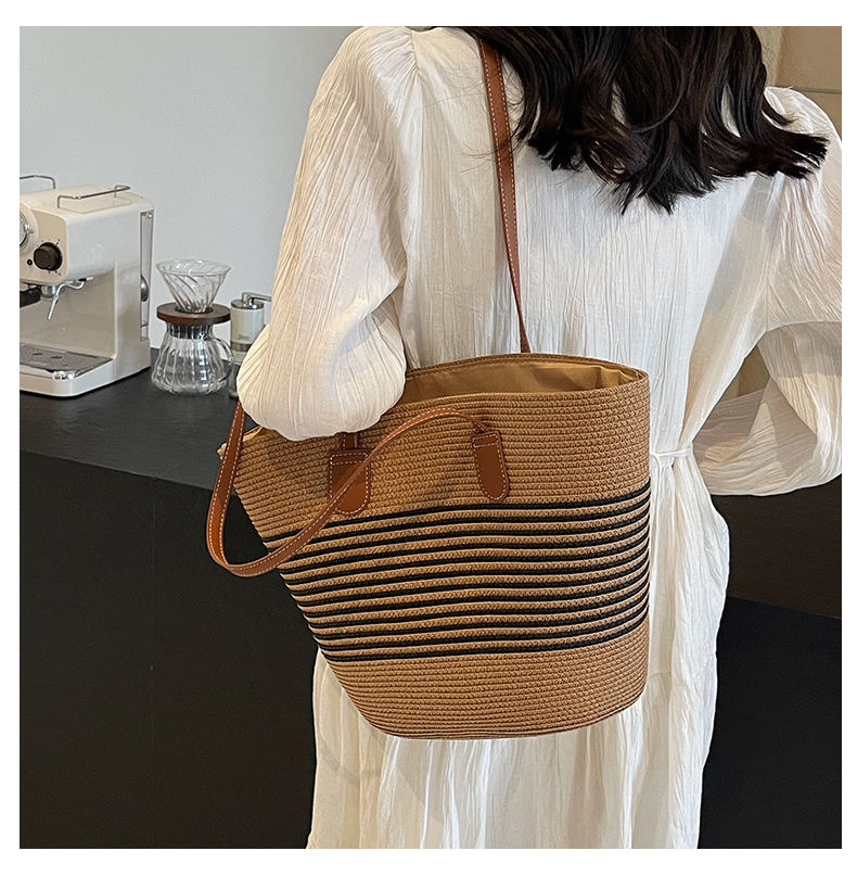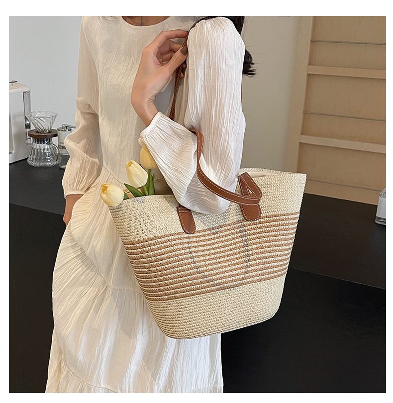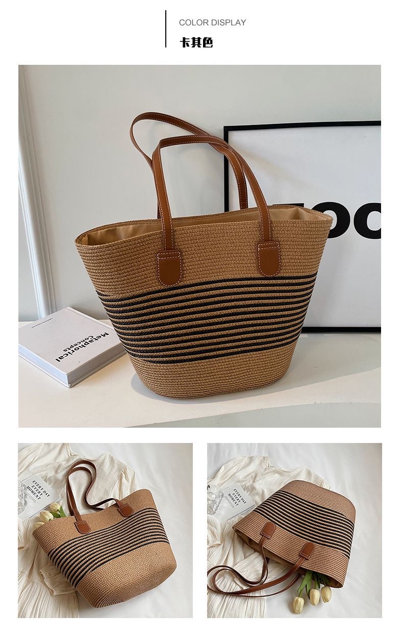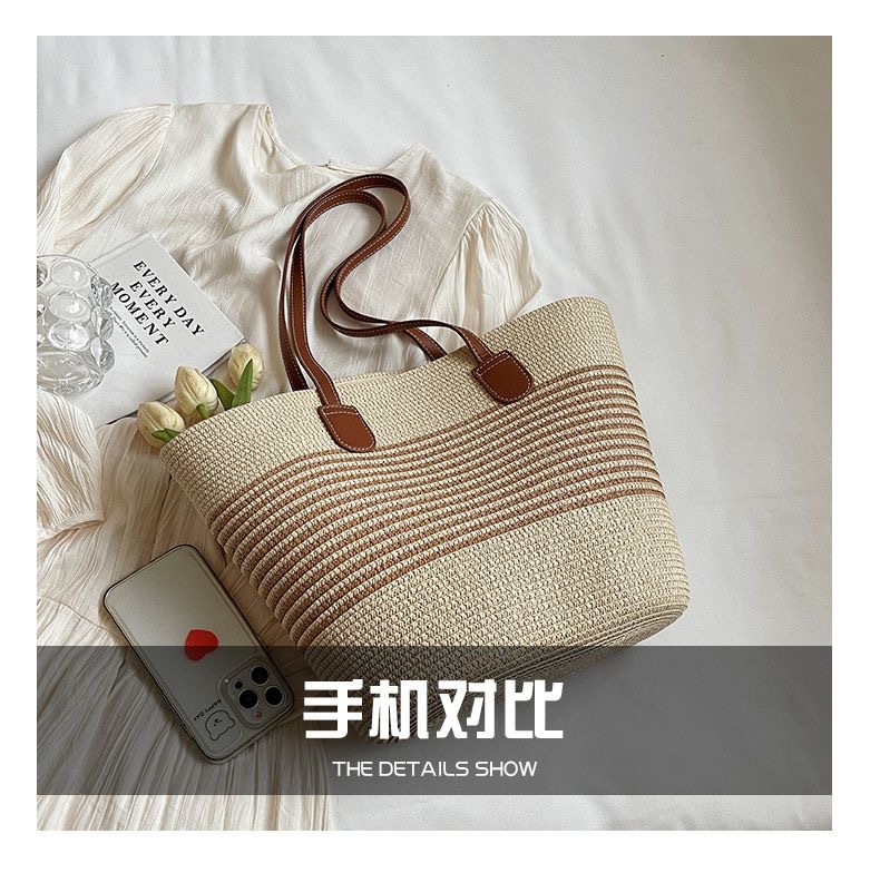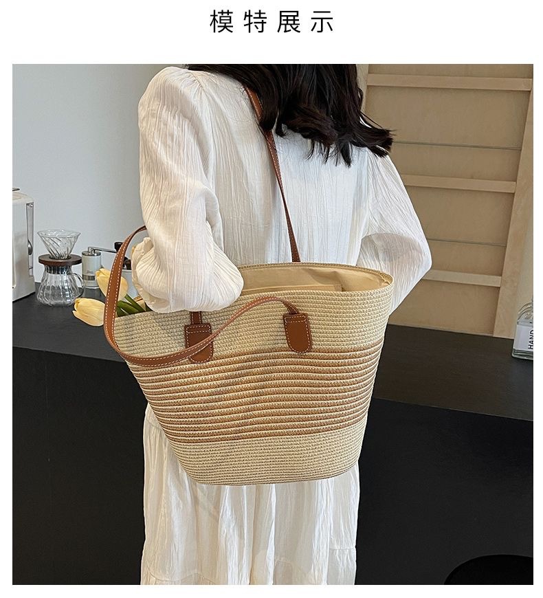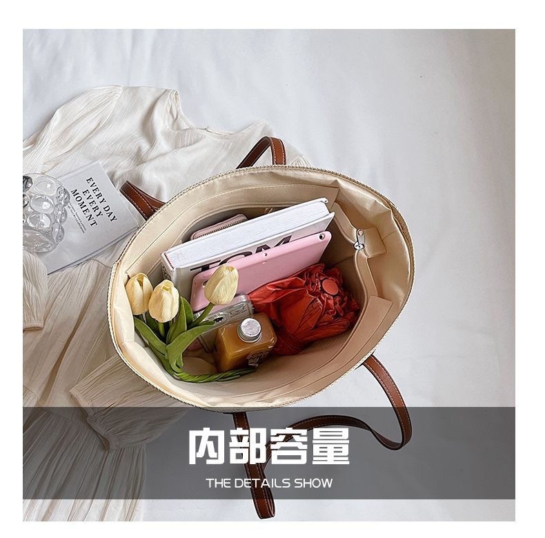 新款大容量編織包包女士時尚洋氣單肩包高級感草編女包時尚托特包