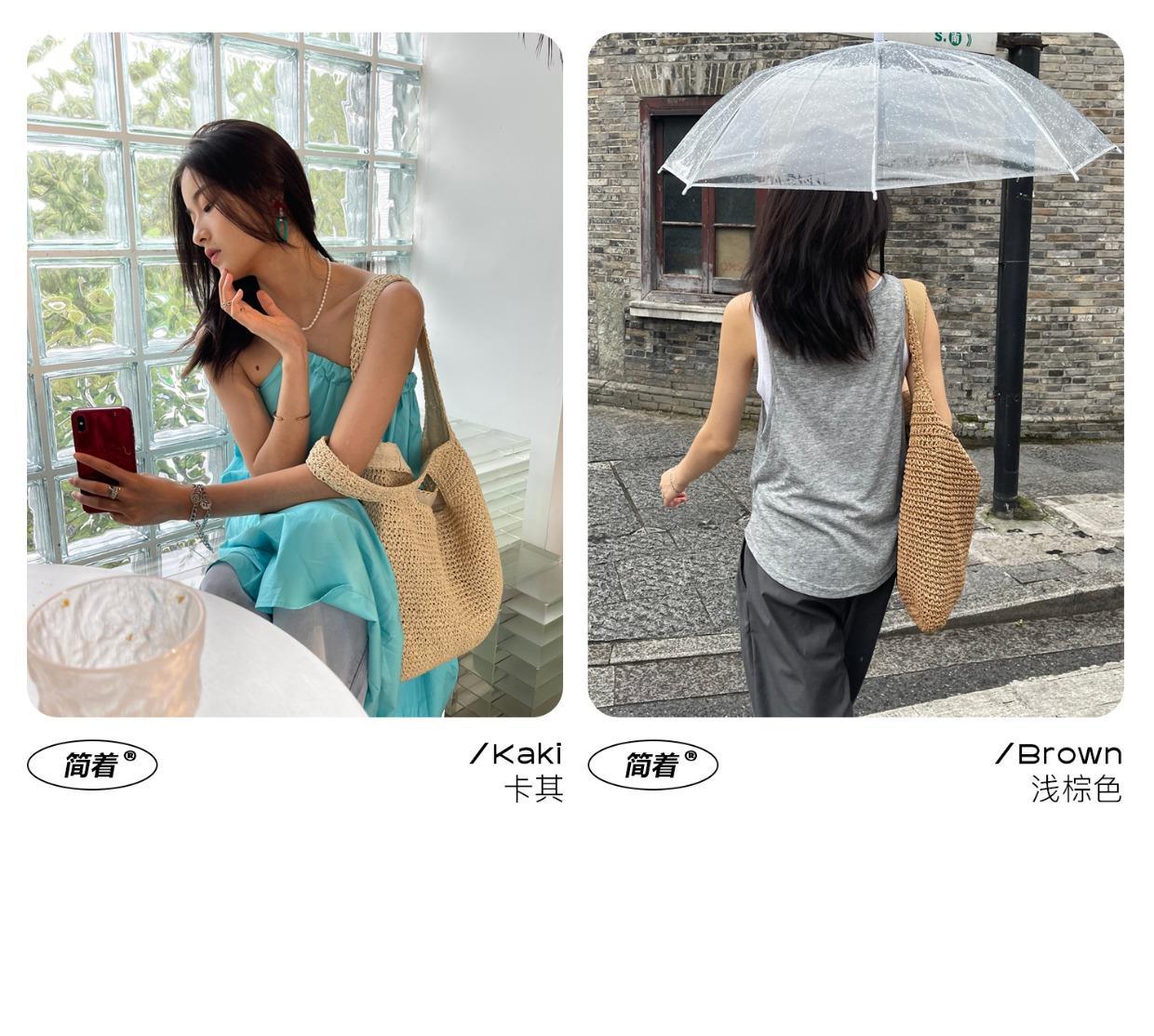 夏日度假風拉菲草編包大容量百搭休閒旅遊沙灘包單肩鏤空編織包女