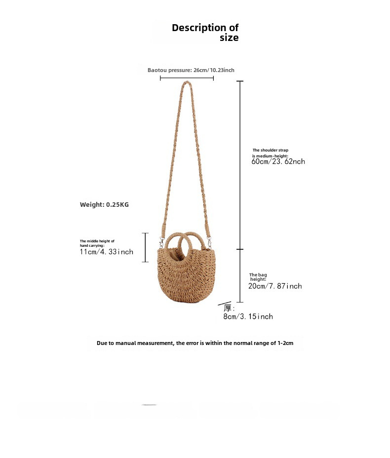 - Handcrafted Design:This bag features a handcrafted design, making each piece unique and reflective of the maker's skill and artistry.
