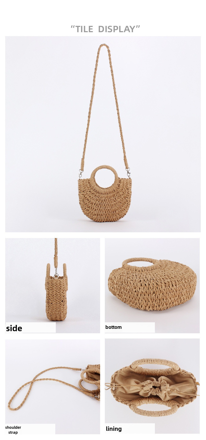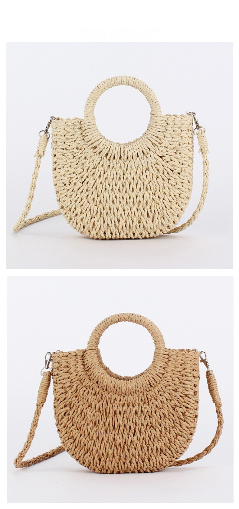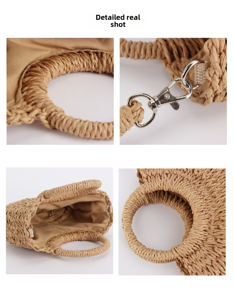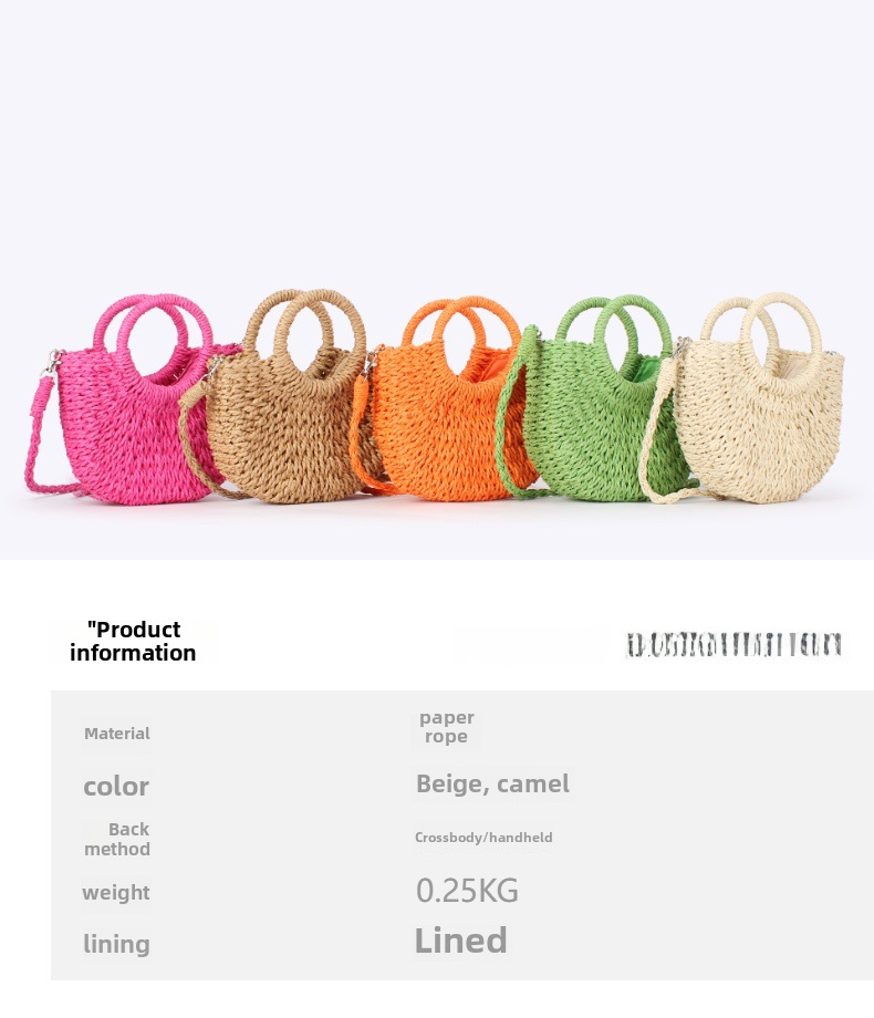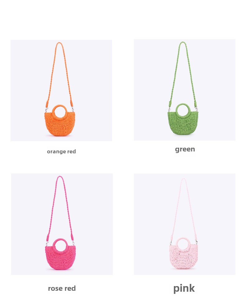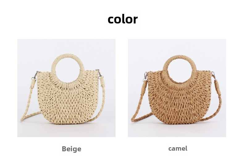 簡約ins人氣款半圓草編包沙灘手工編織包度假旅遊手拎斜背兩用包