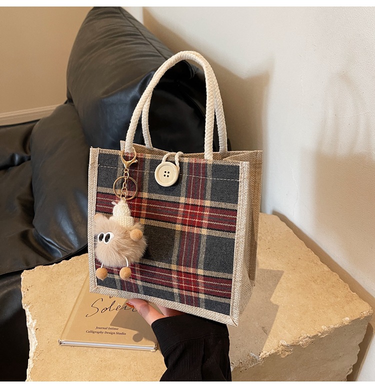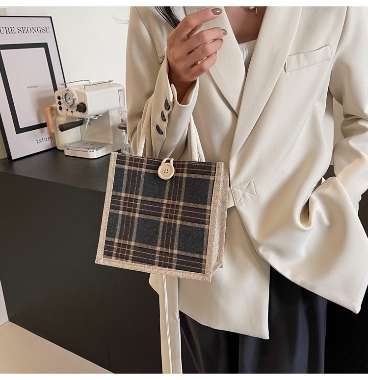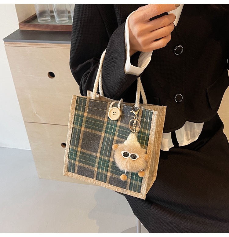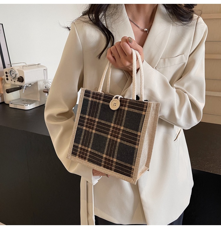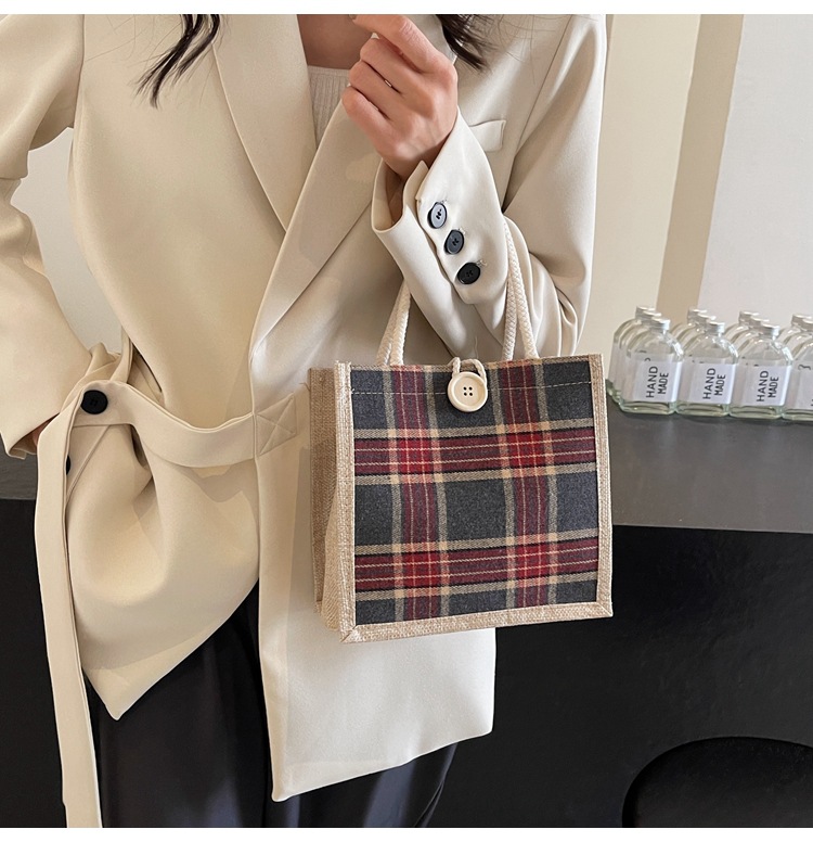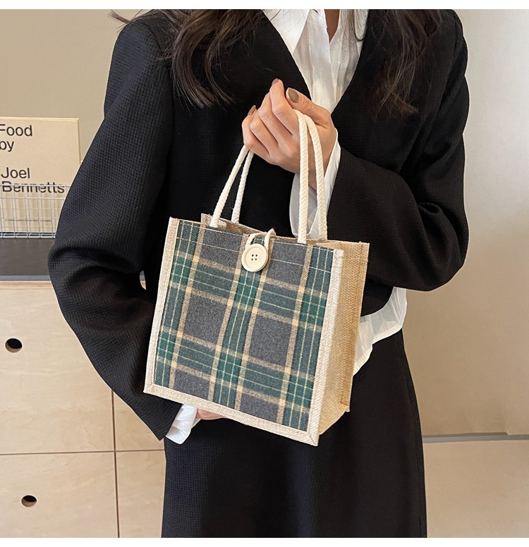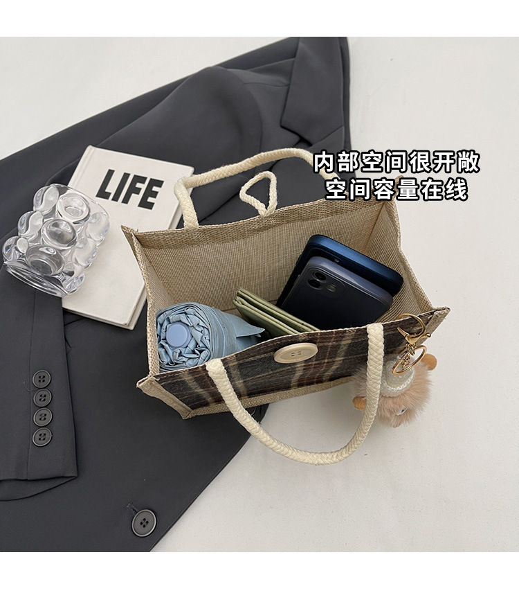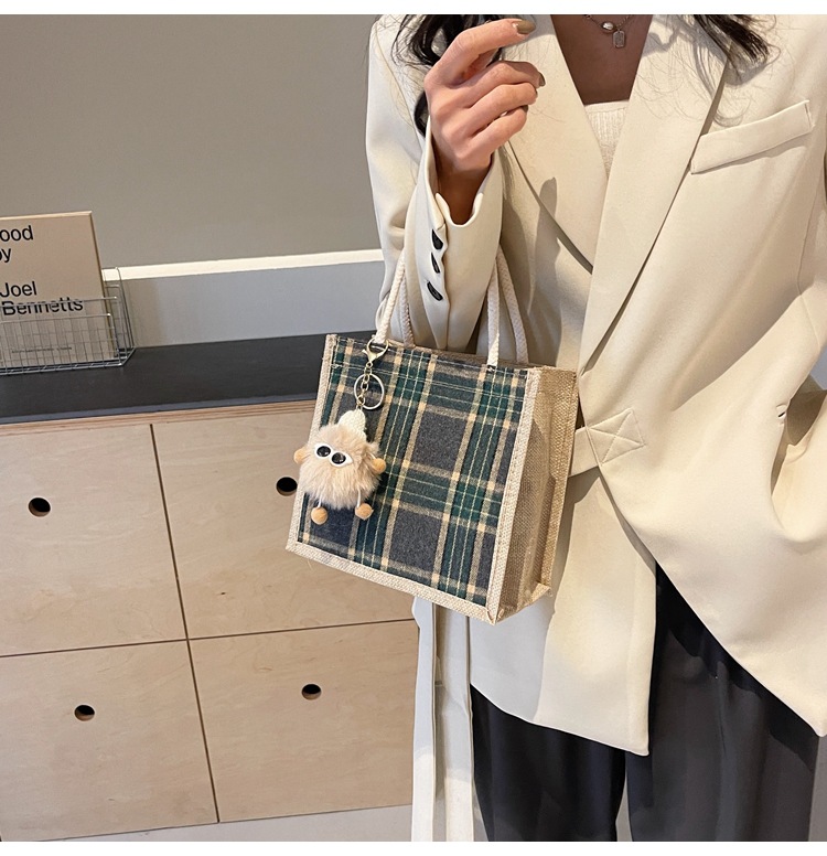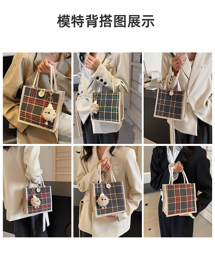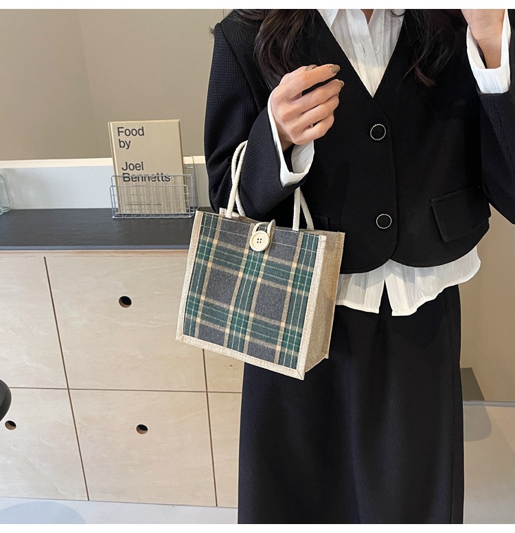 上班可攜式包包女2024時尚亞麻帆布包女ins洋氣百搭單肩手提袋子