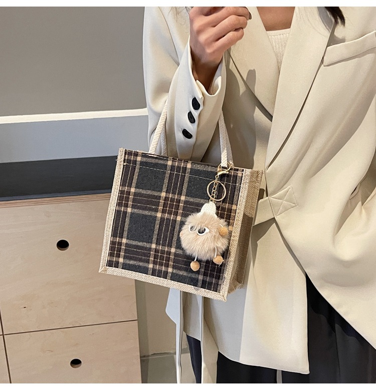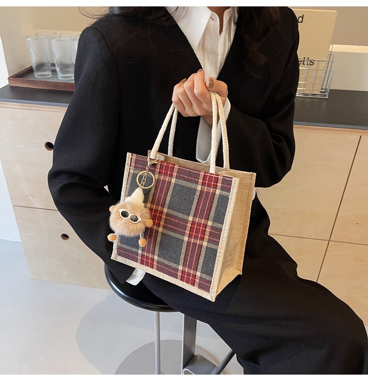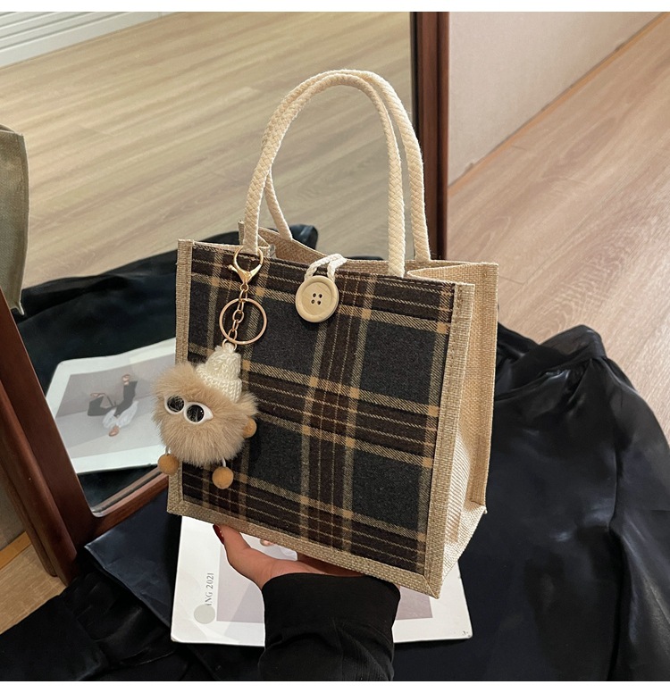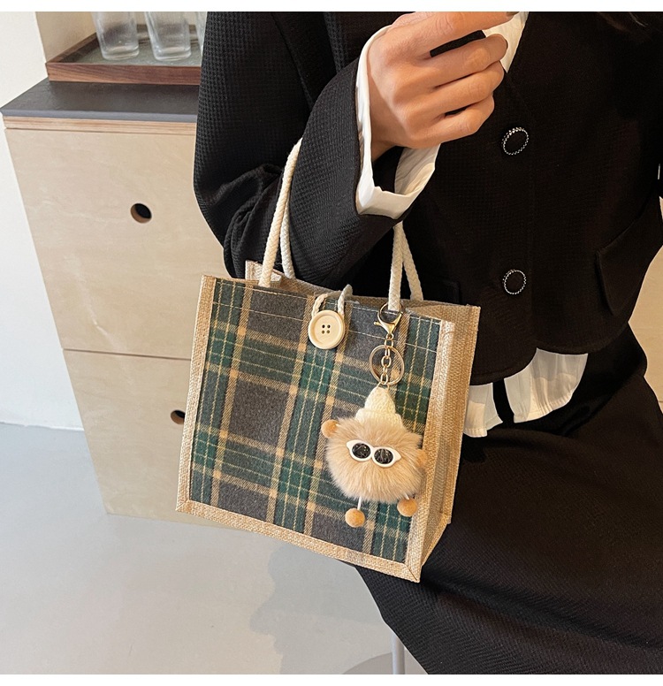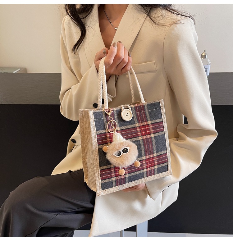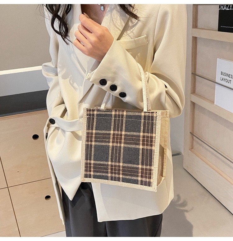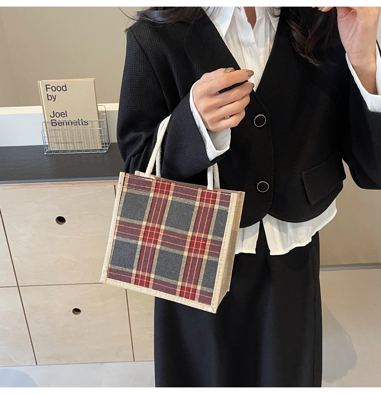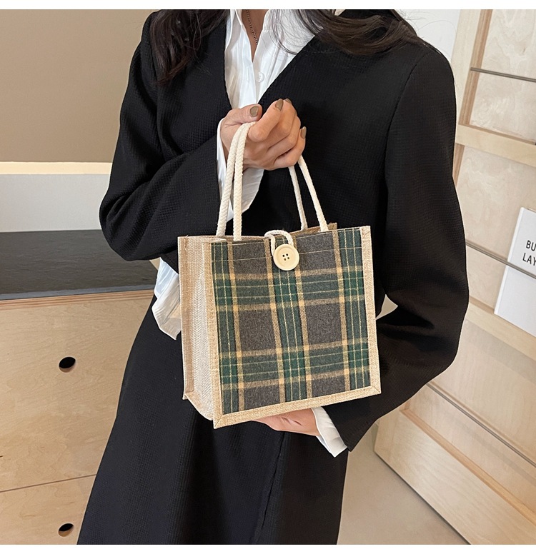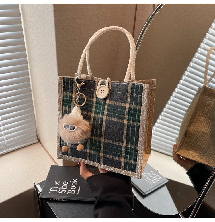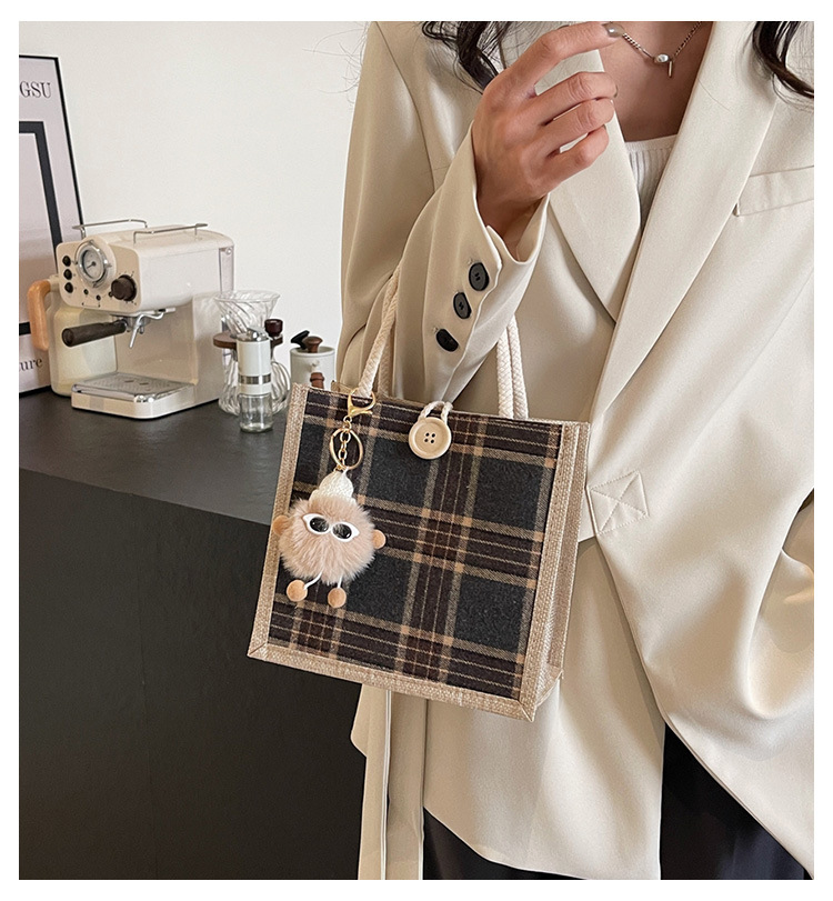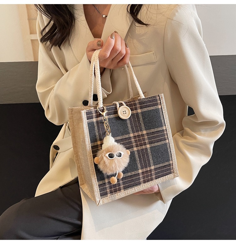 上班可攜式包包女2024時尚亞麻帆布包女ins洋氣百搭單肩手提袋子