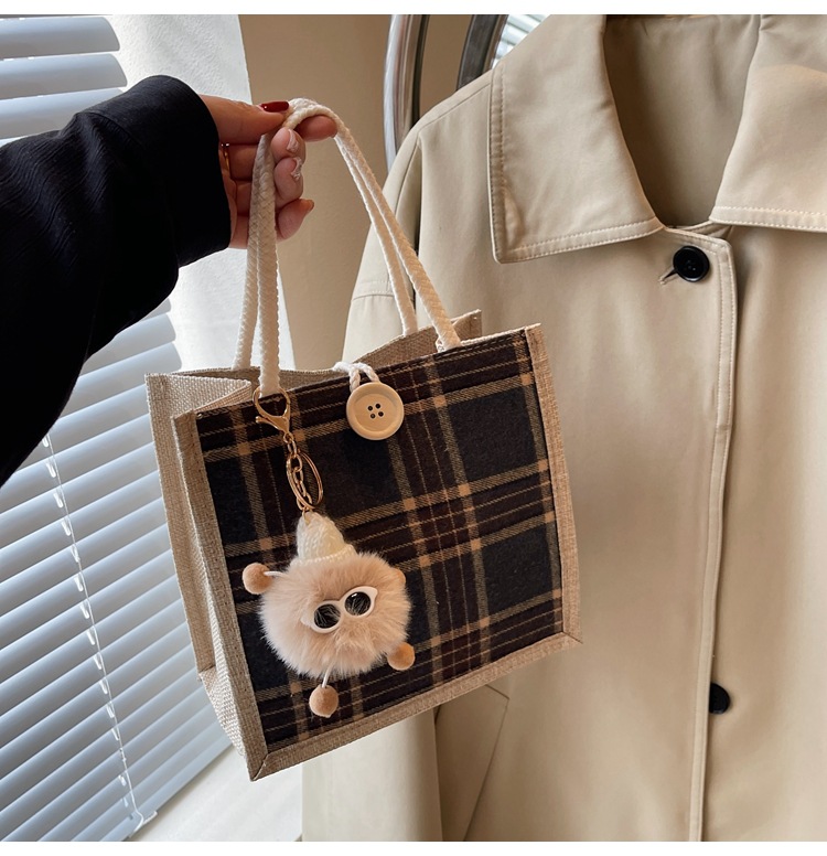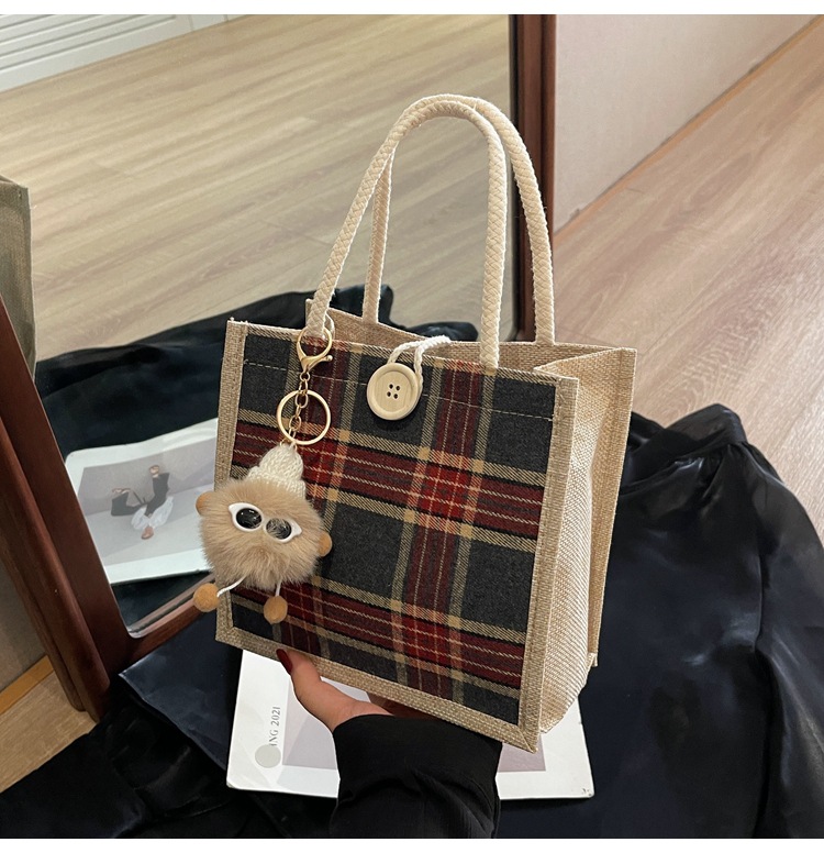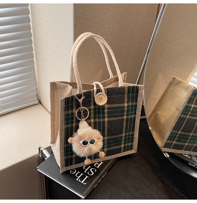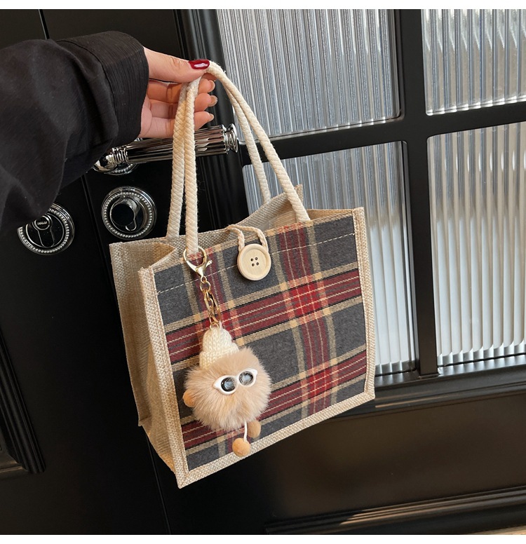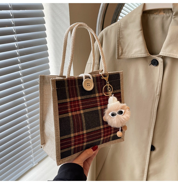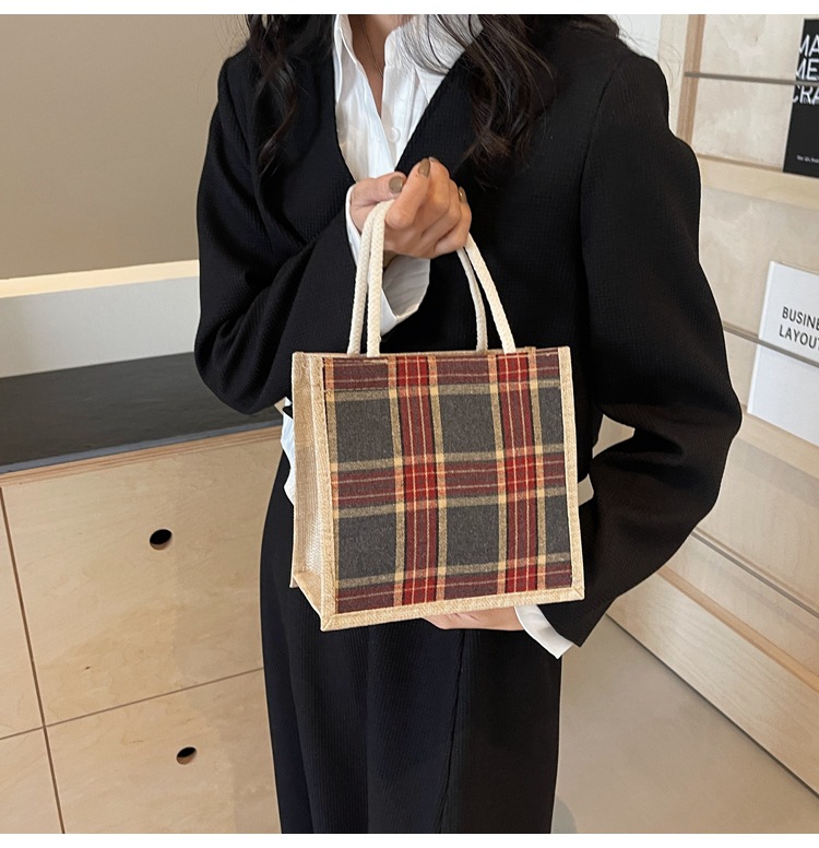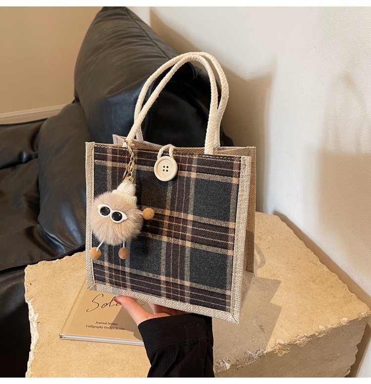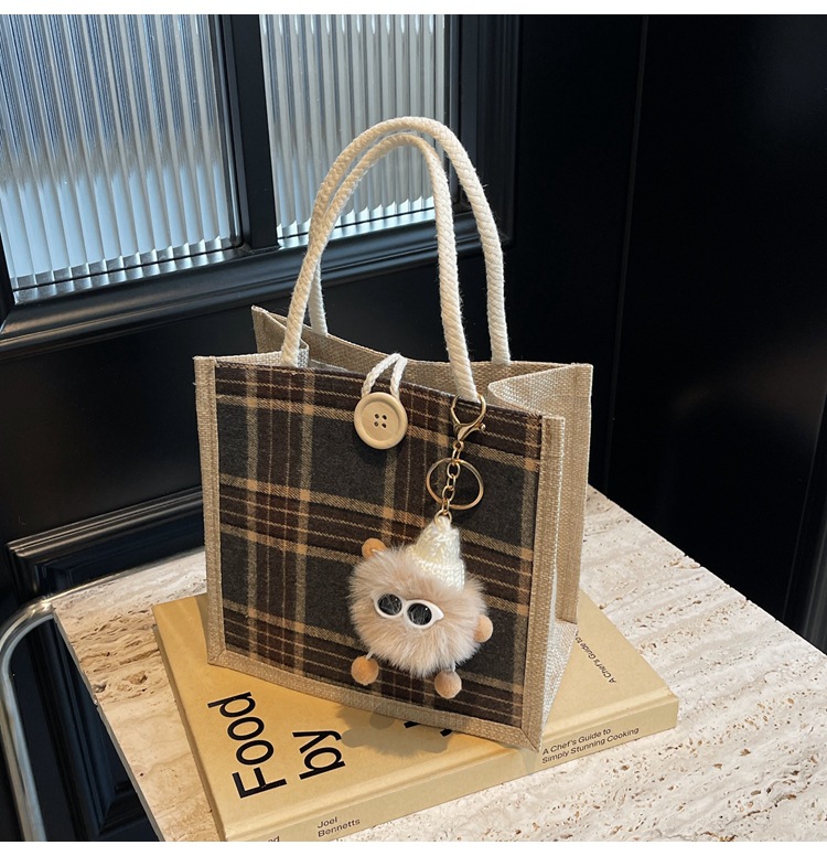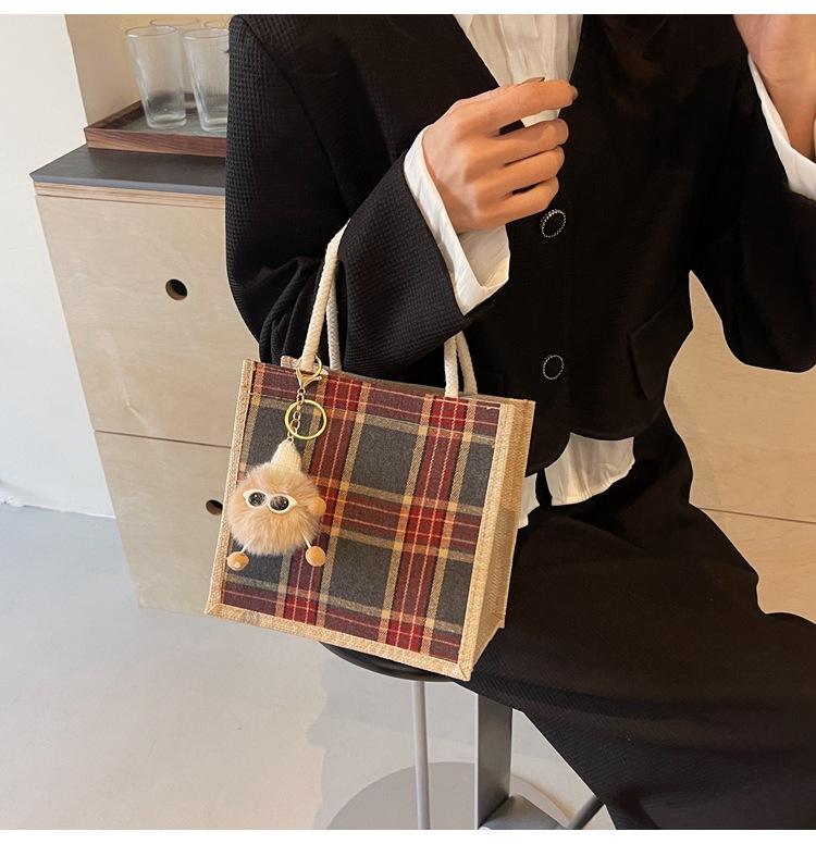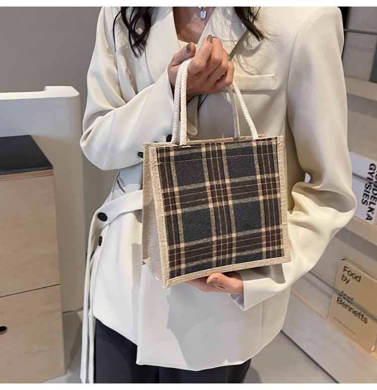 上班可攜式包包女2024時尚亞麻帆布包女ins洋氣百搭單肩手提袋子