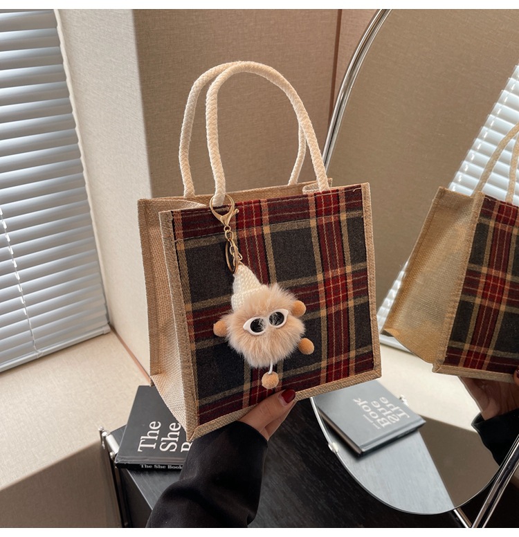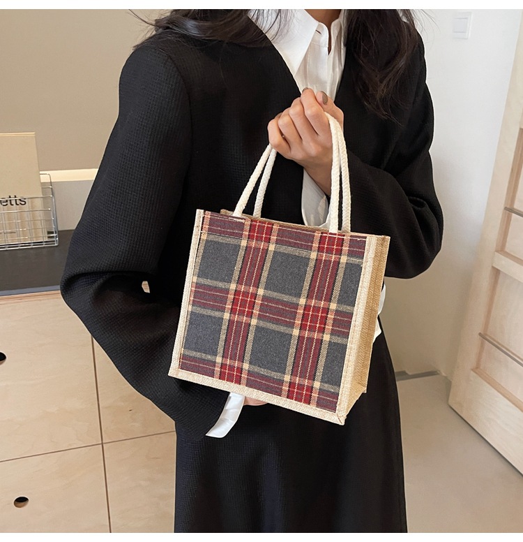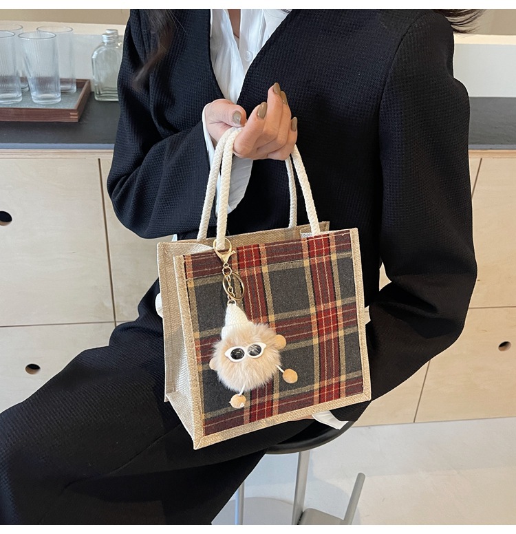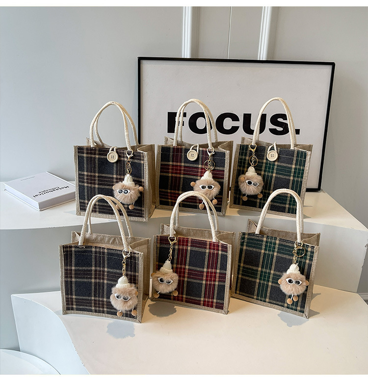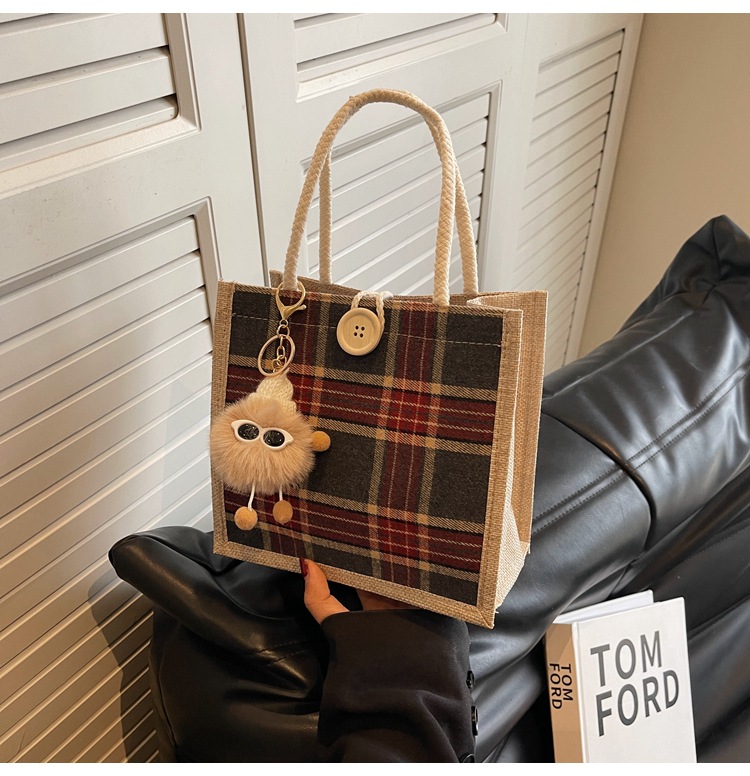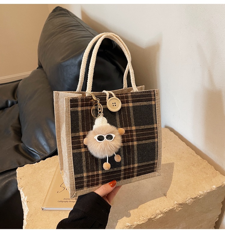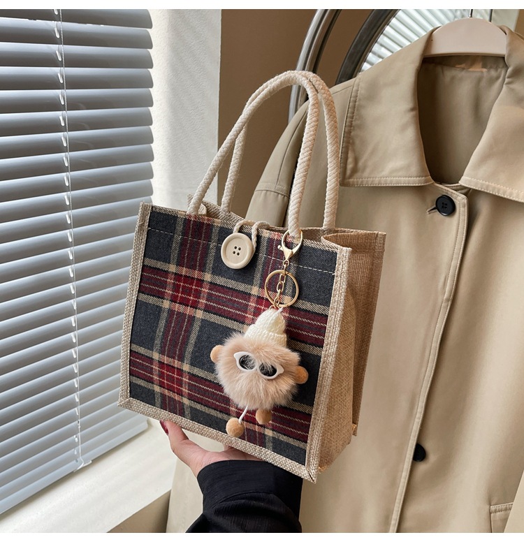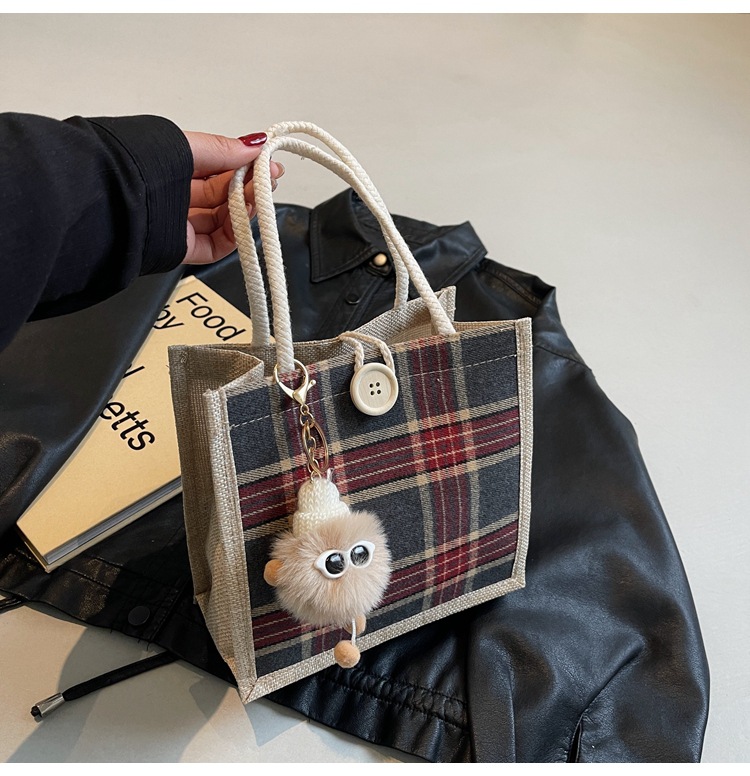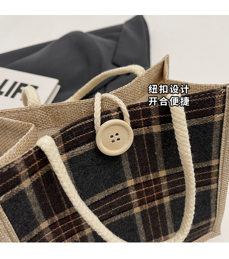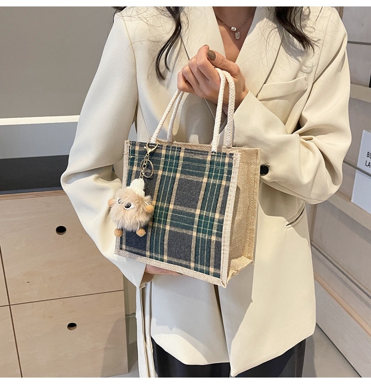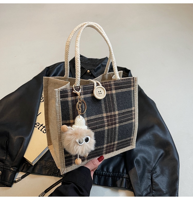 上班可攜式包包女2024時尚亞麻帆布包女ins洋氣百搭單肩手提袋子