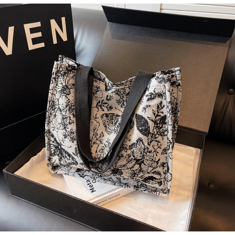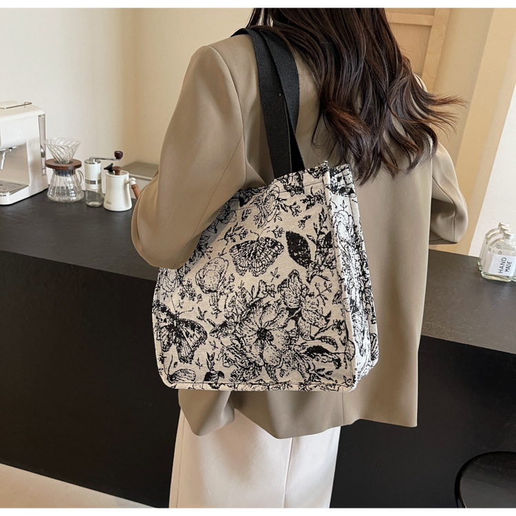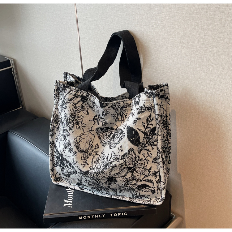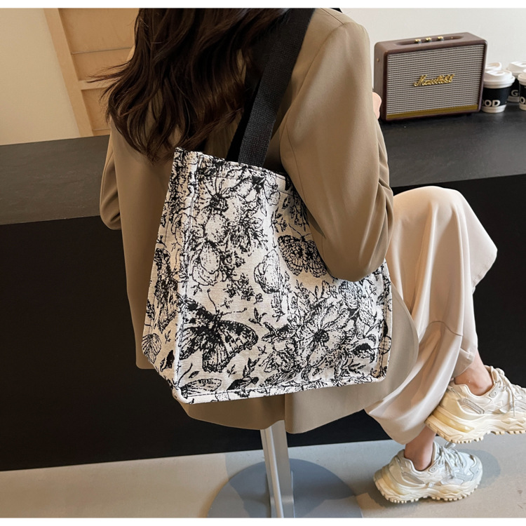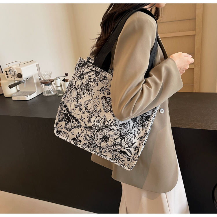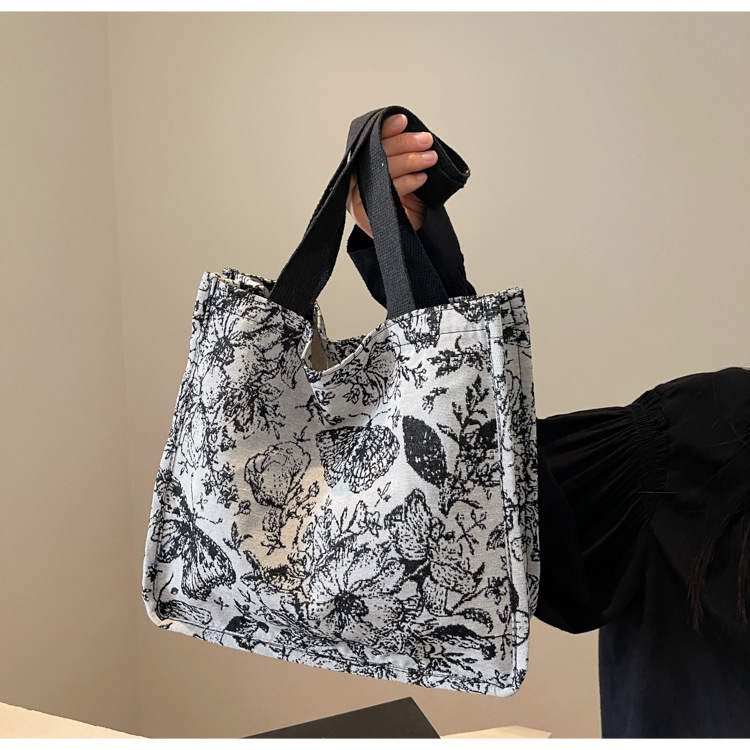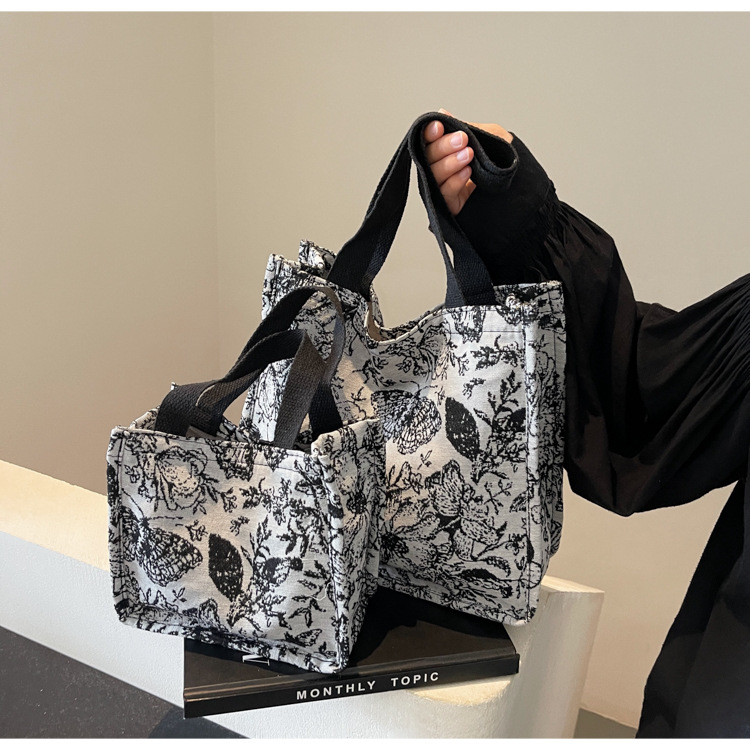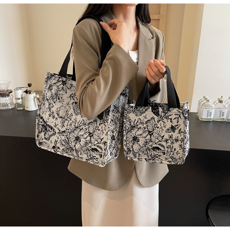 大容量單肩手提包女2024新款帆布包女ins百搭購物通勤托特包女包