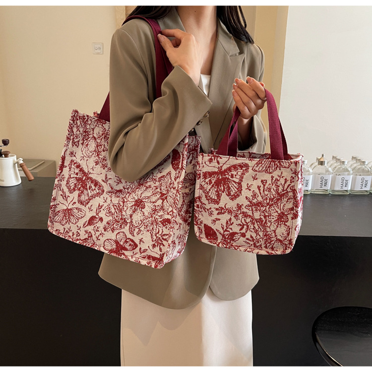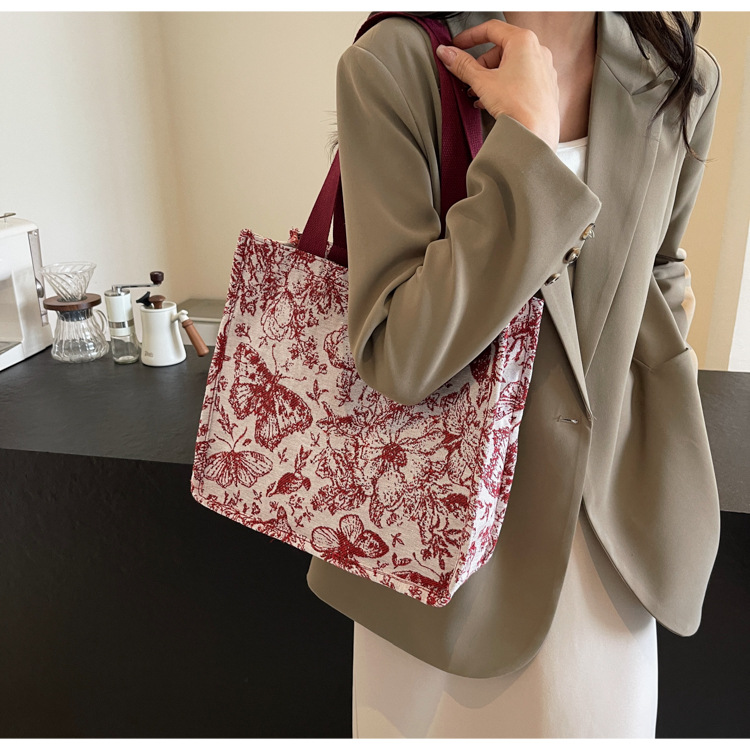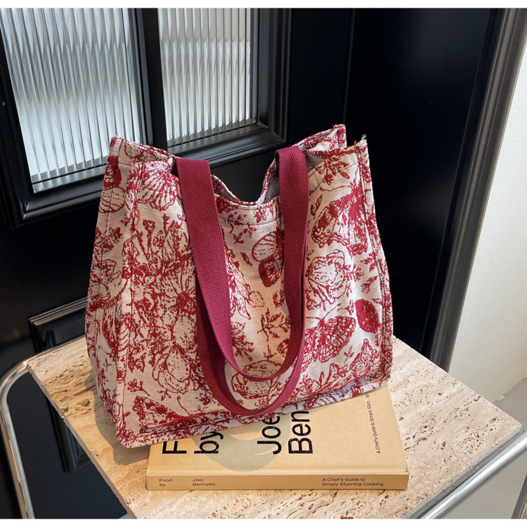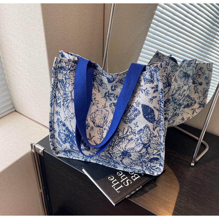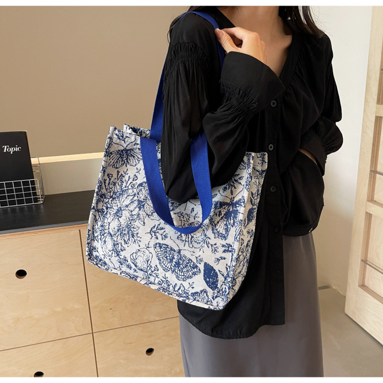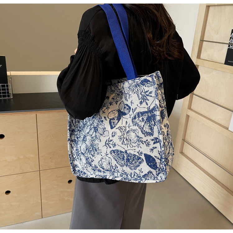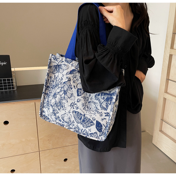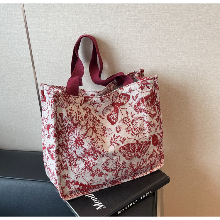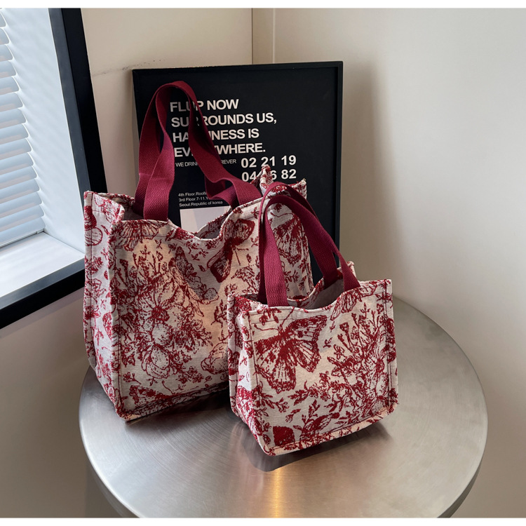 大容量單肩手提包女2024新款帆布包女ins百搭購物通勤托特包女包